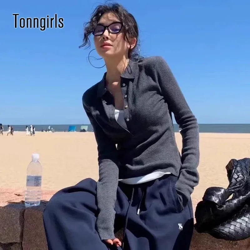 GETADME Tonngirls 한국 스타일 니트 티셔츠 여성 긴팔 스키니 스트리트웨어 풀오버 가짜 투피스 탑 패션 가을 겨울 탑