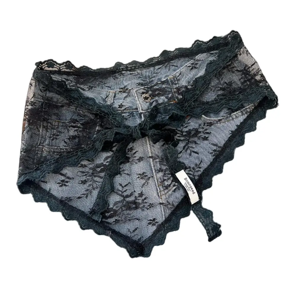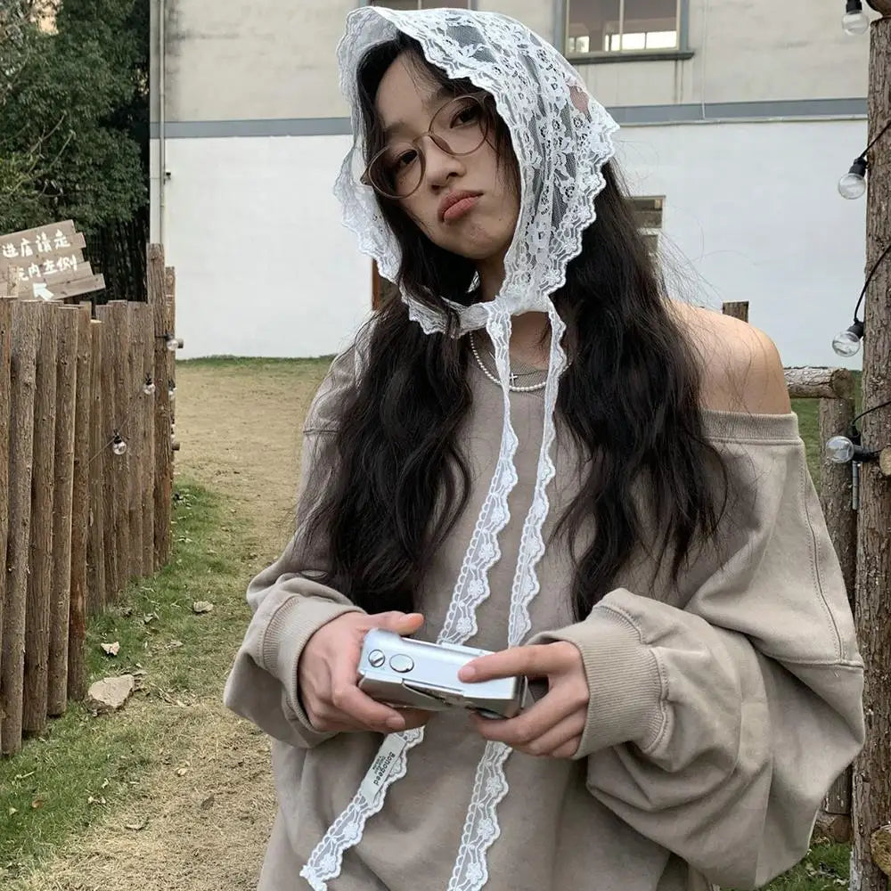 GETADME 트라이앵글 숏 스커트 하프 스커트 엉덩이 커튼 스커트 레이스 트림 스몰 에이프런 소프트 레이스 스택 인 스타일 한국식 봄 헤드스카프