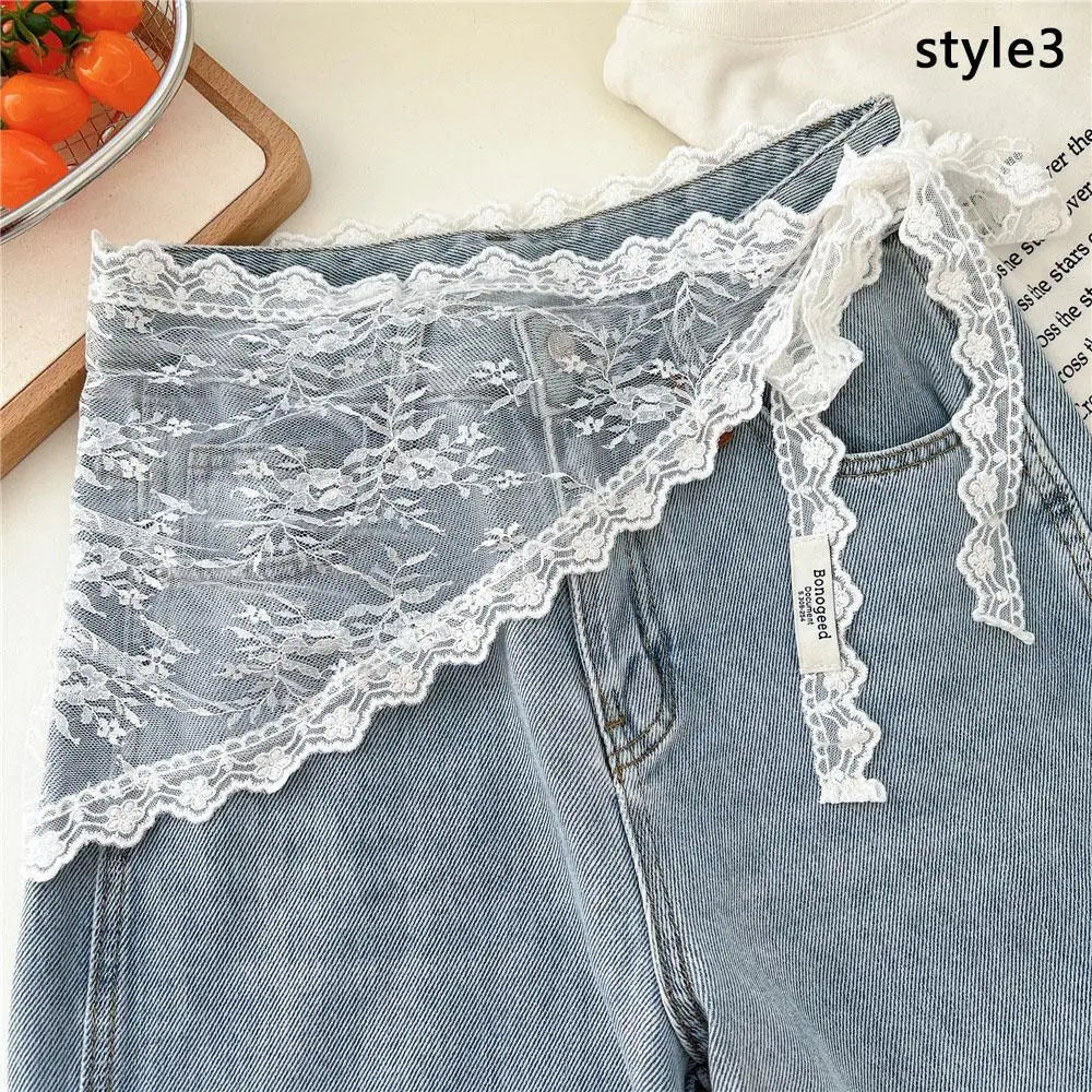하프 스커트 작은 앞치마 엉덩이 커튼 스커트 A 라인 짧은 치마 레이스 트림 초봄 한국 스타일 패션 스택 소프트 레이스