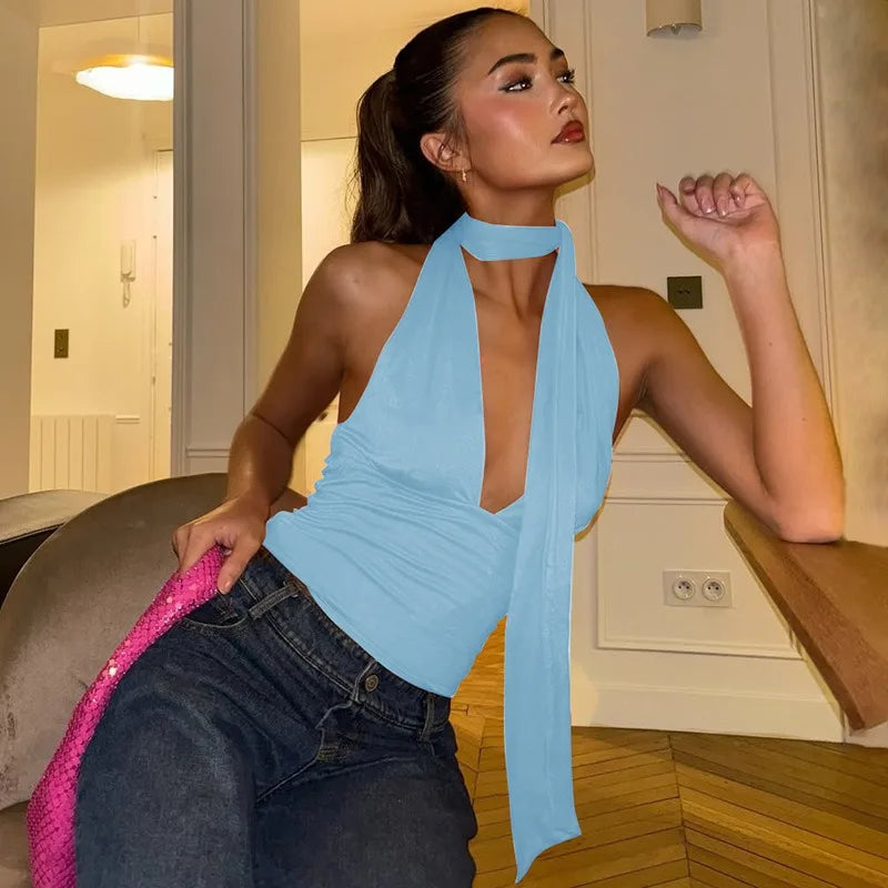 GETADME Tuularose 여성용 섹시 탱크탑 여름용 민소매 붕대 홀로우 넥 탑 새로운 V넥 하이웨이스트 파티 클럽 티셔츠 탑