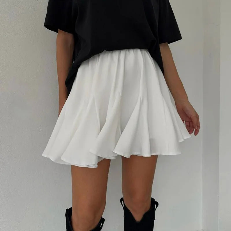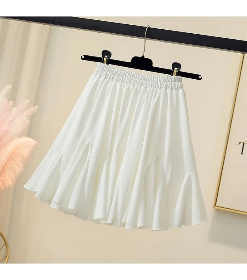 GETADME 여성용 화이트 러플 플리츠 미니 스커트 여름 우아한 여성용 푹신한 하이웨이스트 A라인 스커트 패션 스트리트 숏 스커트