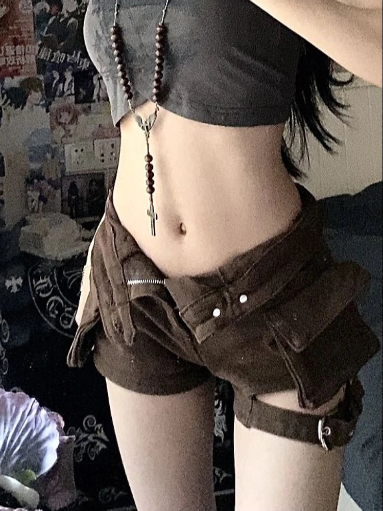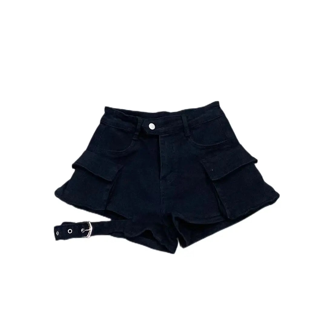 GETADME 여성 다크 아카데미아 고스 하라주쿠 패션 갸루 케이팝 진 반바지 데님 그런지 핫 팬츠 2000년대 미학 그런지 타이드 고블린 코어