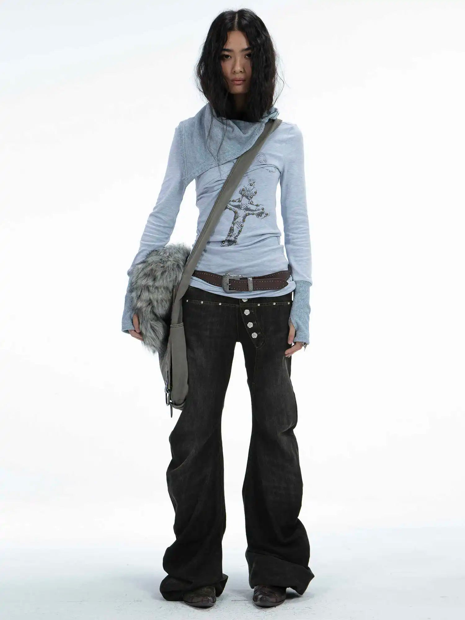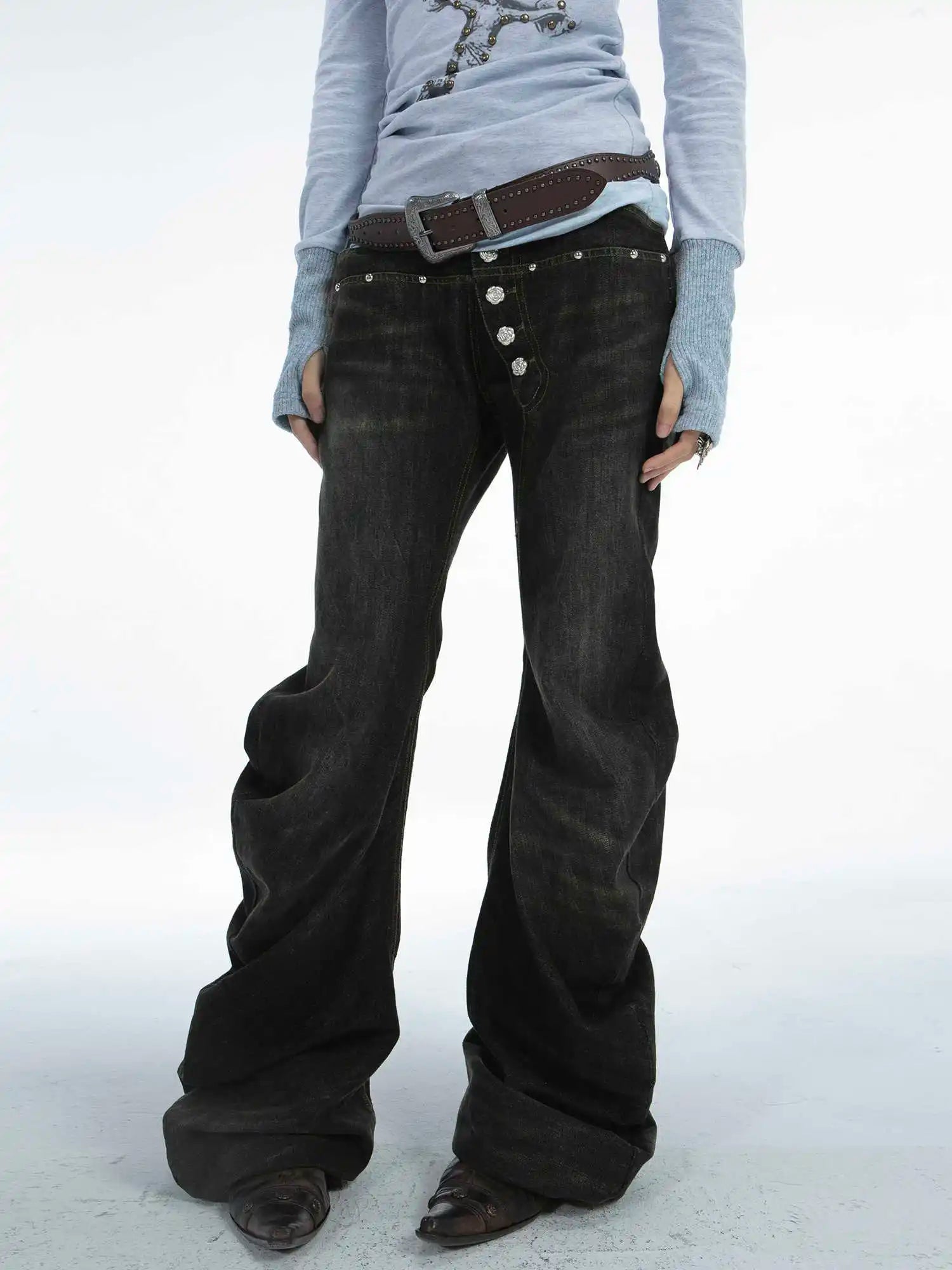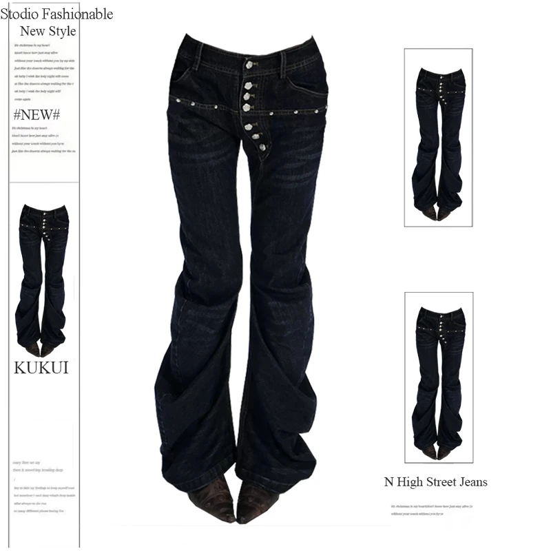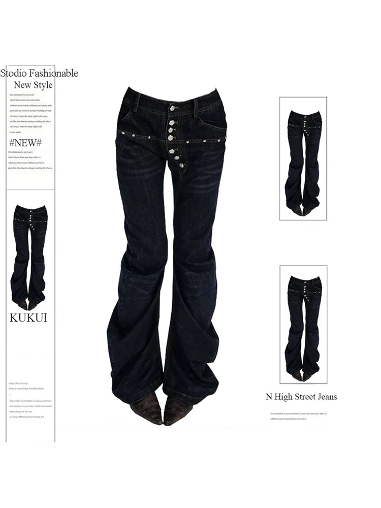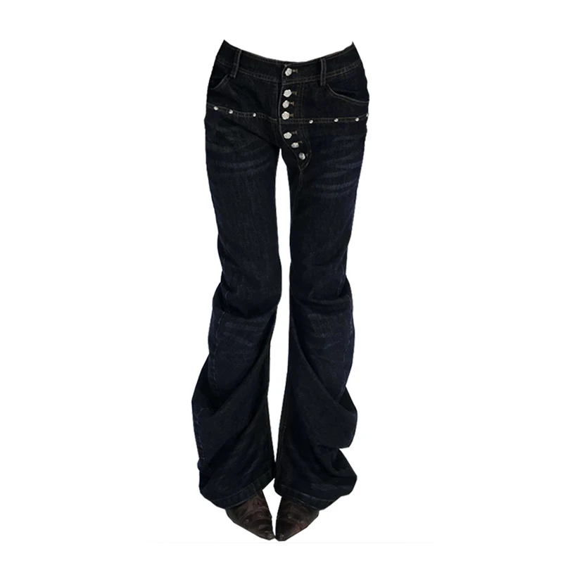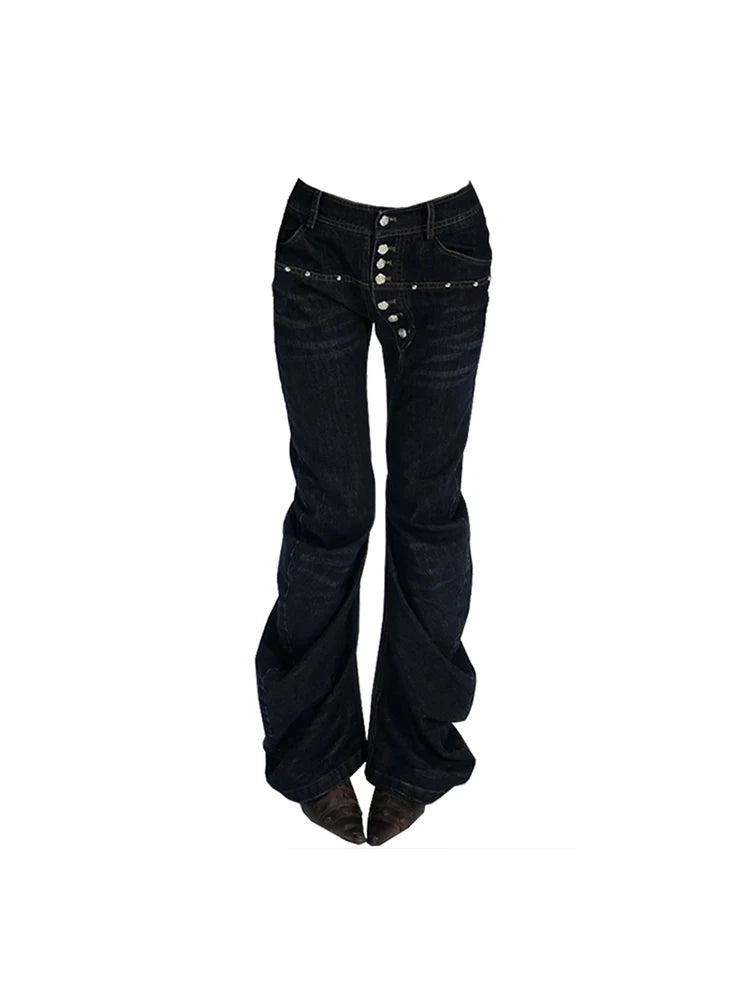 GETADME 여성 디자인 다크 아카데미아 하라주쿠 Y2K 로우라이즈 플레어 진 Y2K 일본 아비 데님 팬츠 2000년대 벨보텀 사이버펑크 그런지