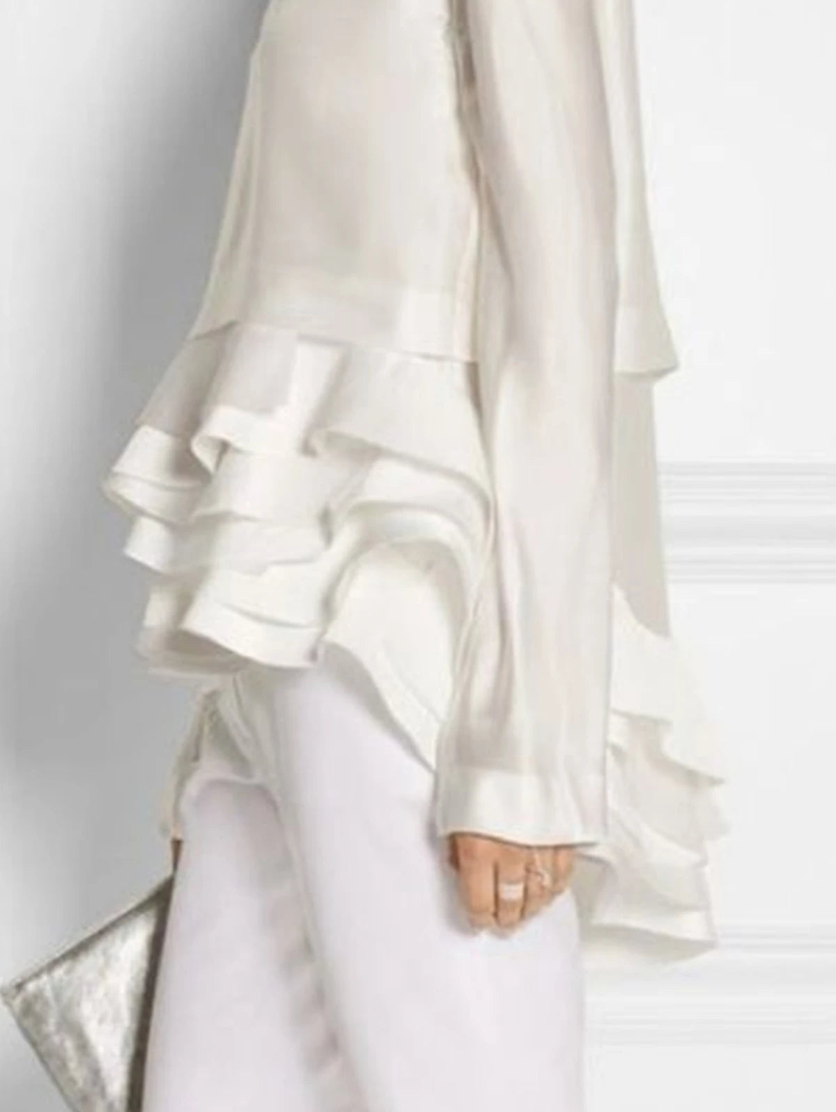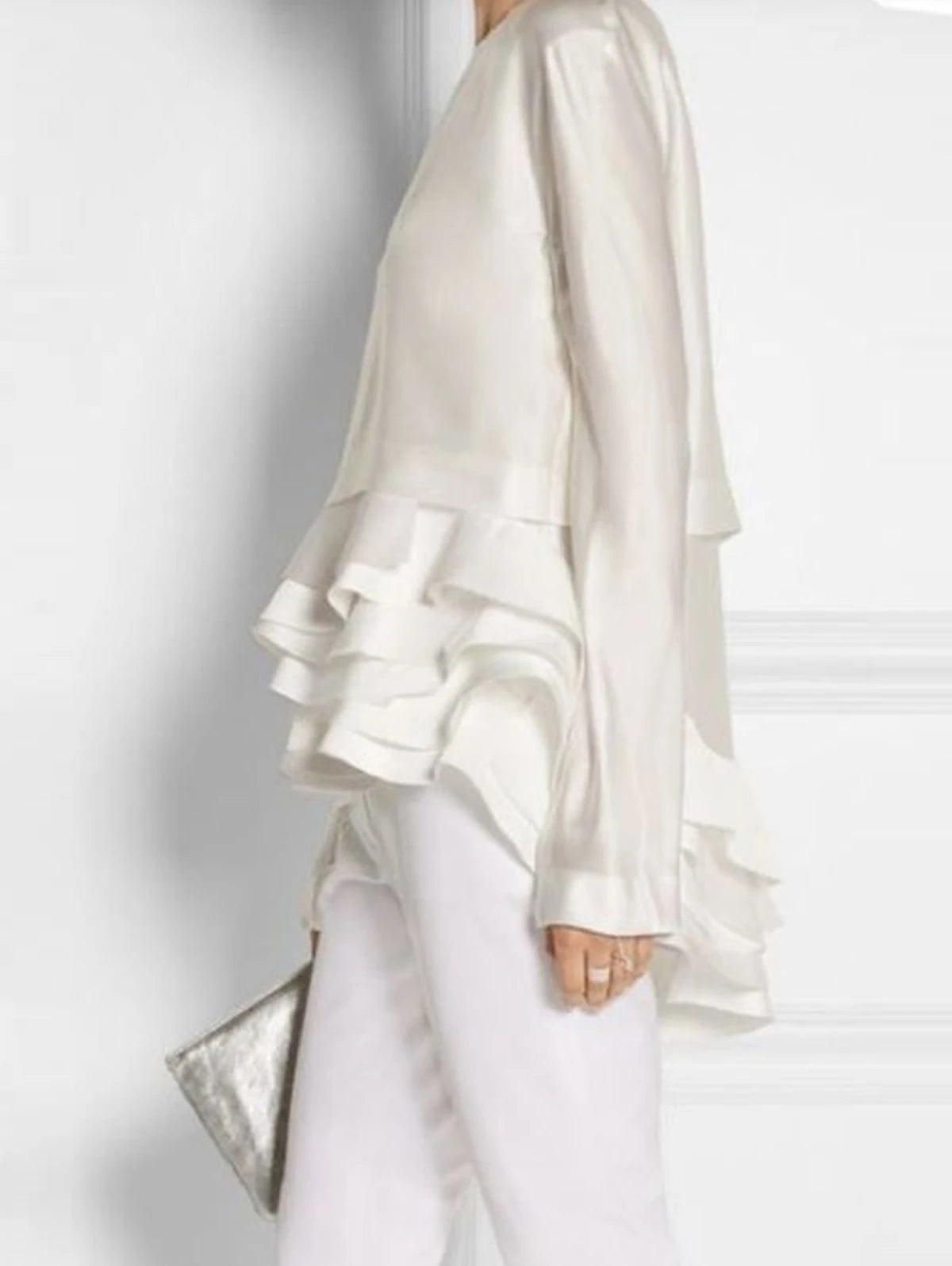 GETADME 여성 플러스 사이즈 셔츠 러플 우아한 솔리드 플레어 슬리브 러플 레이어드 밑단 셔츠 오피스 레이디 가을 라운드넥 블라우스 여성용