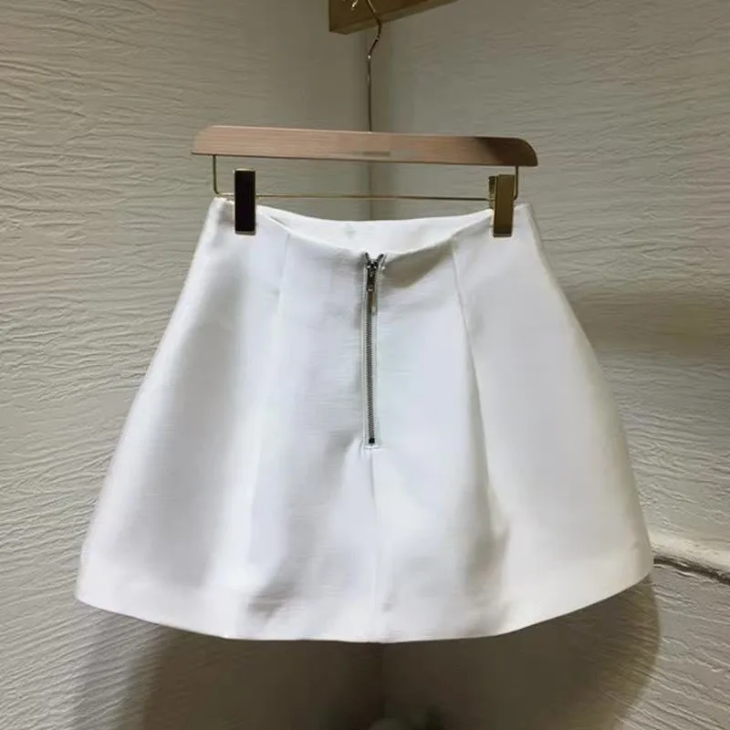 GETADME Xpqbb 한국 스타일 여성용 화이트 미니 스커트 스트리트웨어 하이 위스트 퍼피 숏 스커트 여성용 올매치 심플 A라인 Y2K 스커트