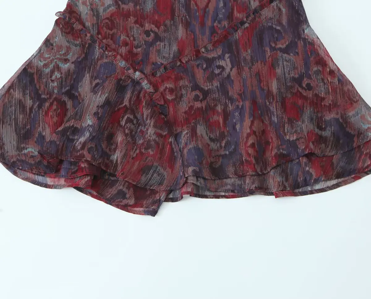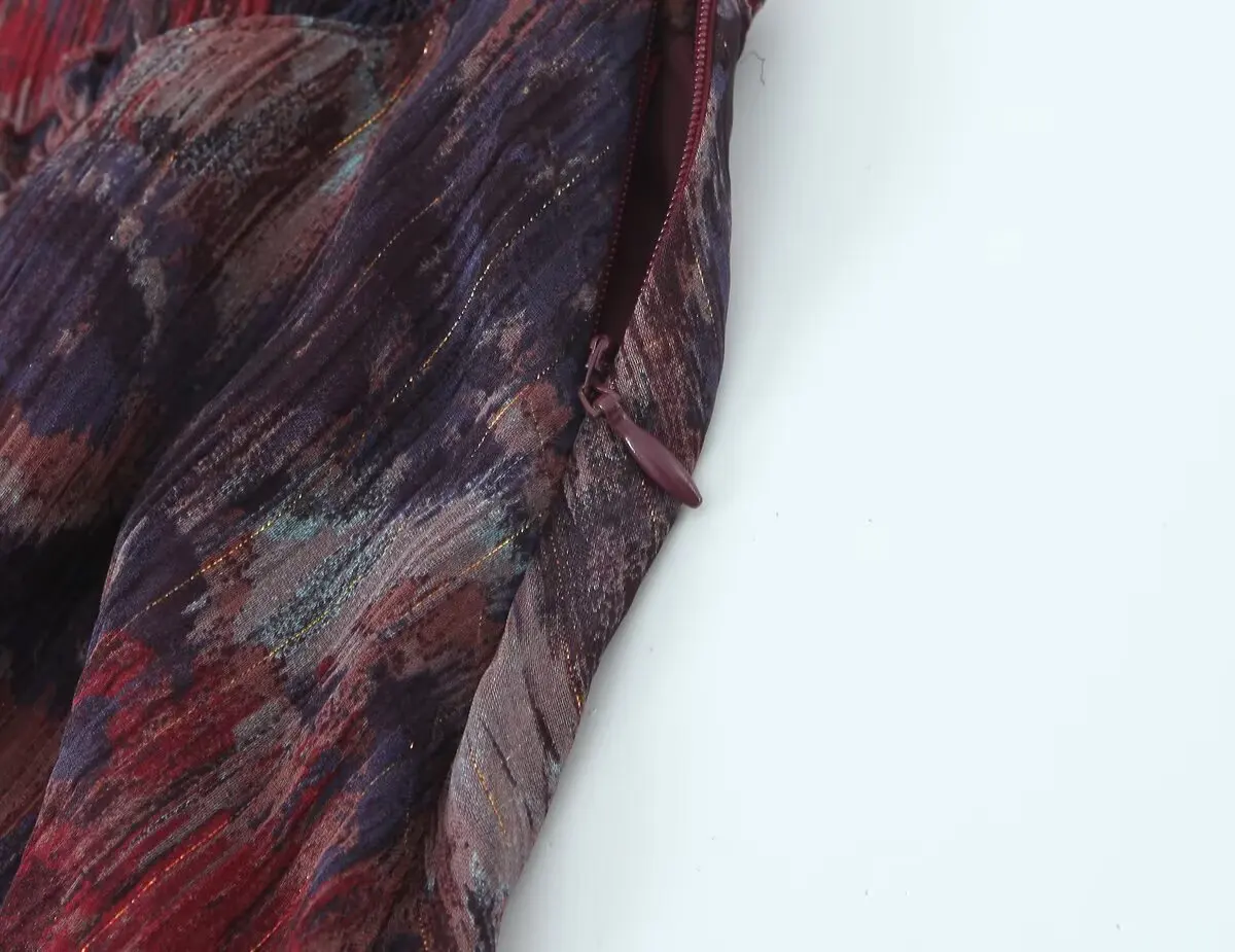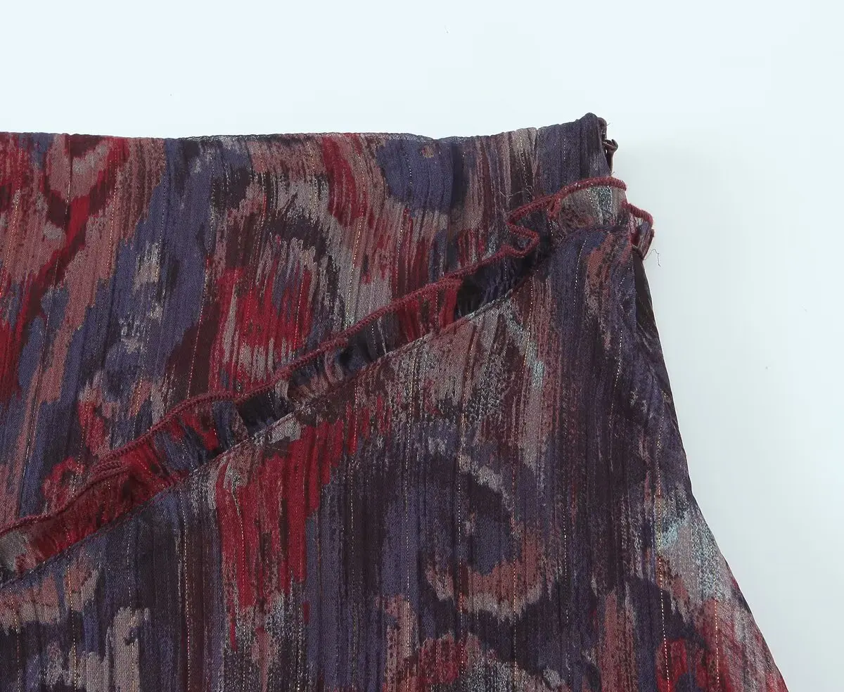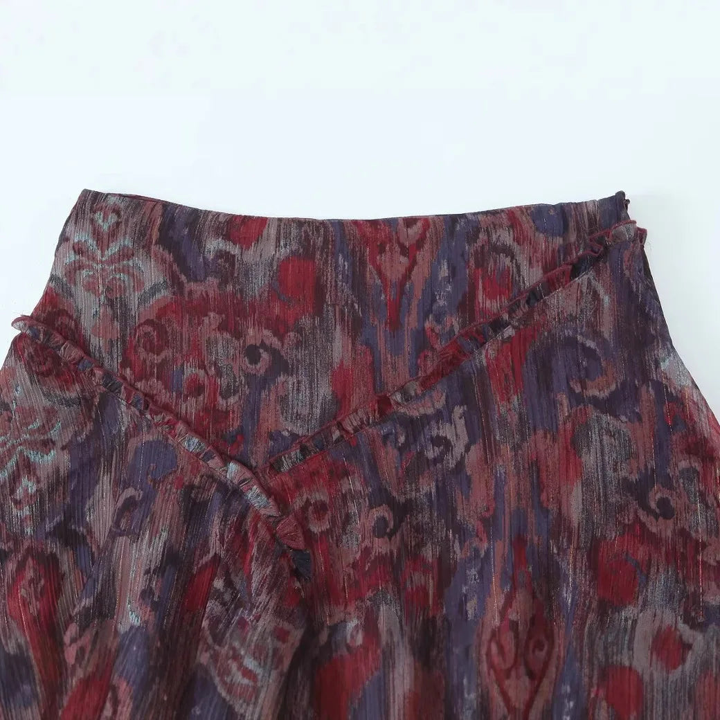 GETADME ZBZA 여성용 메탈릭 라인 미니 스커트 하이웨이스트 러플 A라인 사이드 지퍼 숏 스커트 봄 여름 신상품 캐주얼 시크 스커트