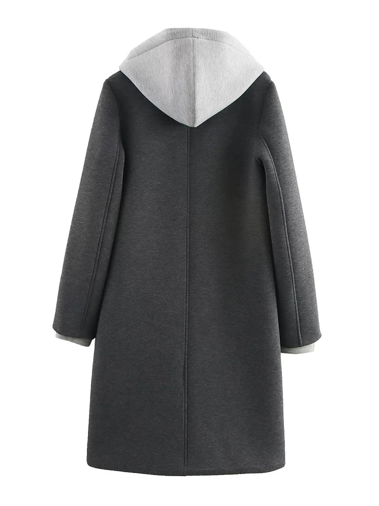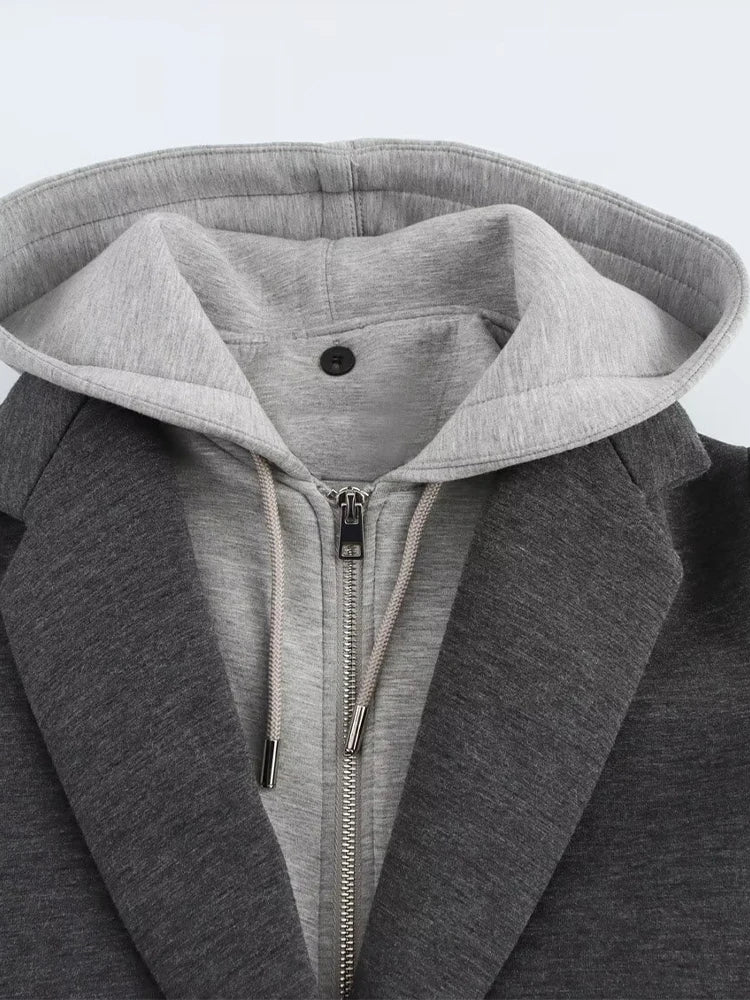GETADME 2025 봄 가을 신상품 탈부착 후드 스플라이싱 템퍼러먼트 캐주얼 긴팔 코트 재킷