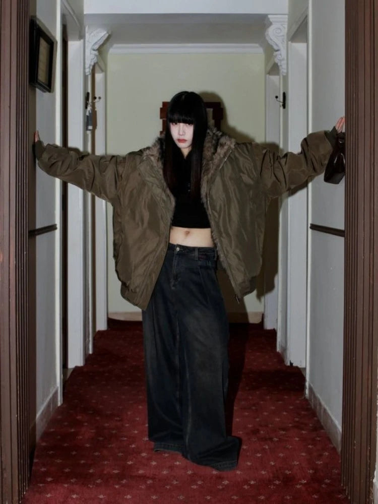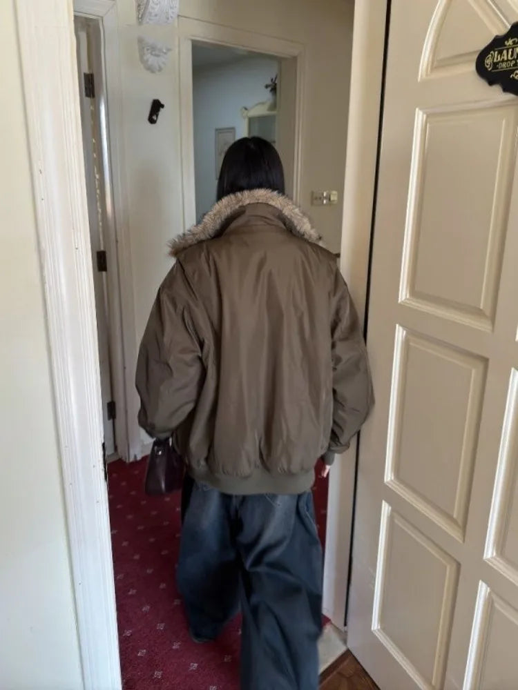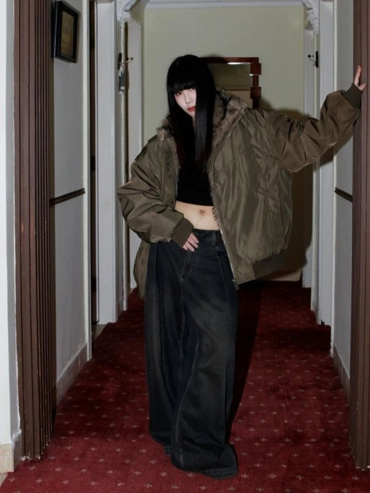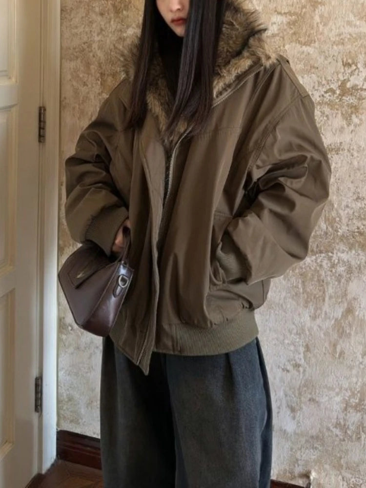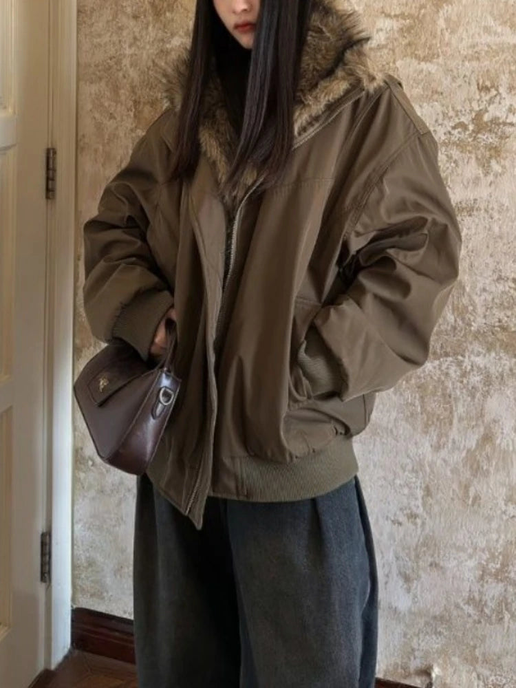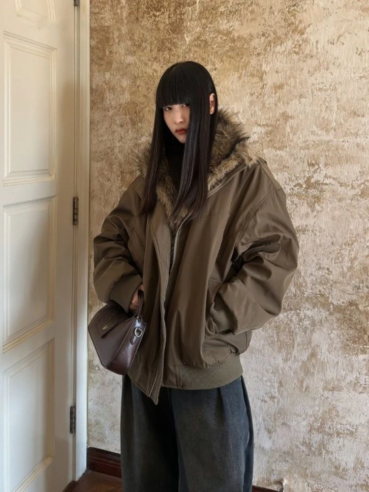 GETADME 겨울 신상품 우아한 퍼 칼라 루즈 코트 여성 Y2K 따뜻한 후드 두꺼운 패션 파카 캐주얼 아우터 코튼 패딩 재킷