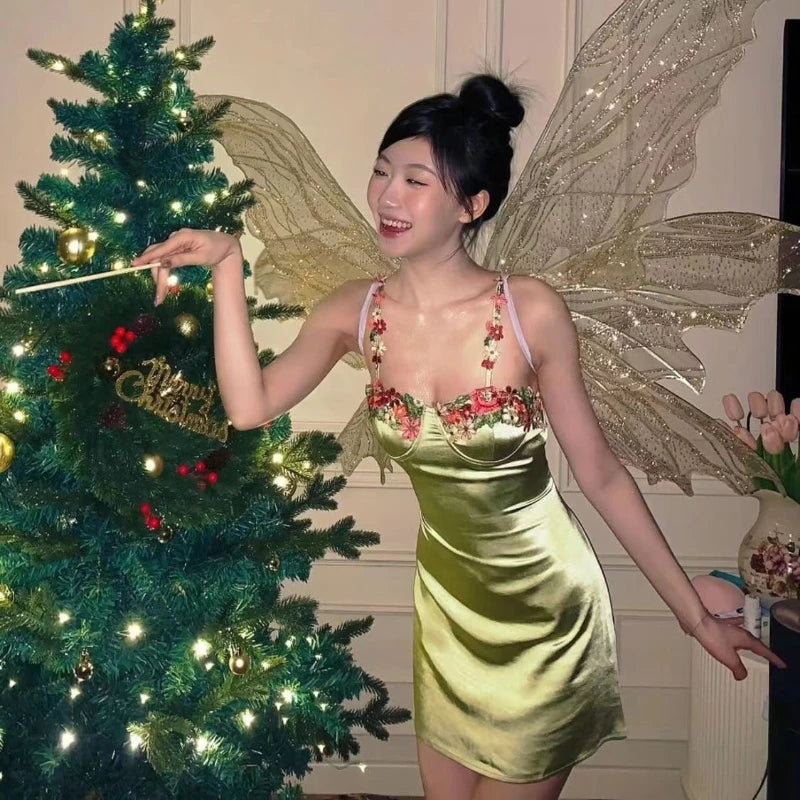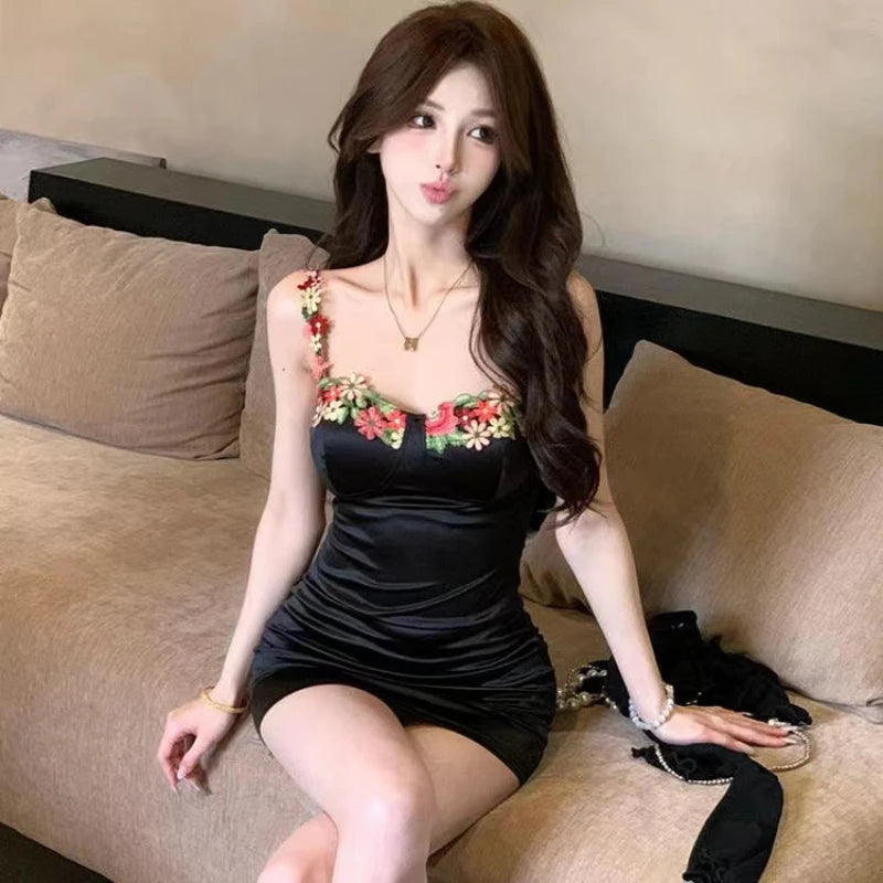 Getadme-봄과 여름 순수한 욕망 프랑스 섹시 핫걸 허리 휴가 서스펜더 드레스 여성 디자인 슬리밍 짧은 롱 스커트
