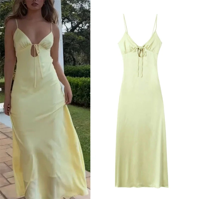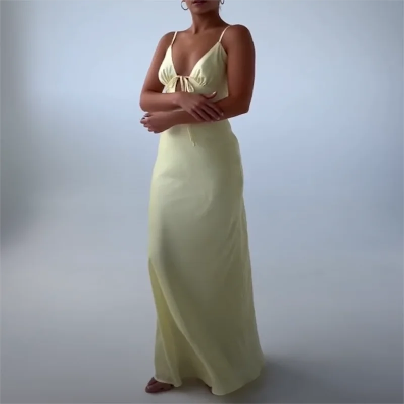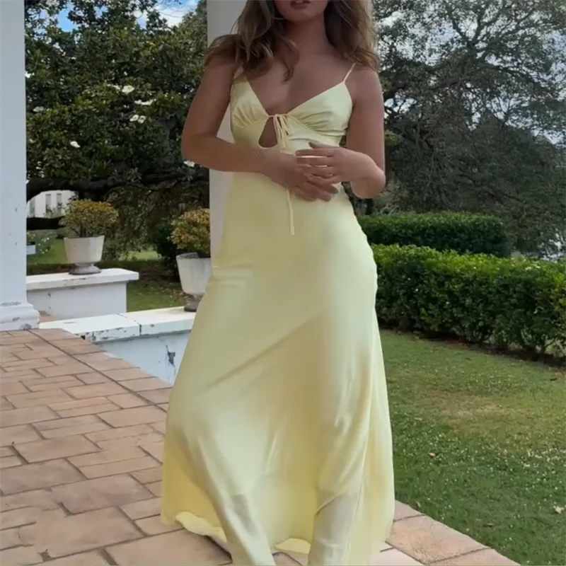Getadme-프랑스 퓨어 러스트 섹시 백리스 실크 새틴 텍스처 서스펜더 드레스 여성 여름 휴가 스타일 롱 드레스
