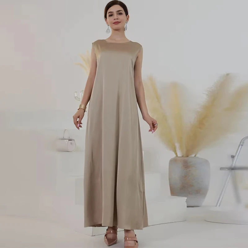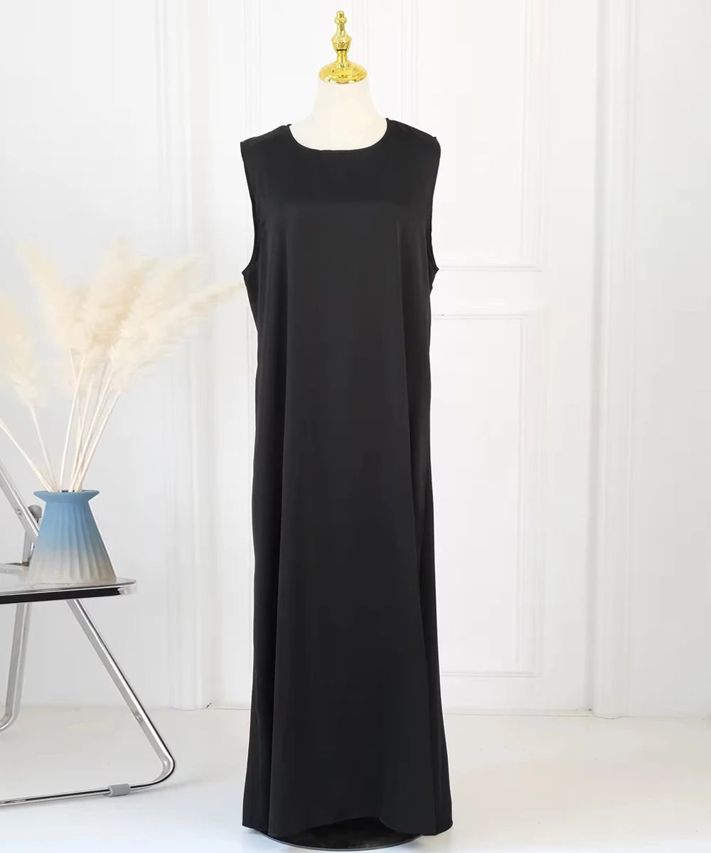 GETADME 베이직 플레인 언더 새틴 아바야 이너 드레스 고품질 화이트 민소매 슬립 드레스 화이트 플레인 이드 라마단 이슬람 의류