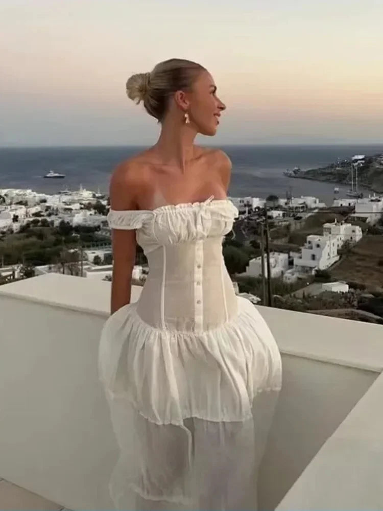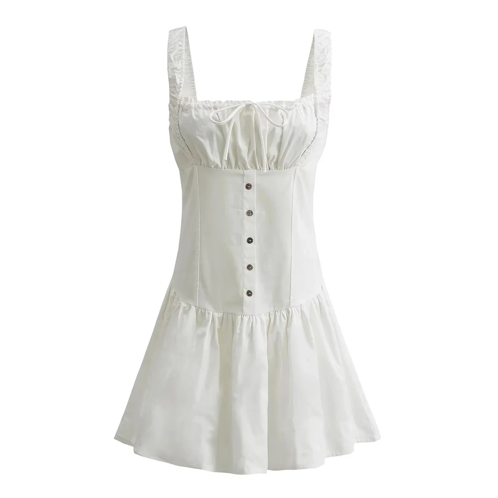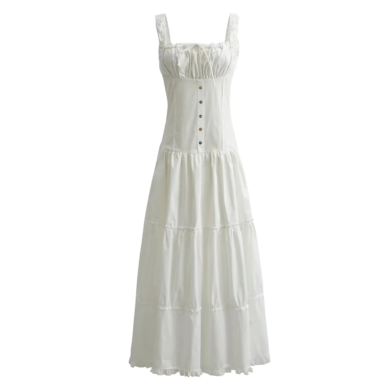 Getadme 리본 화이트 여름 여성 드레스 우아한 탱크 비치 롱 선드레스 베스티도 슬리브리스 홀리데이 시크 블랙 슬림 맥시 드레스 2024