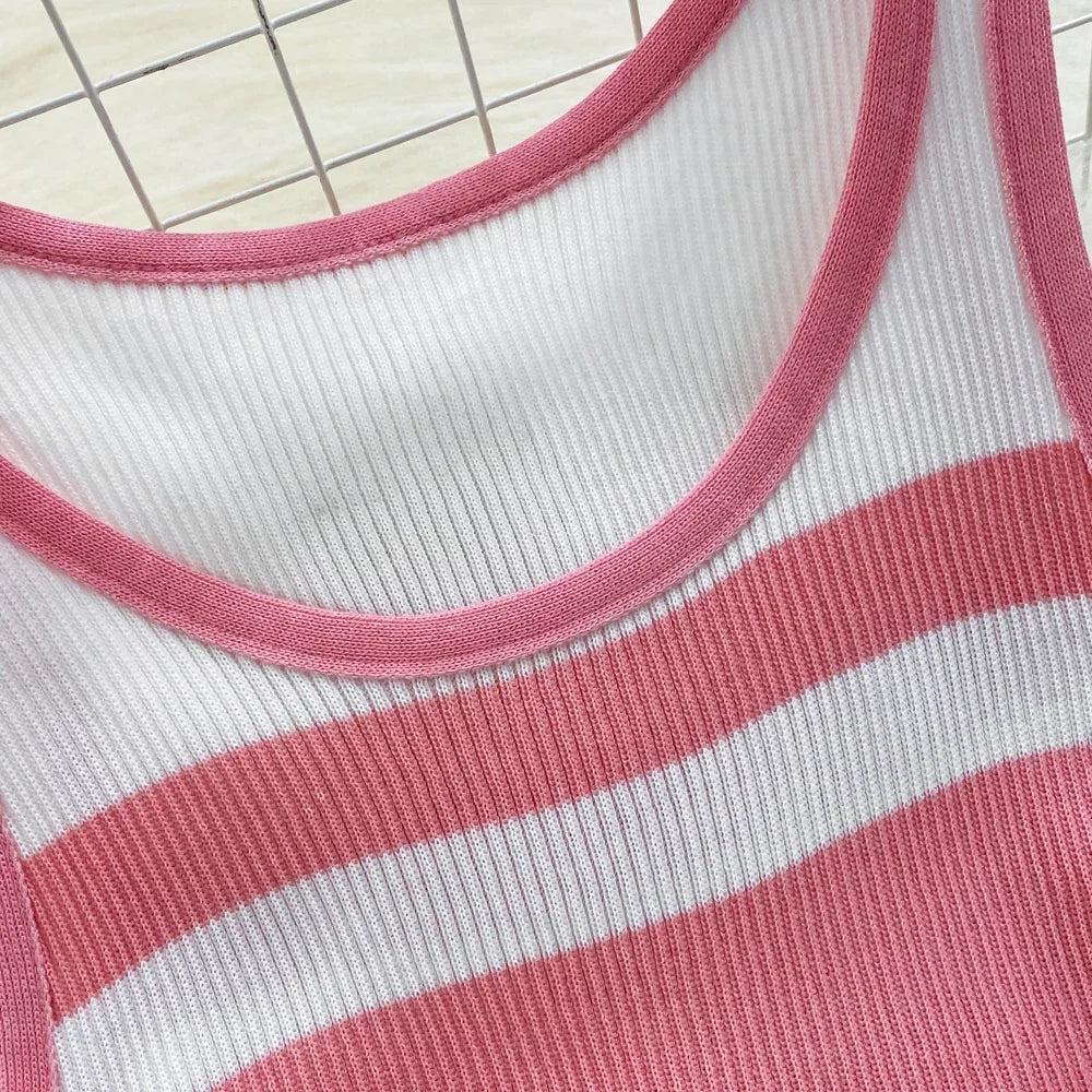 GETADME 시크 스트라이프 O넥 니트 신축성 바디콘 드레스 섹시 비치 휴가용 선드레스 여성 캐주얼 슬림 펜슬 베스티드 맥시 롱 드레스