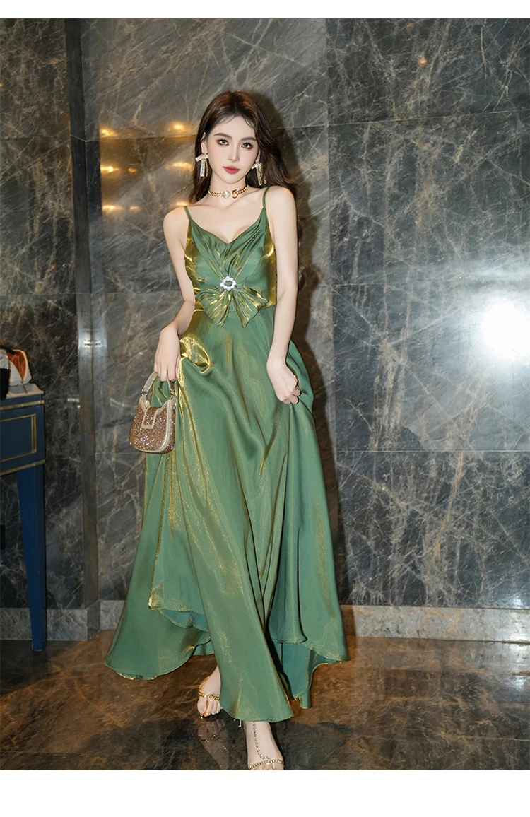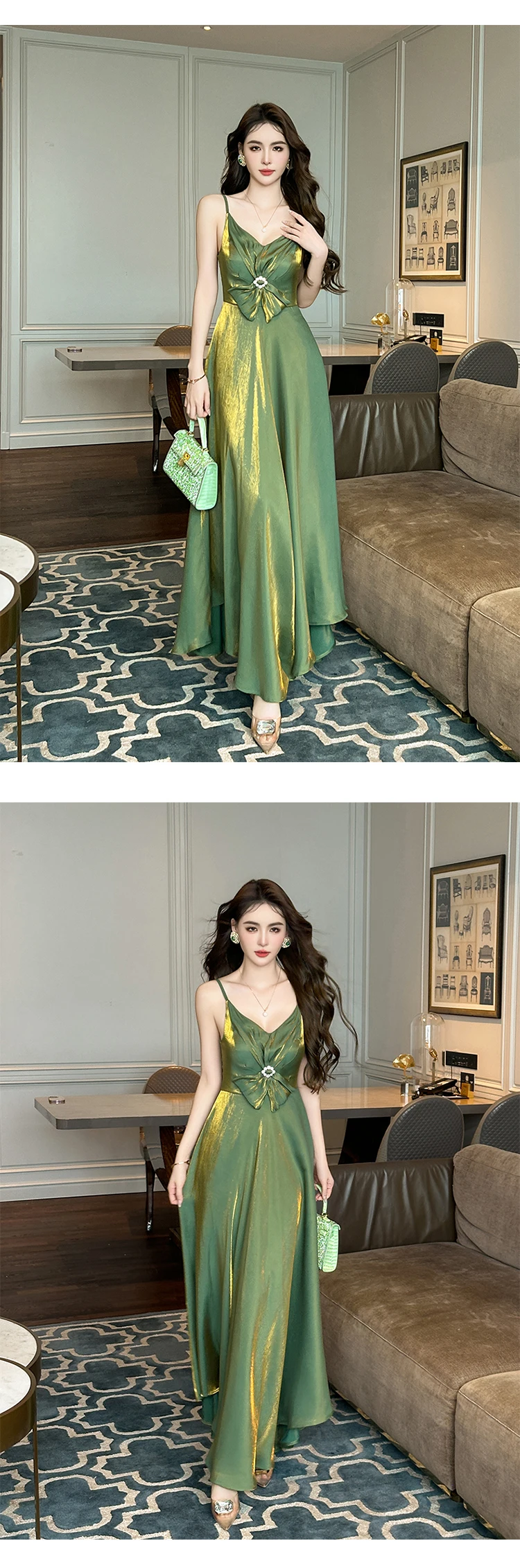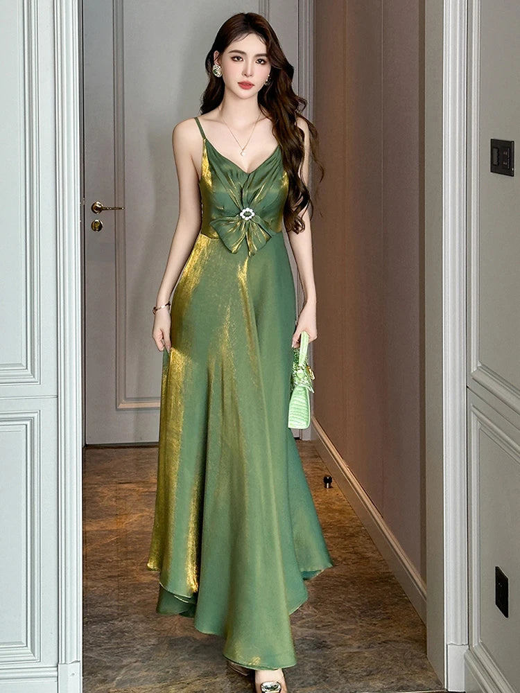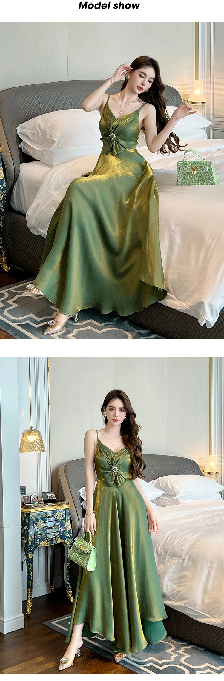 GETADME 우아한 새틴 휴가 휴가 해변 롱 드레스 여성 의류 달콤한 리본 섹시 슬링 A라인 맥시 가운 파티 생일 가운 베스티도