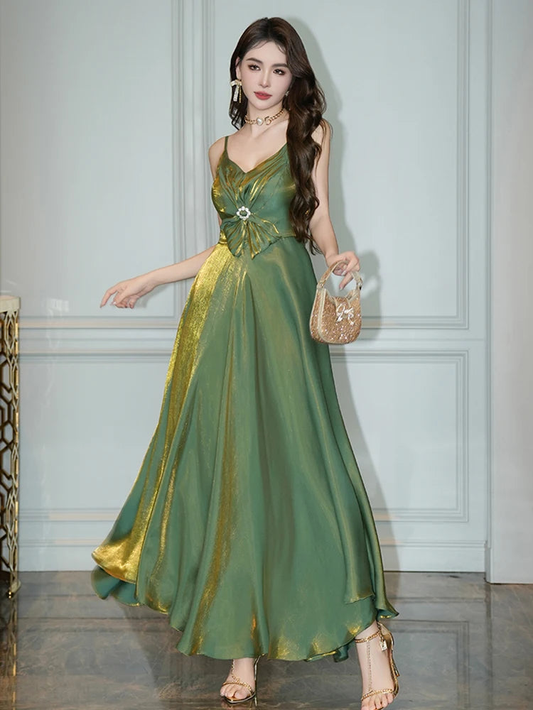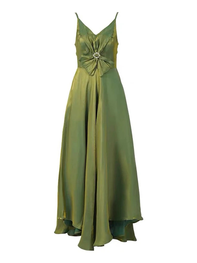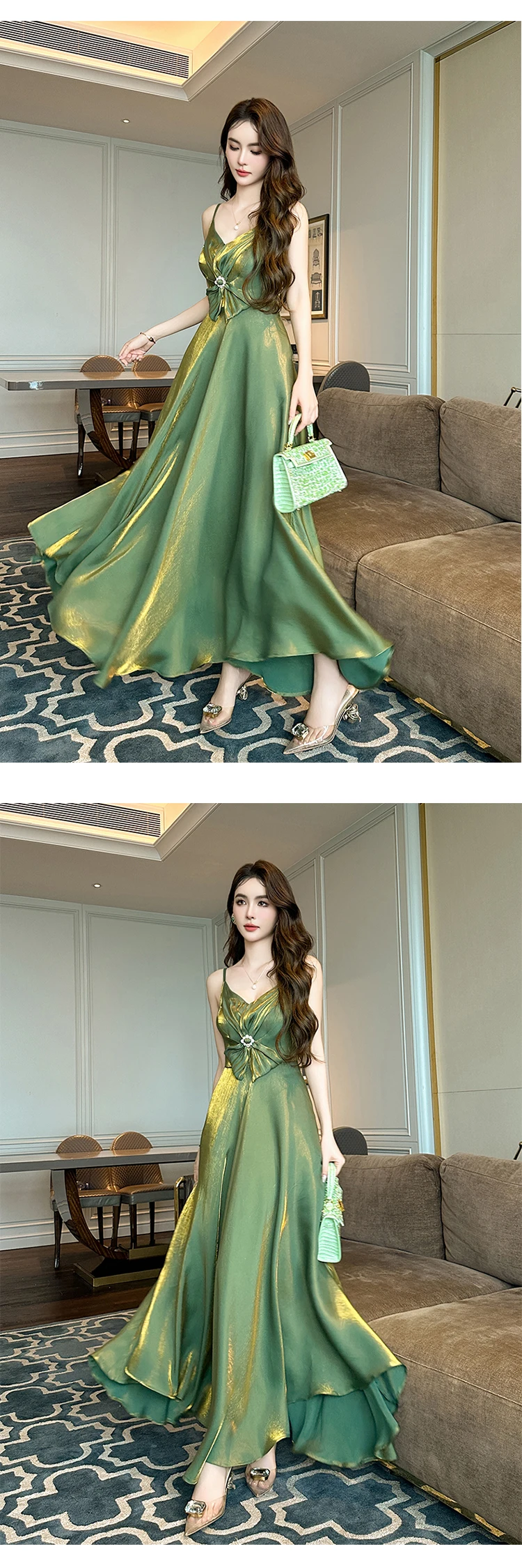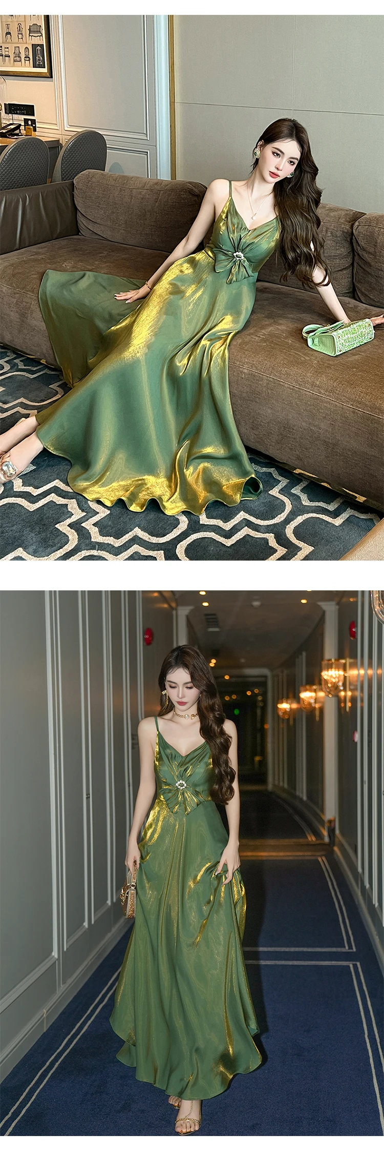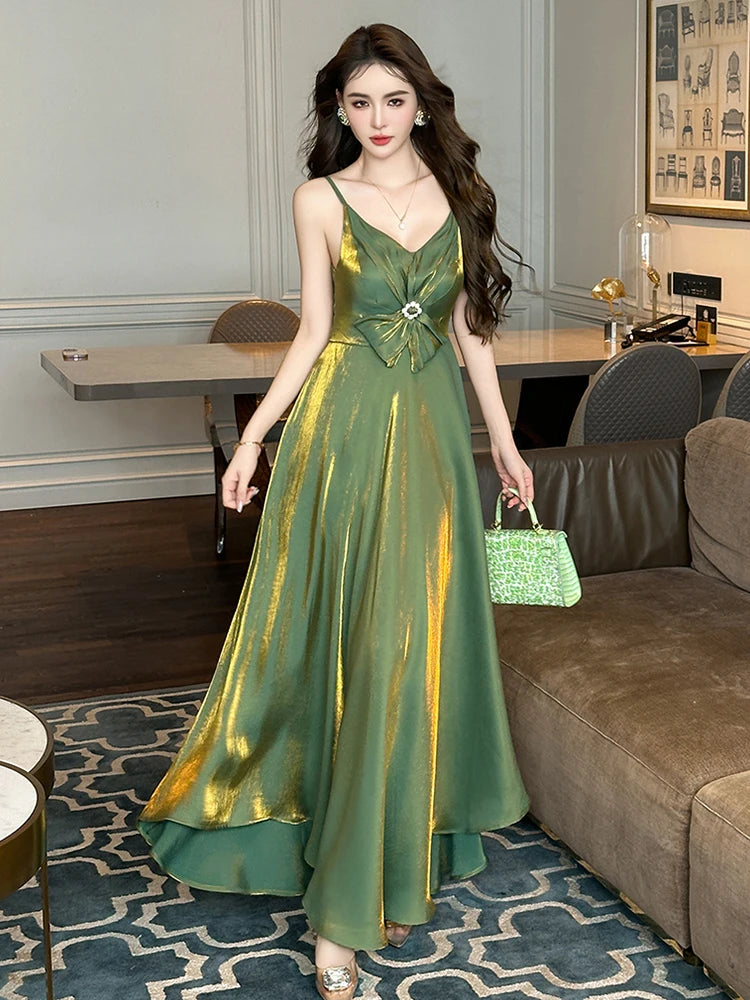 GETADME 우아한 새틴 휴가 휴가 해변 롱 드레스 여성 의류 달콤한 리본 섹시 슬링 A라인 맥시 가운 파티 생일 가운 베스티도
