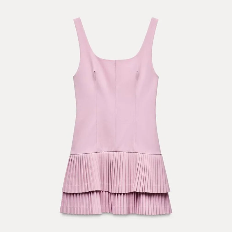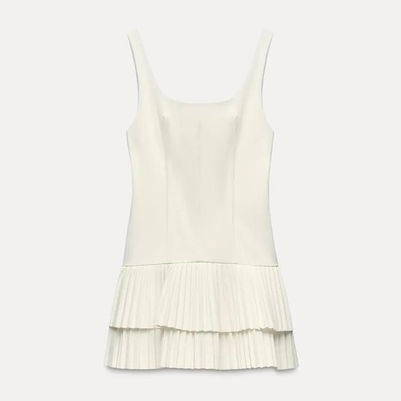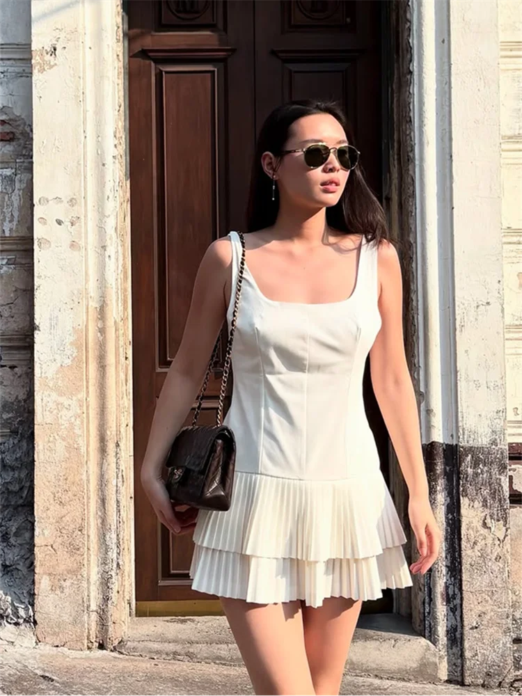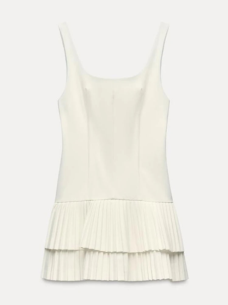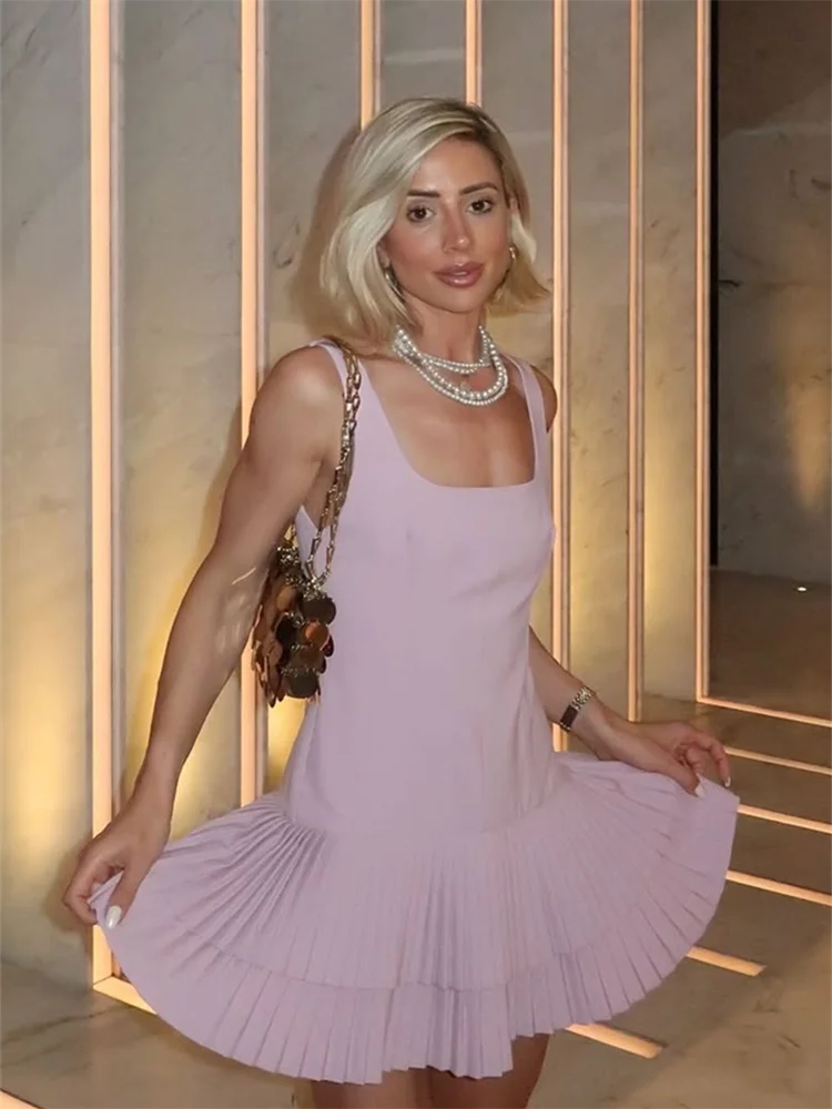 GETADME 우아한 슬립 여성 미니 드레스 우아한 스퀘어 칼라 백리스 슬리브리스 플리츠 파티 드레스 여성 여름 신상 레이디스 베스디소