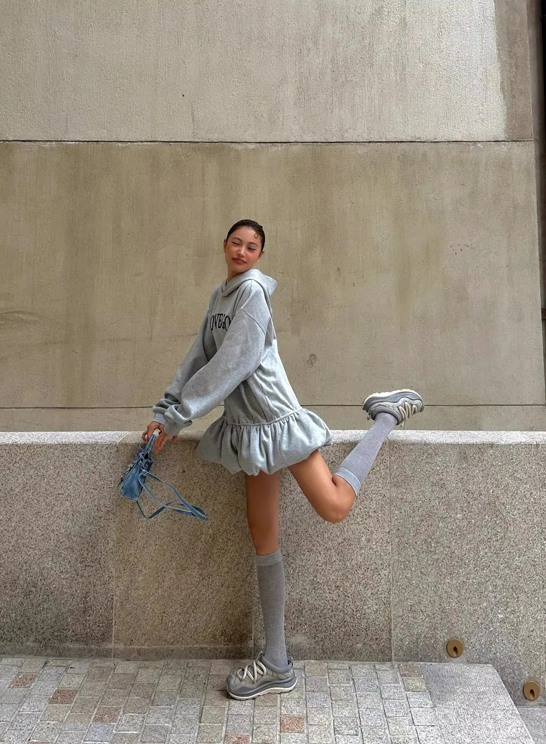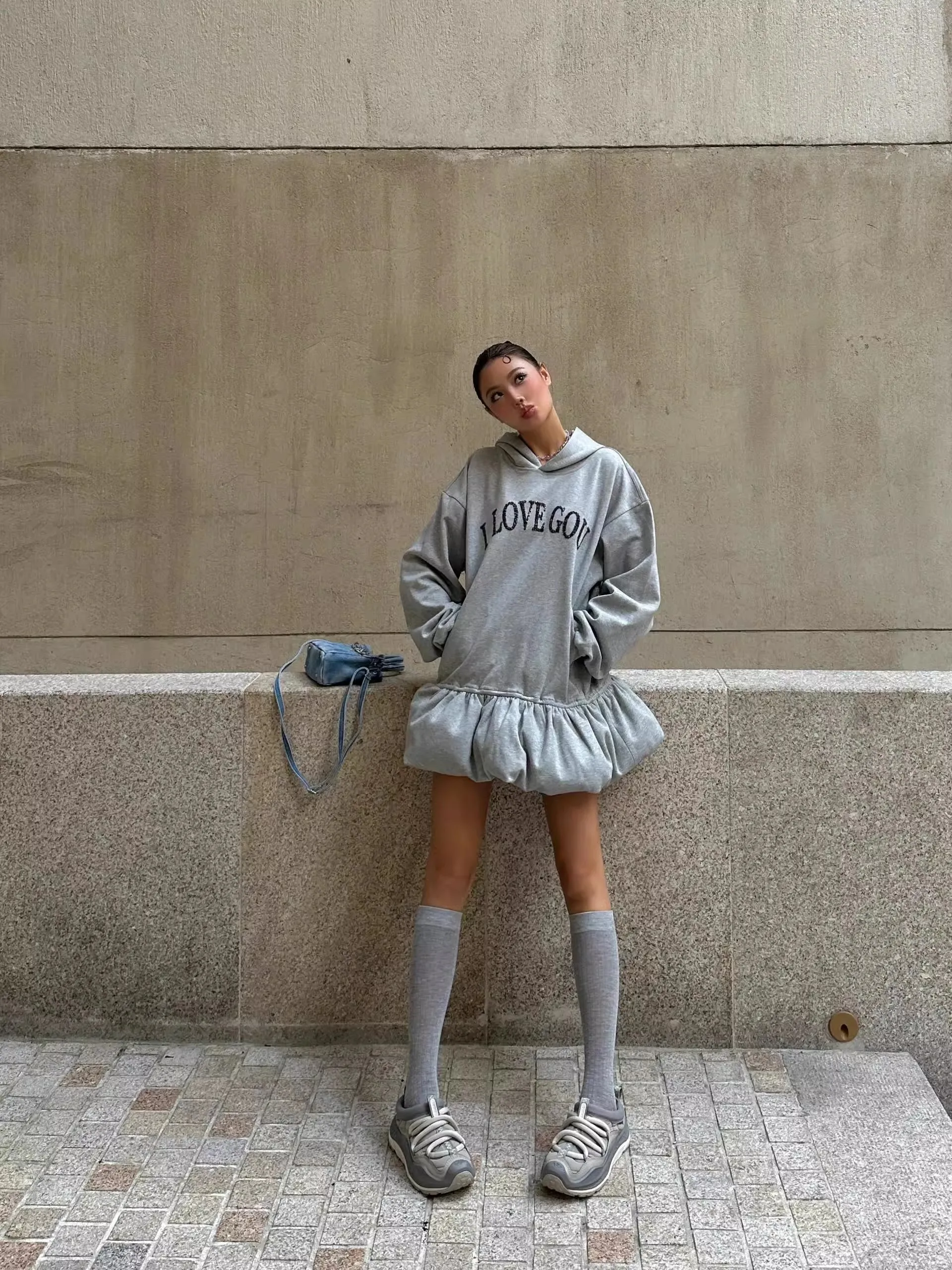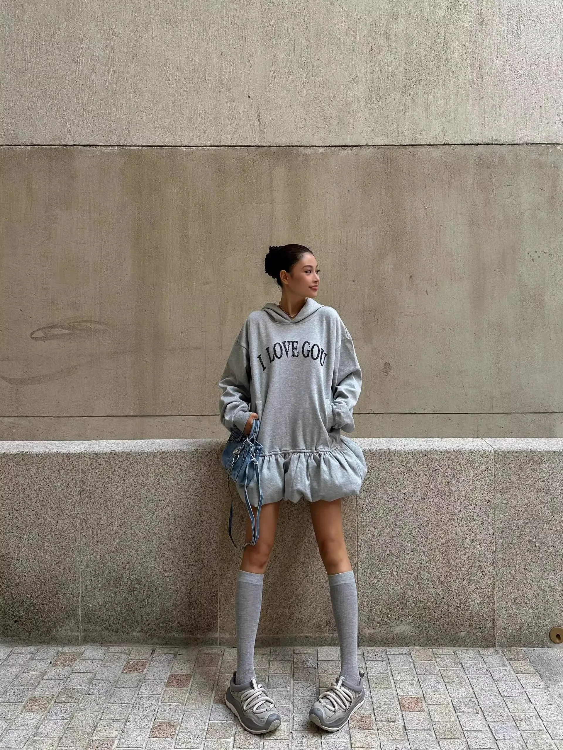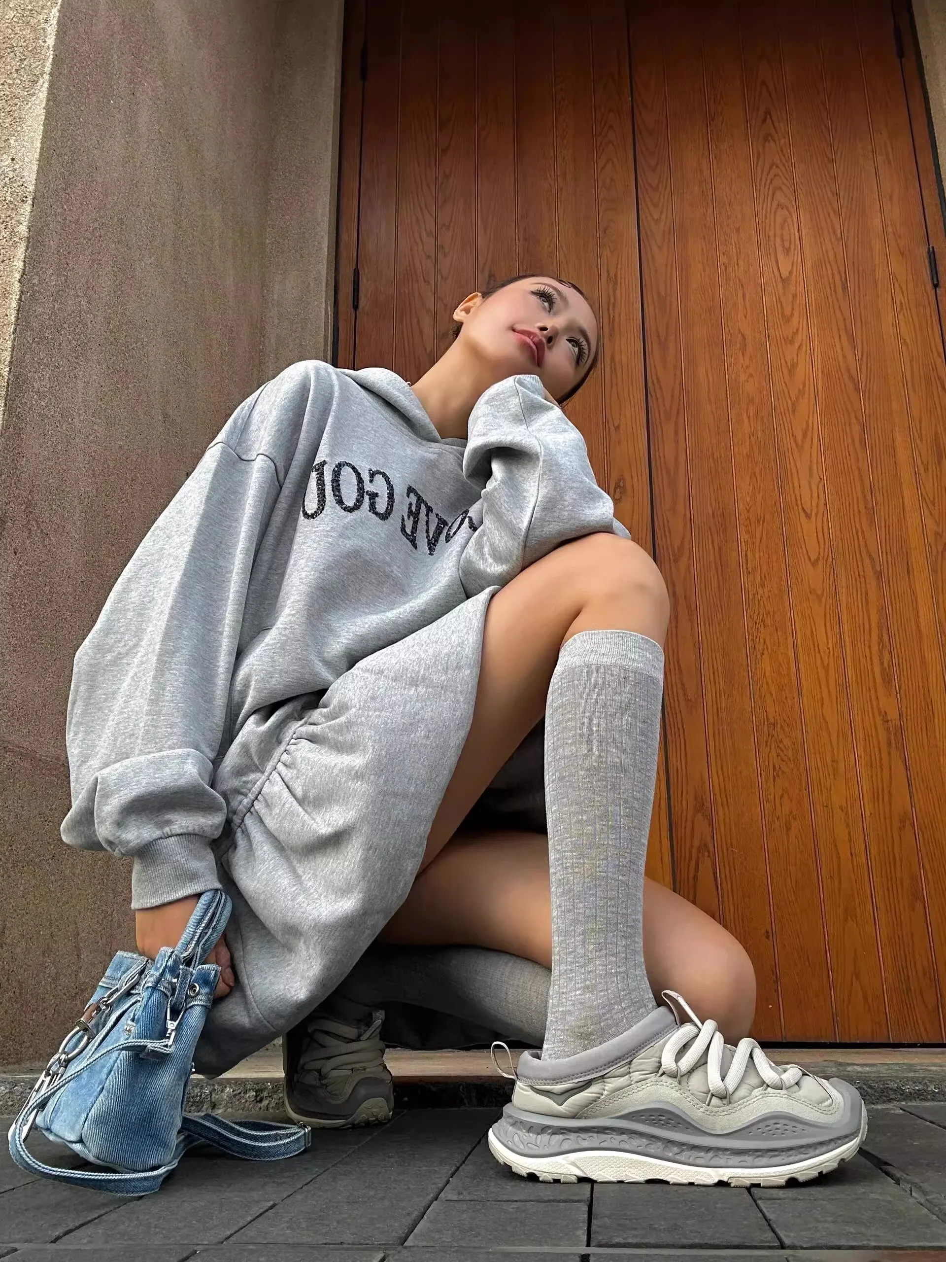 GETADME 플리스 하이넥 사이드 슬릿 캐주얼 롱슬리브 스웨트셔츠 숏드레스 여성 드레스 가을 겨울 올매치 심플 베이직 스포츠웨어