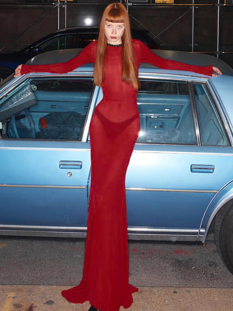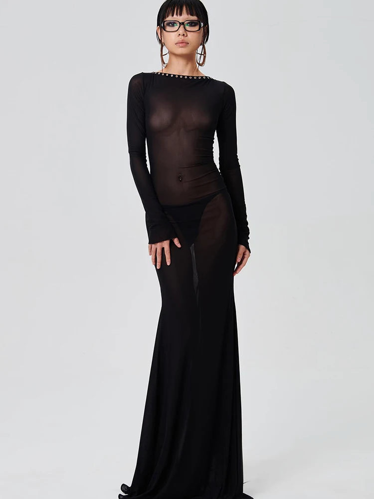 Getadme-Hugcitar 메시 블랙 긴팔 등받이 없는 시스루 시스루 섹시 슬림 바디콘 맥시 드레스 여름 여성 비치 나이트클럽 의상