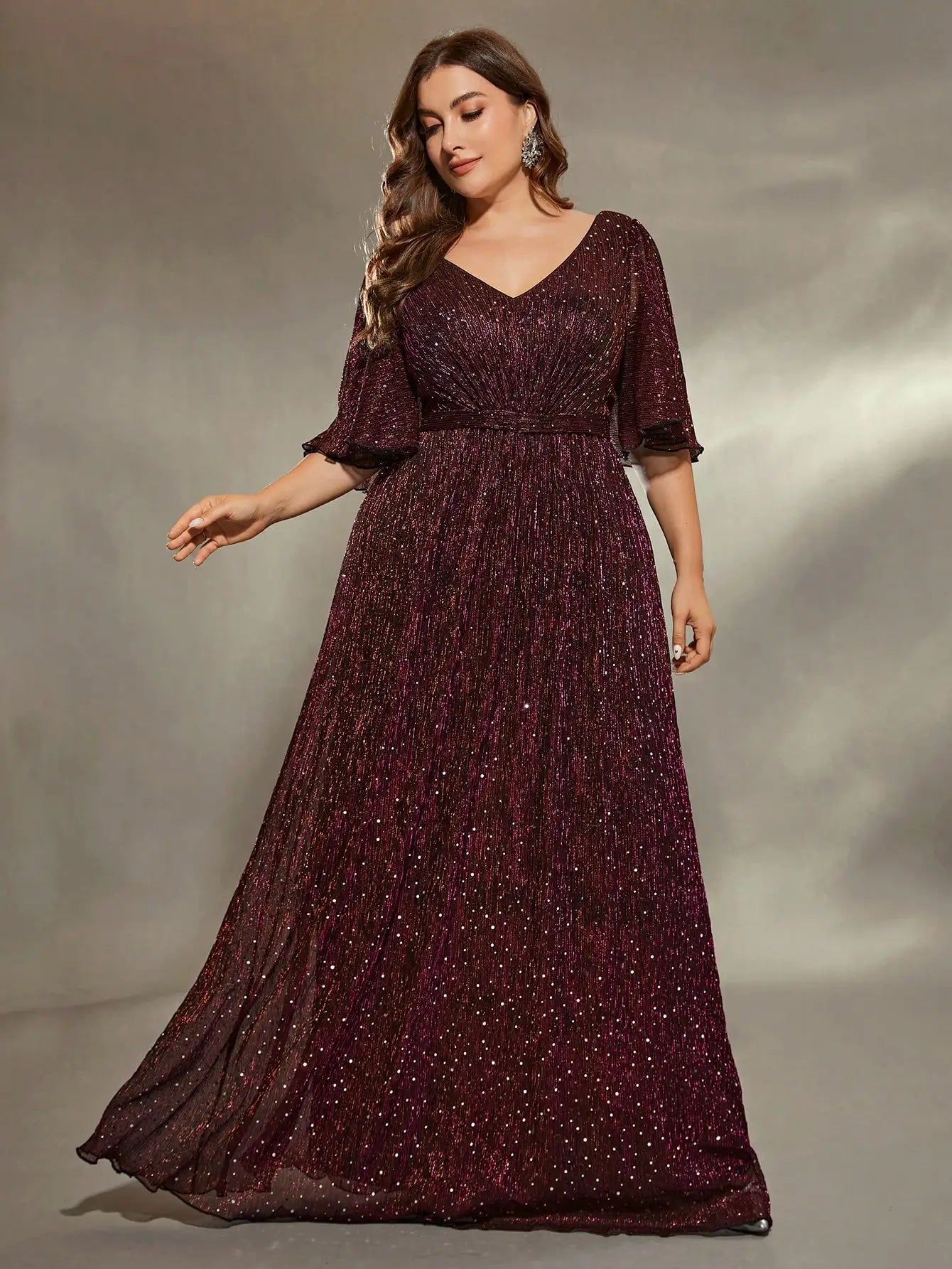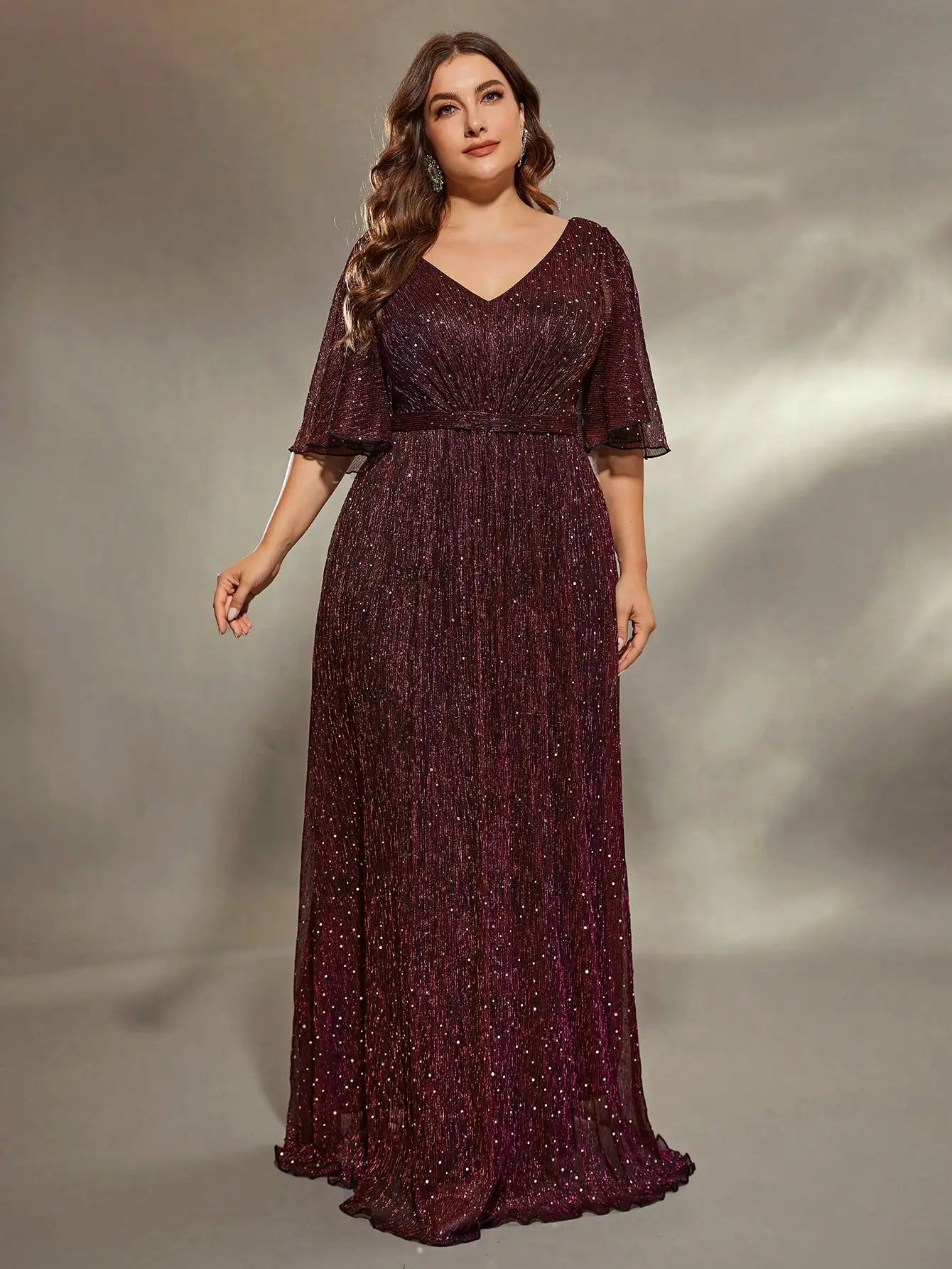 GETADME Mgiacy 플러스 사이즈 하트 칼라 플레어 슬리브 버스트 플리츠 슬라이드 슬라이드 실크 개발 A 풀 스커트 이브닝 가운 볼 드레스