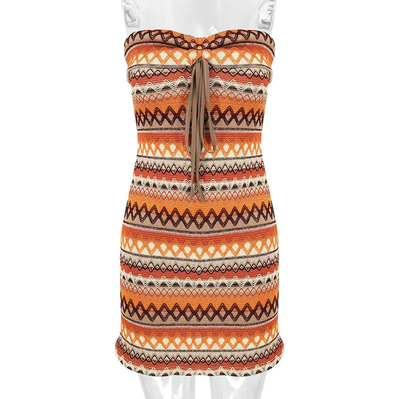 GETADME 새로운 여성 드레스 다채로운 여름 패션 레이스업 캐주얼 슬림 드레스 섹시한 오프 숄더 백리스 캐주얼 슬림 우아한 드레스