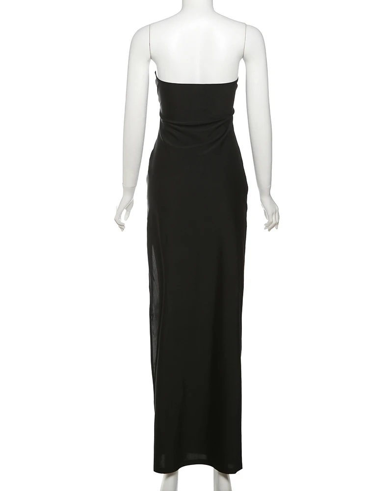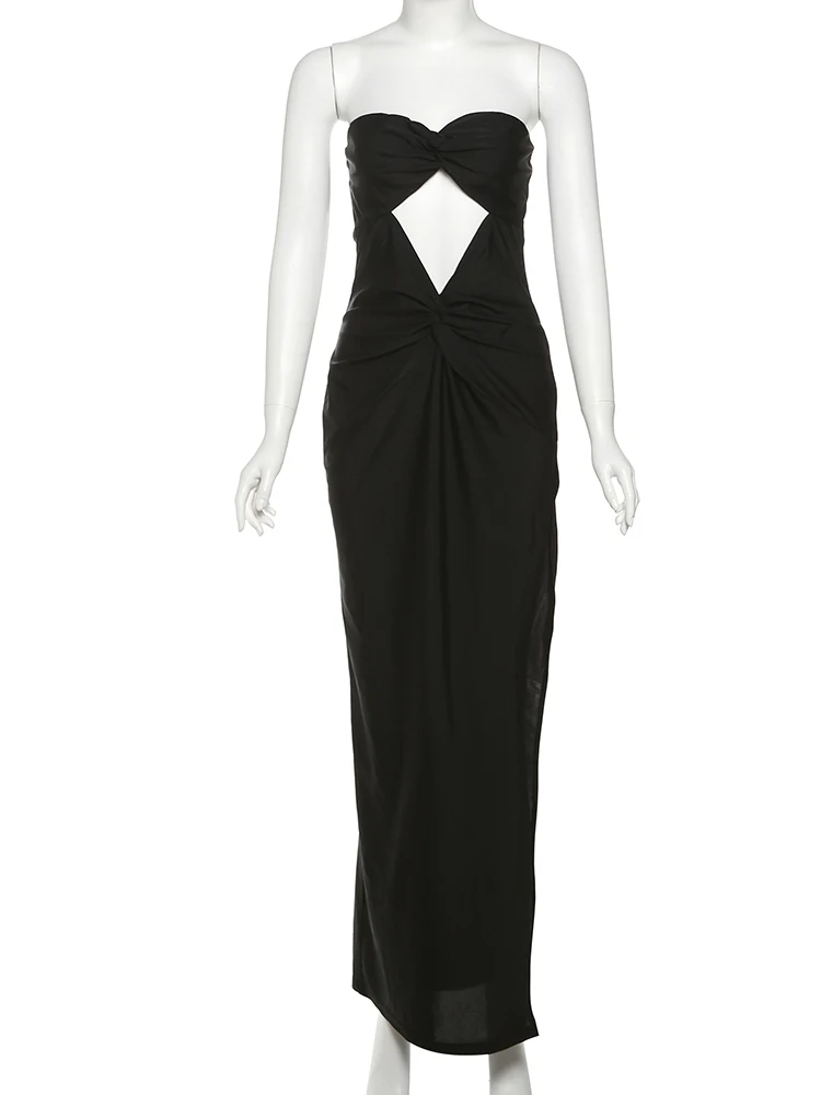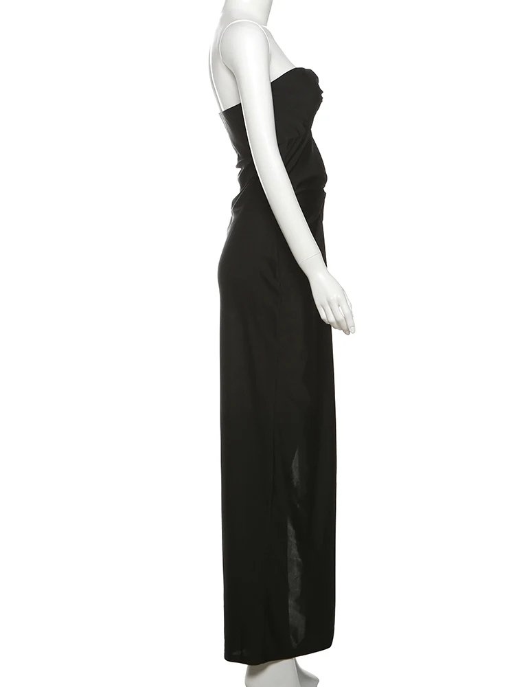 GETADME 니버 여름 트렌드 드레스 여성 등 없는 스트랩리스 홀로우 사이드 슬릿 슬리브리스 솔리드 플리츠 섹시 미드나잇 클럽 파티 베스디시