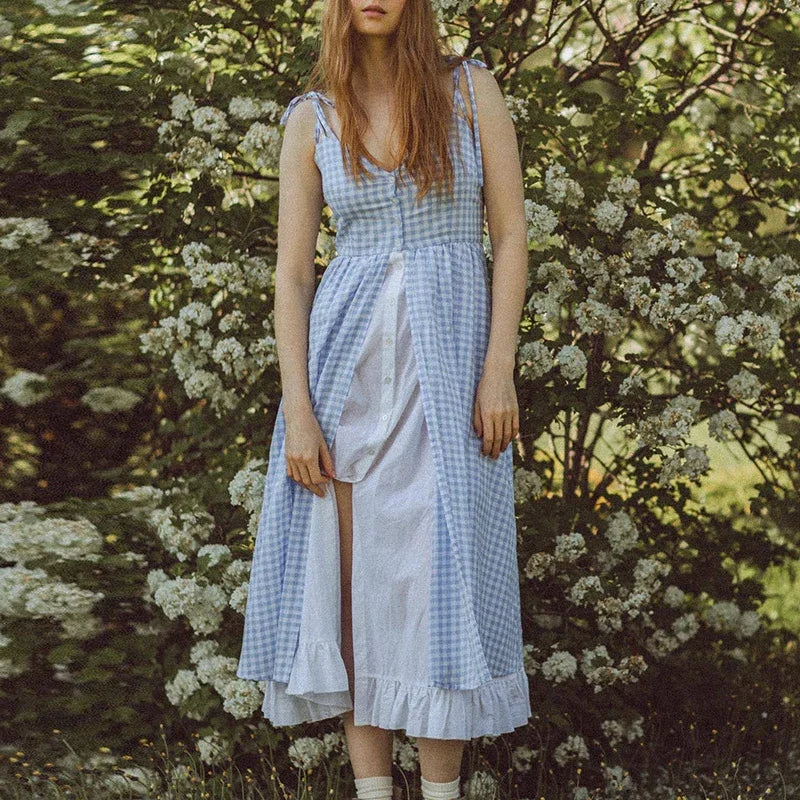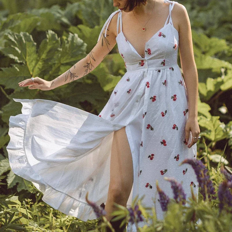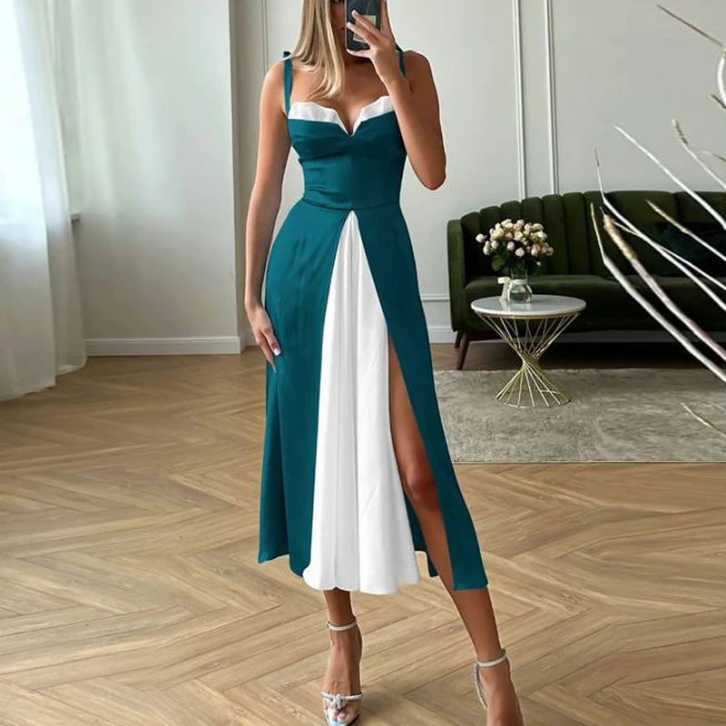 GETADME 패턴 가든 컨트랙트 컬러 하이 스트리트 드레스 레이디 엘레강트 스플릿 카디건 V넥 롱 드레스 섹시한 여성 러플 A라인 드레스