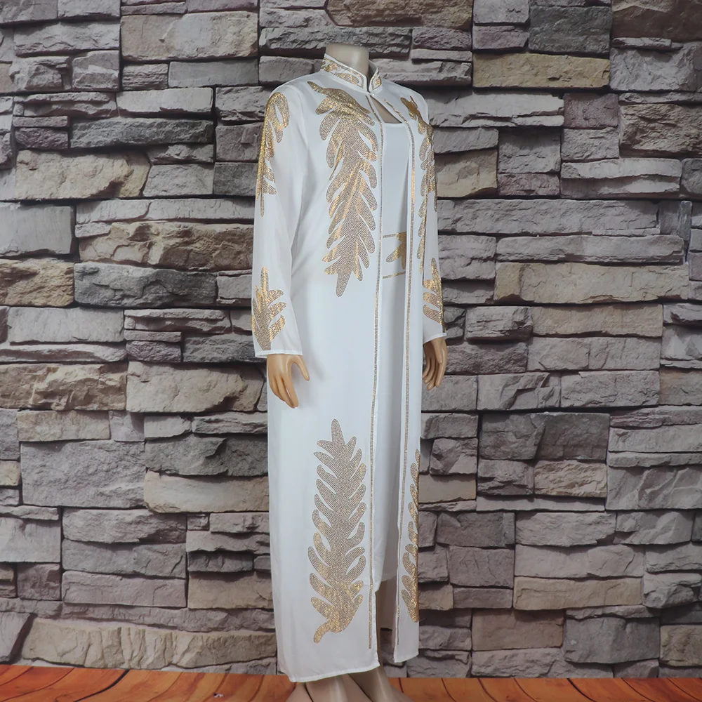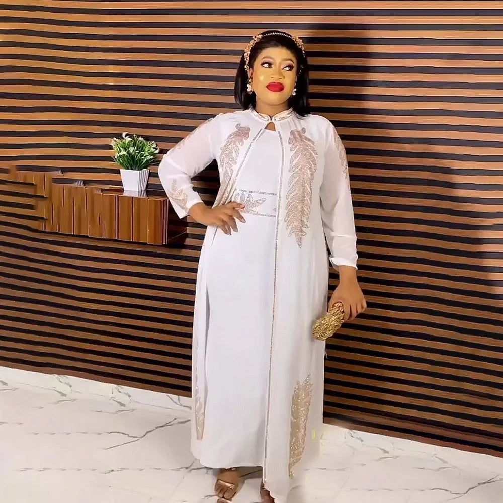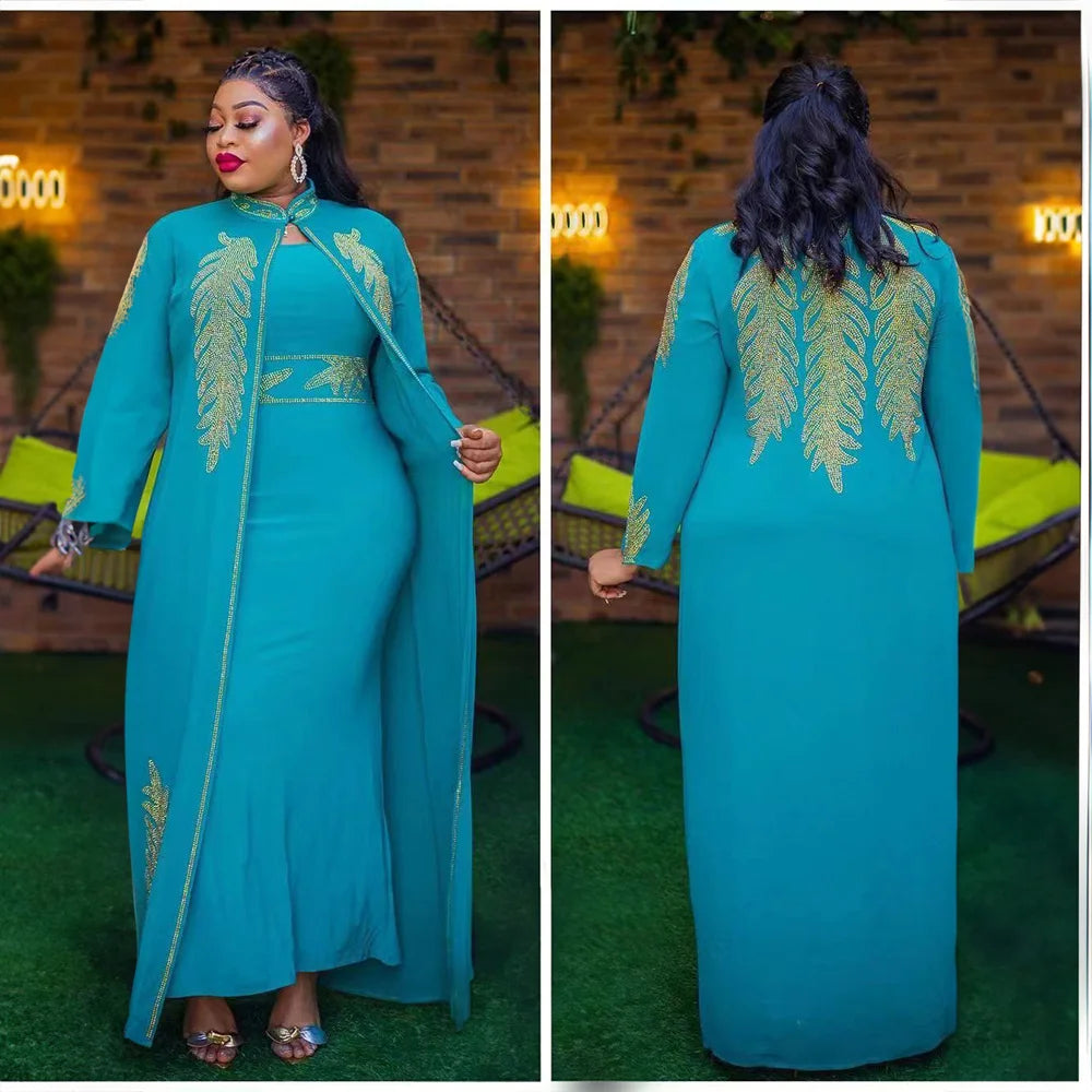 GETADME 고품질 아프리카 드레스 투피스 드레스 여성용 우아한 드레스 라인스톤 장식 롱 드레스