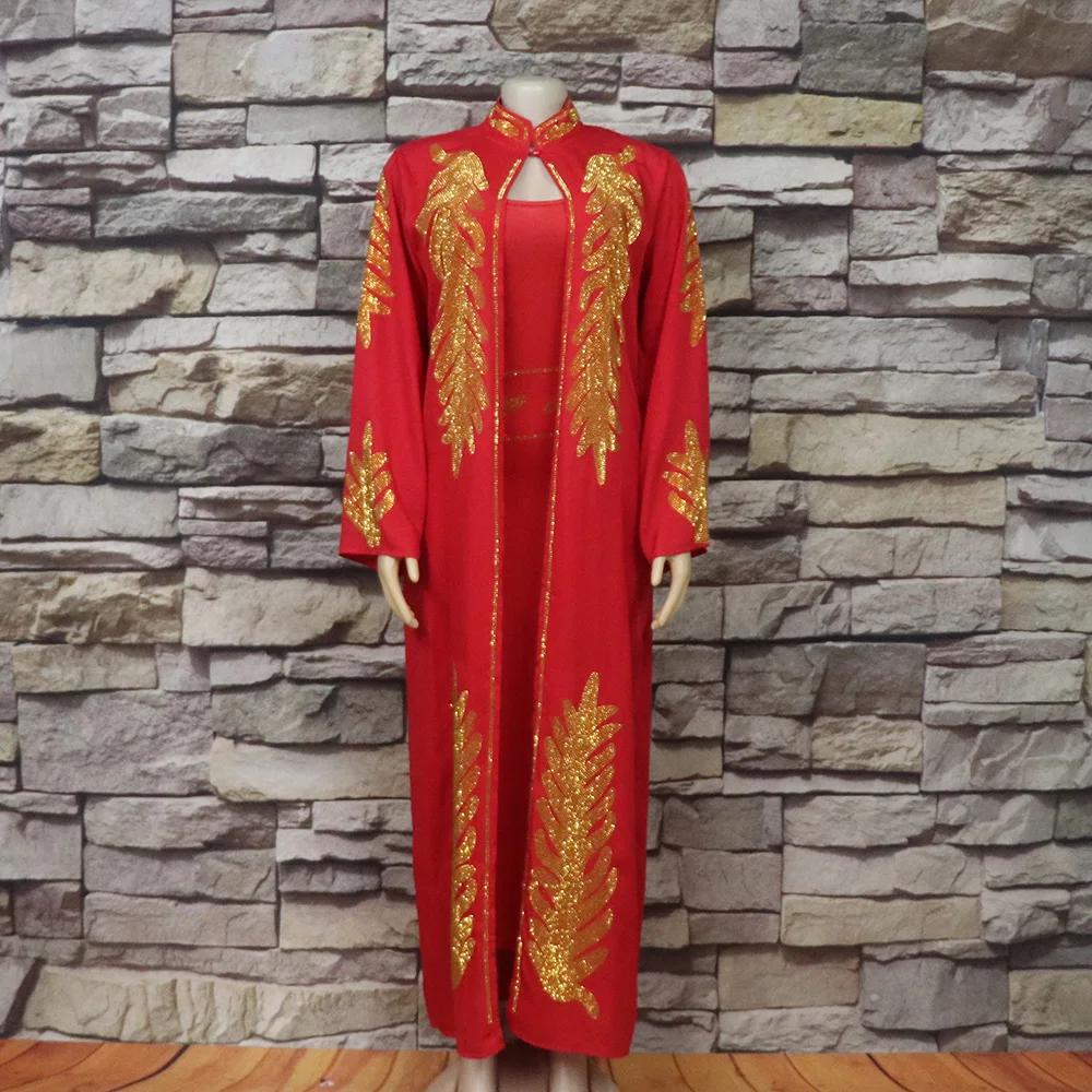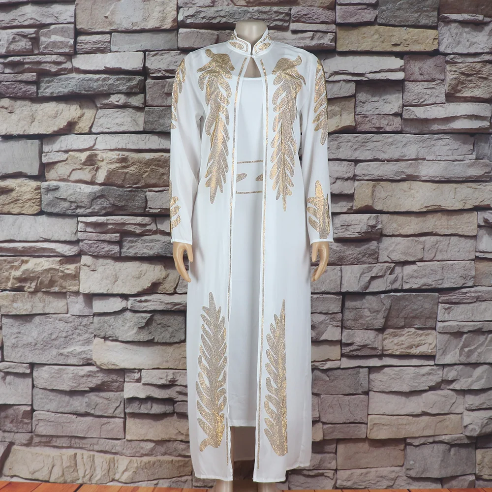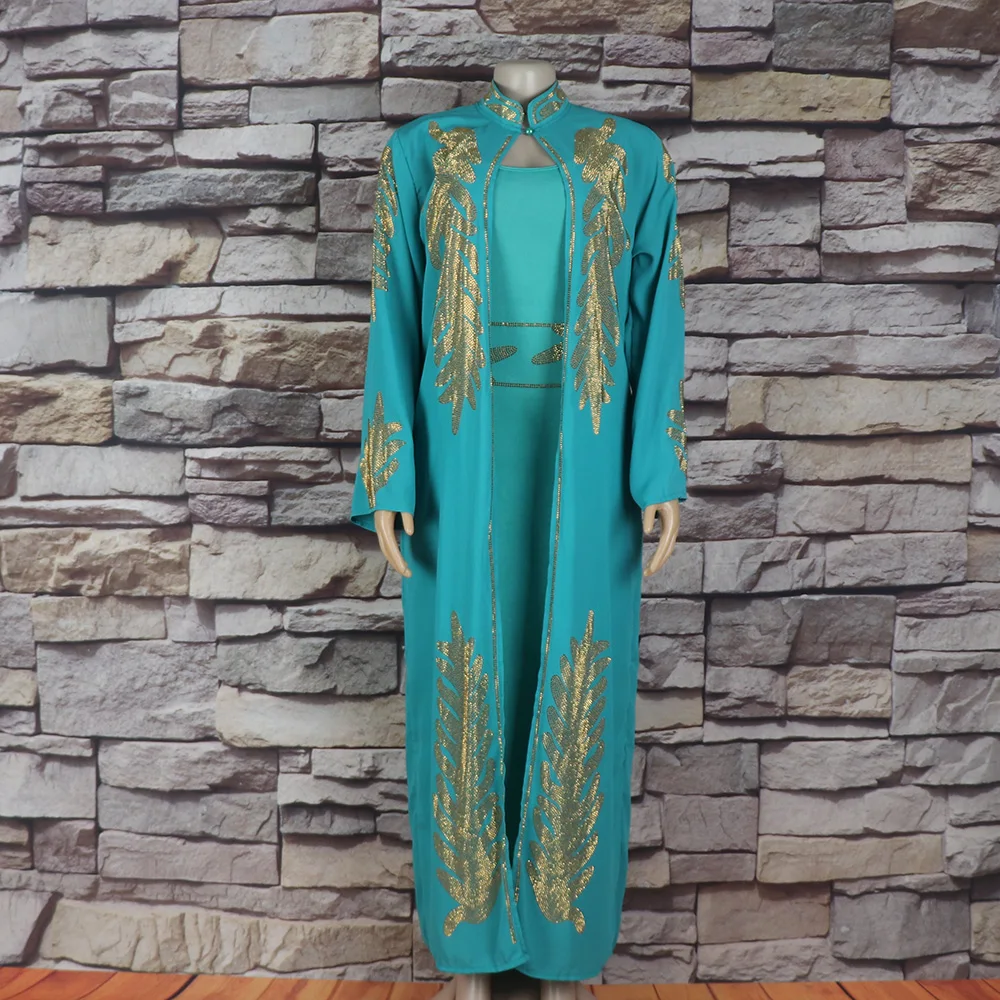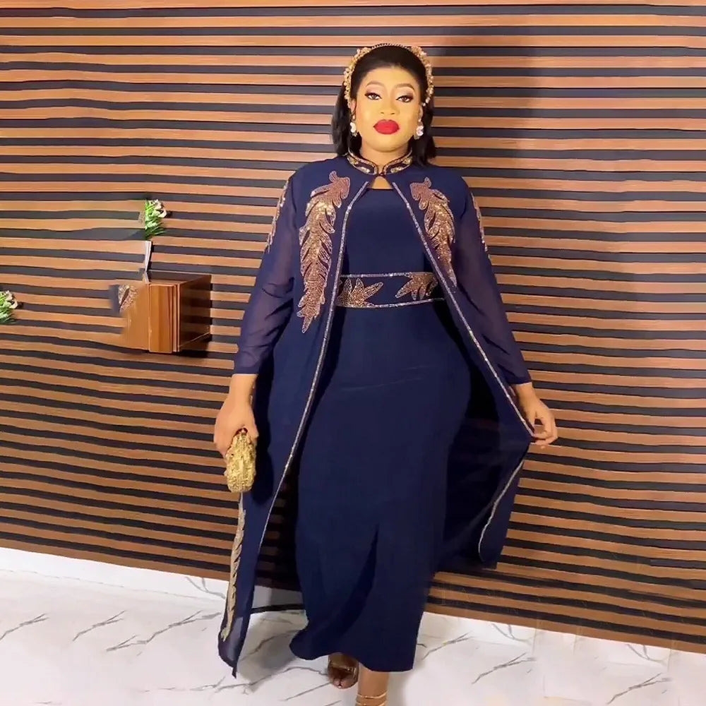 GETADME 고품질 아프리카 드레스 투피스 드레스 여성용 우아한 드레스 라인스톤 장식 롱 드레스