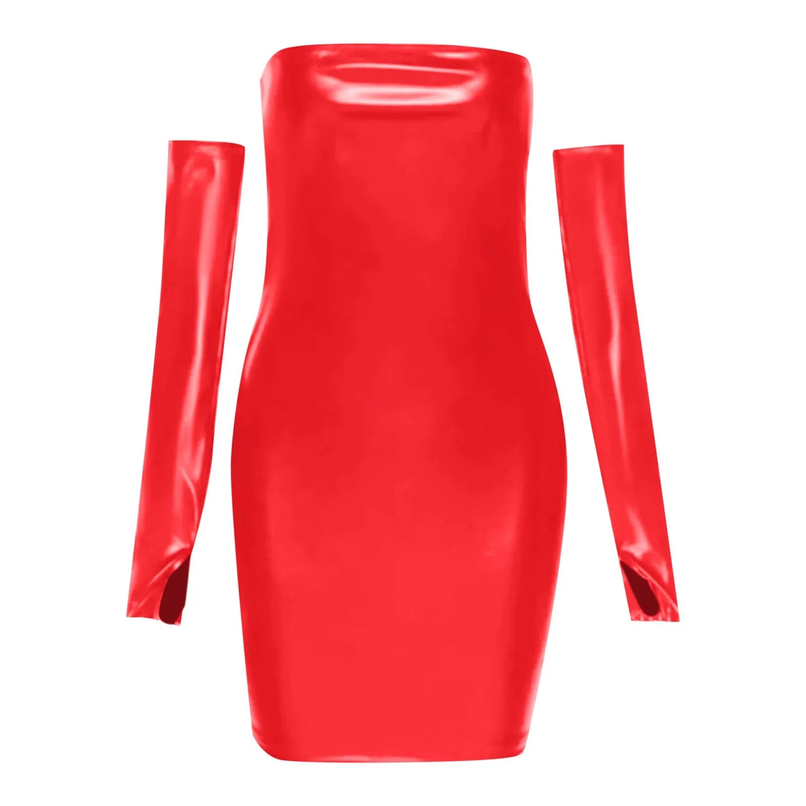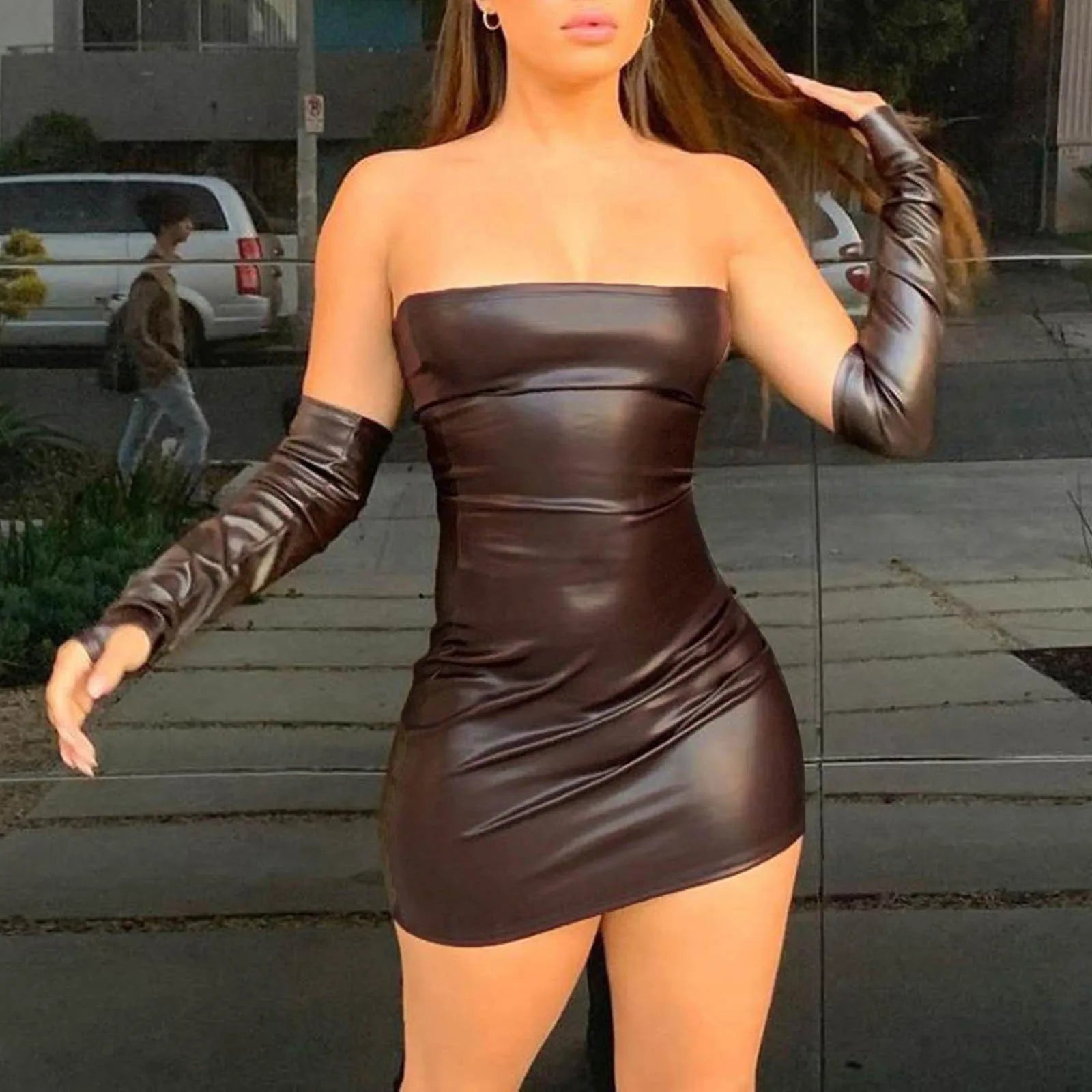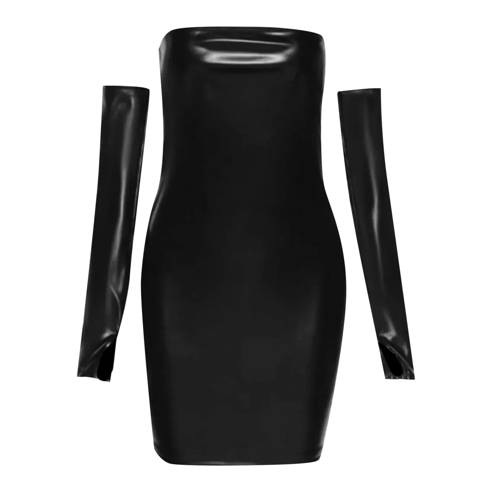 Getadme 섹시 가죽 갈라 드레스 여성 솔리드 오프 숄더 짧은 슬리밍 디자인 스커트 개별 스파이시 걸 랩 엉덩이 드레스