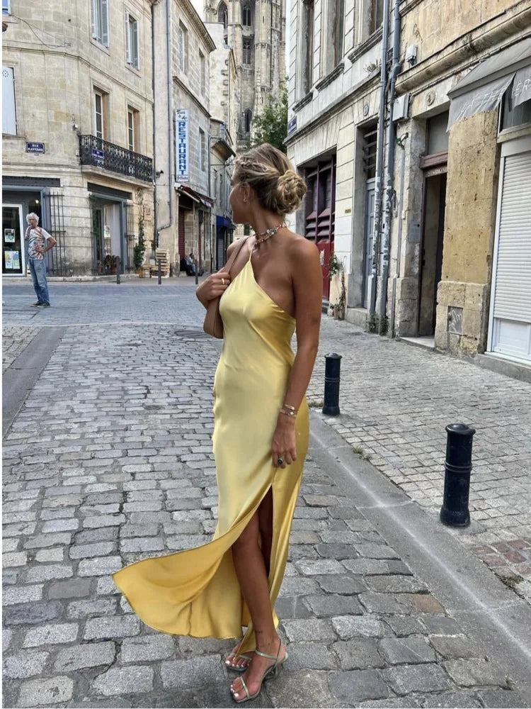 Getadme-섹시한 새틴 백리스 비치 선드레스 여성 여름 홀터넥 슬리브리스 하이 스플릿 롱 맥시 드레스 파티 홀리데이 베스티드 로브