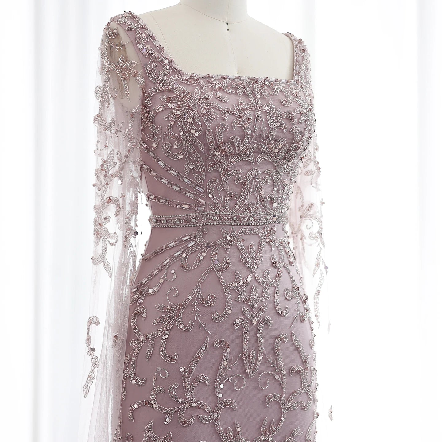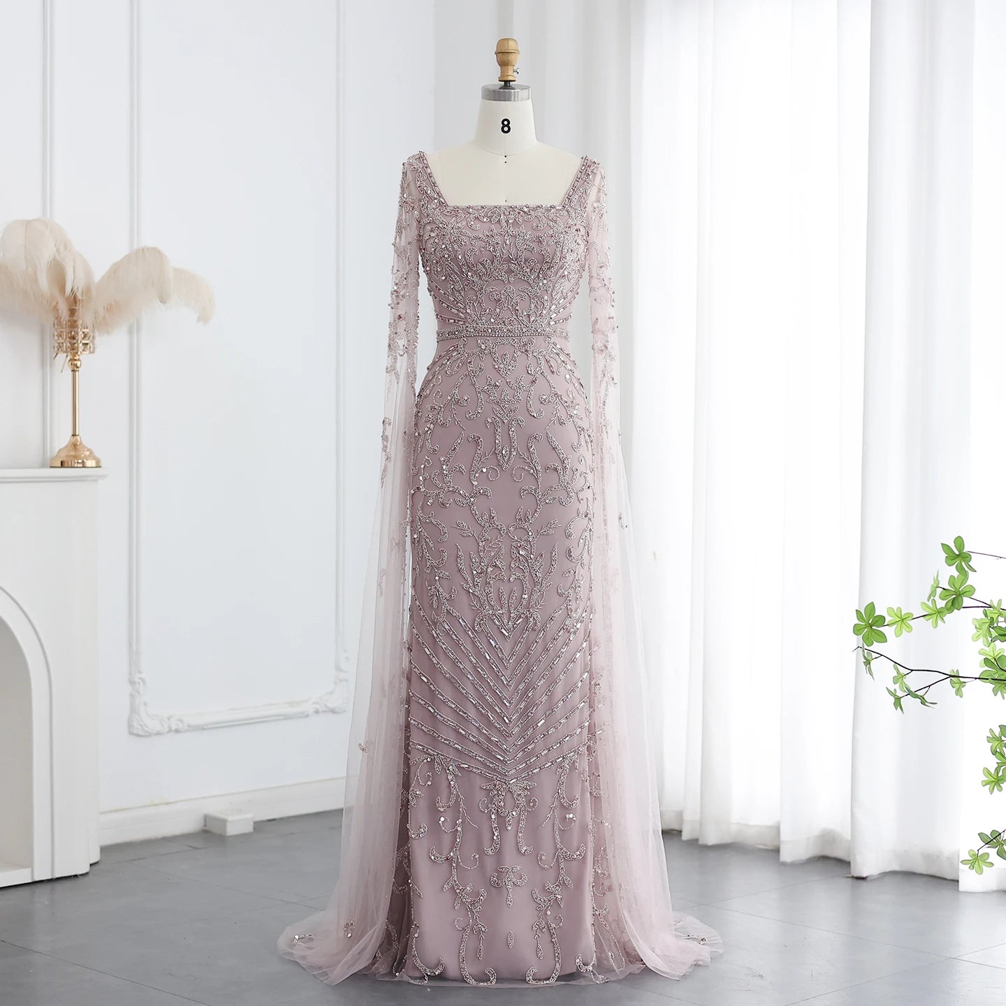 GETADME 샤론 사이드 럭셔리 아랍 터키석 이브닝 드레스 케이프 슬리브 스퀘어넥 두바이 여성 웨딩 파티 가운 SS469 맞춤 제작