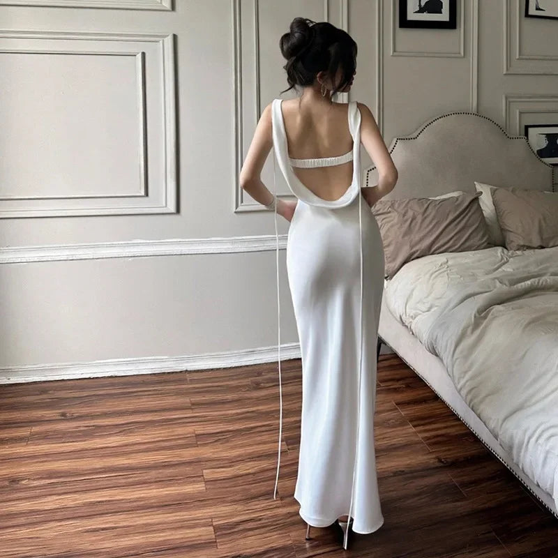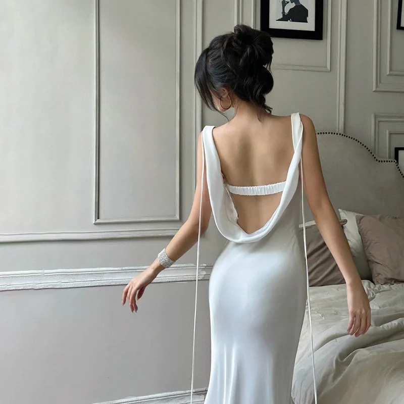 GETADME 여성용 유럽풍 아메리칸 스타일 섹시 가슴 랩 더블 숄더 스트랩 백리스 V넥 슬림핏 드레스