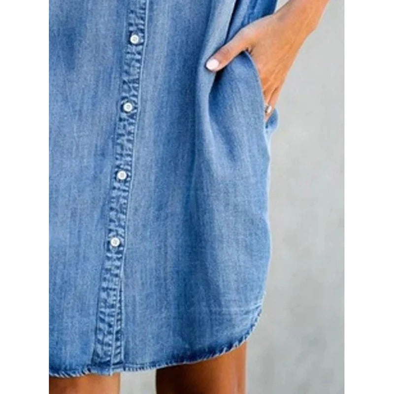 GETADME-여름 신상품 싱글 브레스티드 데님 셔츠 드레스 여성 캐주얼 루즈 포켓 심플 레트로 통근 여성 오피스 데님 숏 스커트