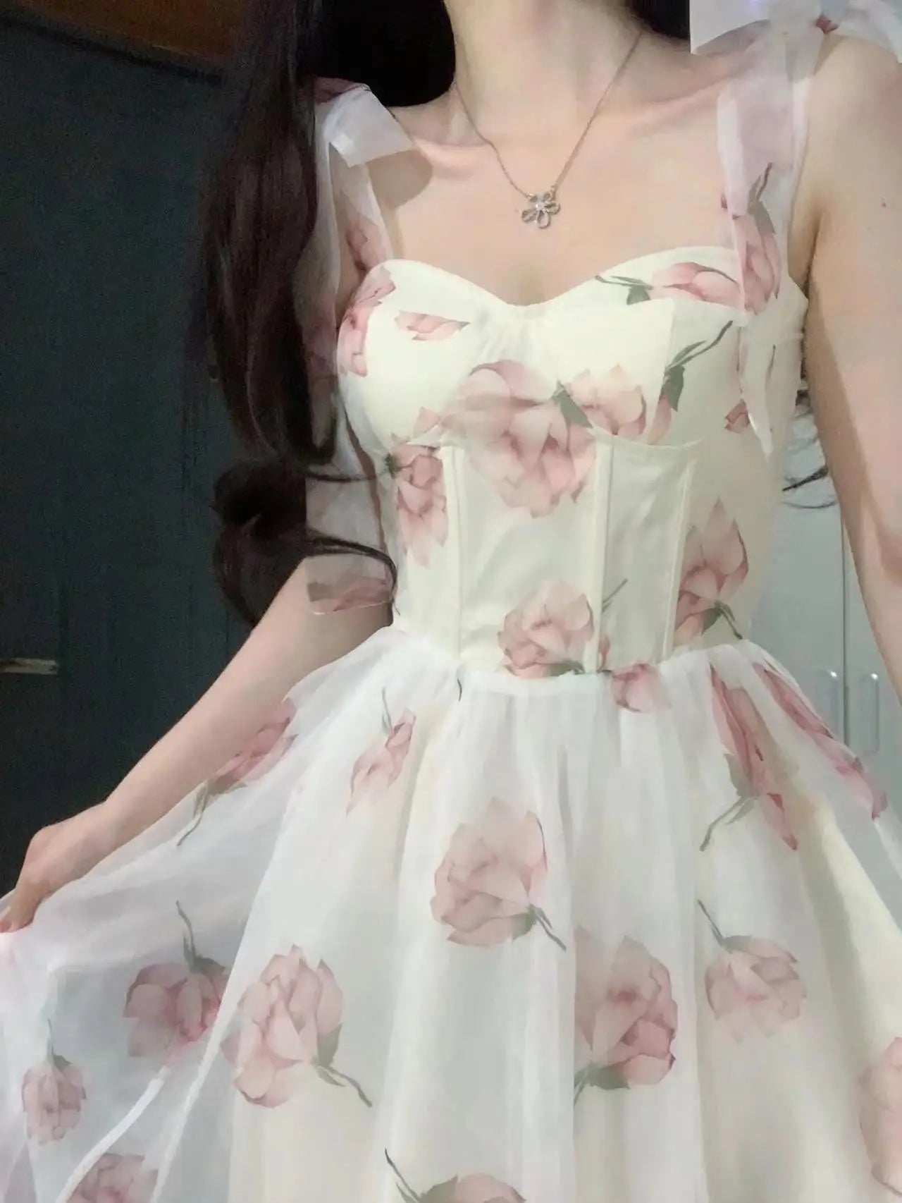 플로럴 스트랩 드레스