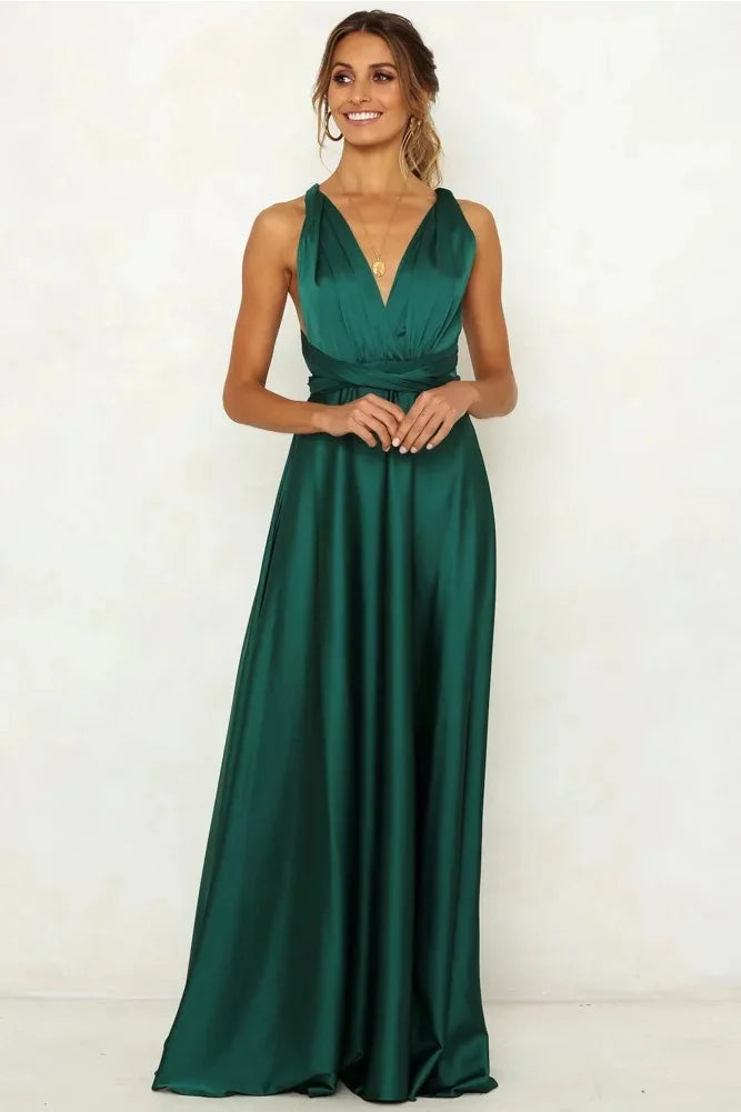 Getadme-여성용 딥 V넥 슬리브리스 풀오버 드레스 섹시 오픈 백 하이웨이스트 라지 스윙 새틴 파티 롱 드레스 여성 의류