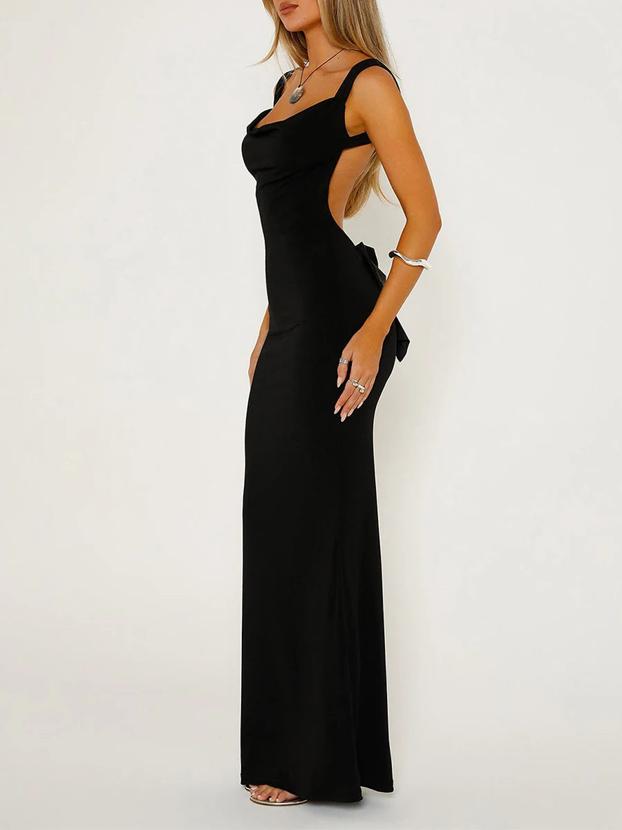Getadme-여성용 섹시 백리스 드레스 바디콘 슬리브리스 오픈 백 새틴 리본 맥시 드레스 외출용 우아한 파티 칵테일 롱 드레스