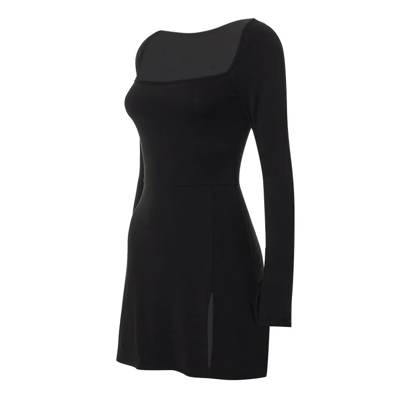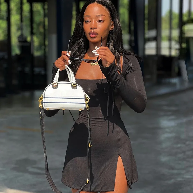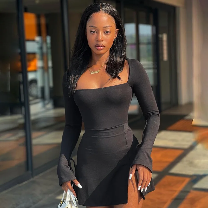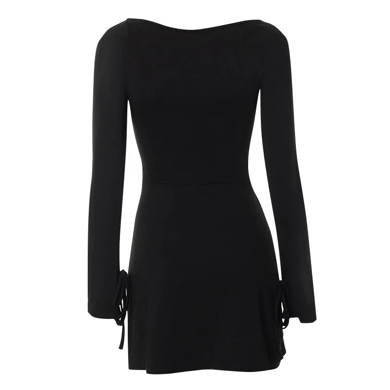 GETADME 여성 섹시 미니 드레스 솔리드 신상품 봄 패션 긴팔 레이스업 스플릿 바디콘 드레스 레이디 우아한 니트 드레스 의류