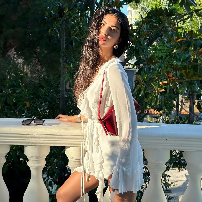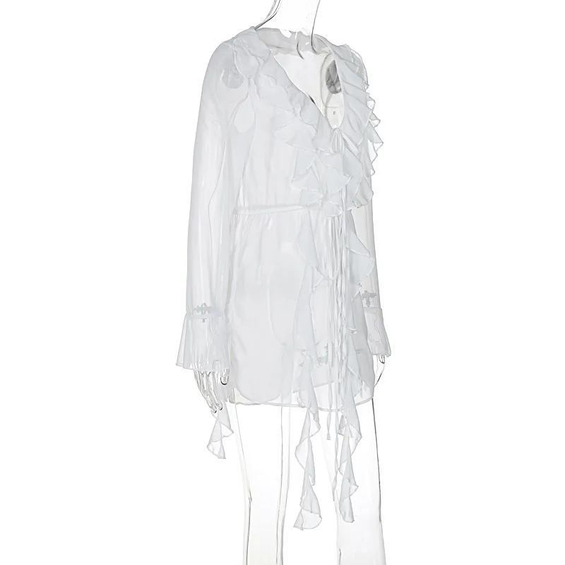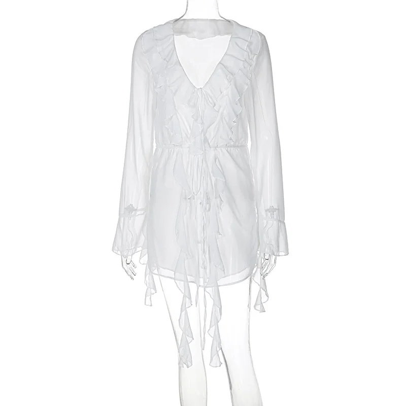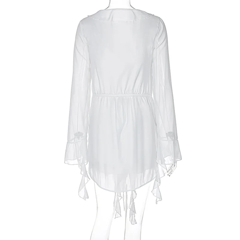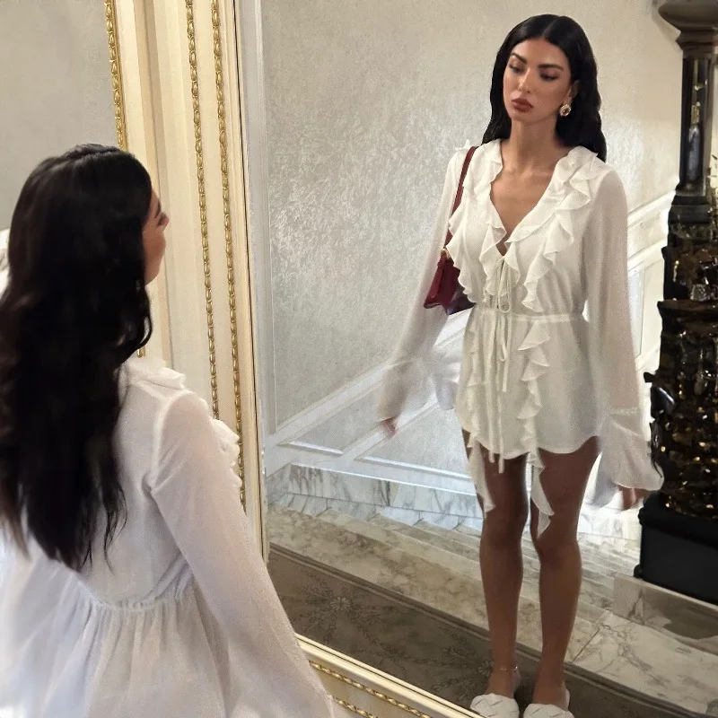 Getadme 여성용 고급 드레스, V넥, 러플, 옆선, 소매, 레이스업, 유럽 및 미국, 세련된 기질, 새로운 여름