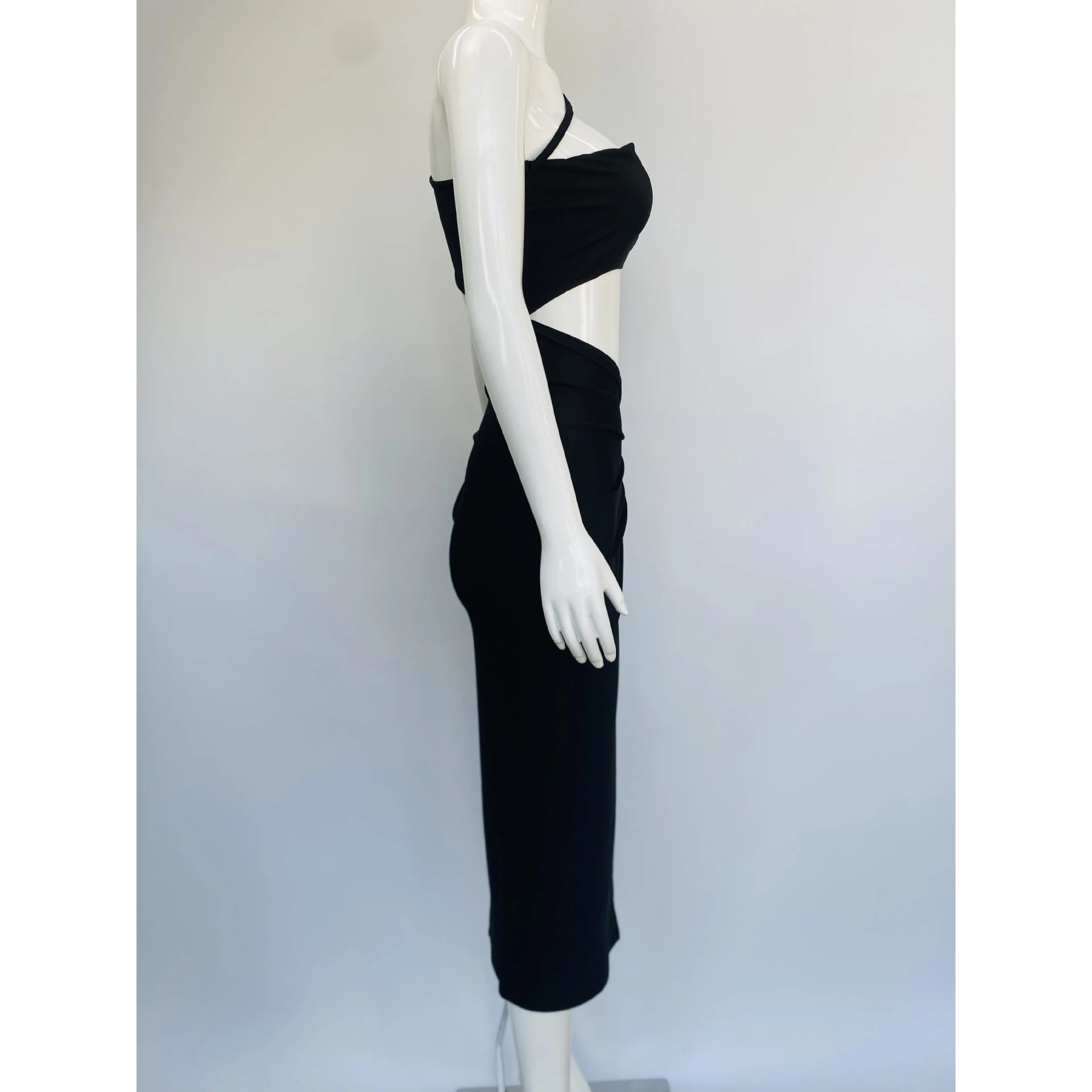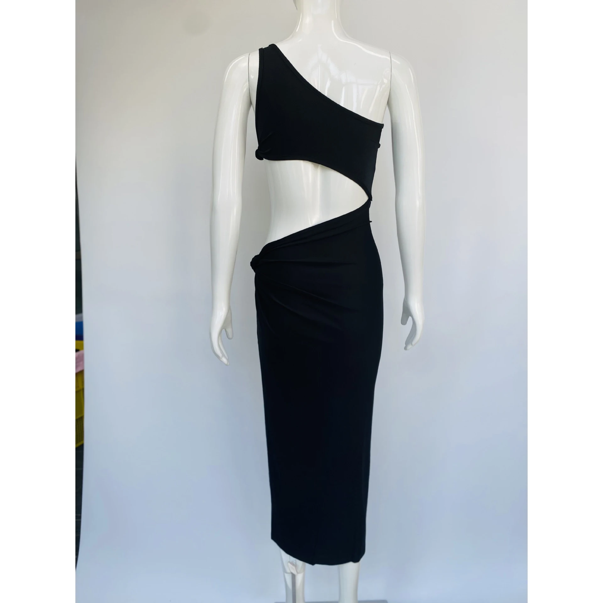 GETADME 여성용 민소매 원숄더 솔리드 컷오프 홀 바디콘 스플릿 섹시 나이트클럽 파티 드레스