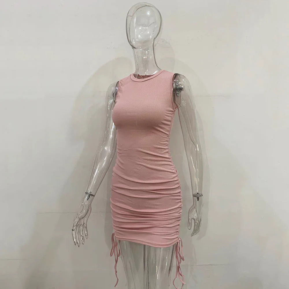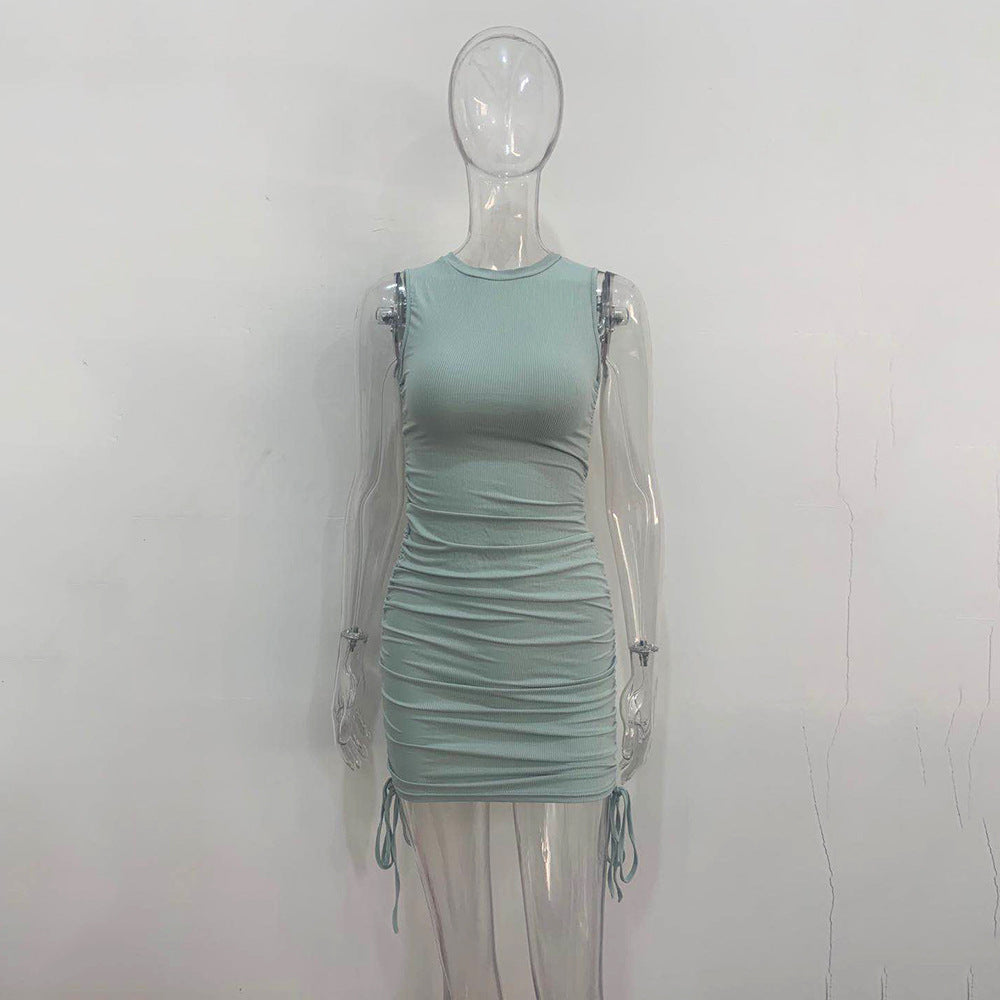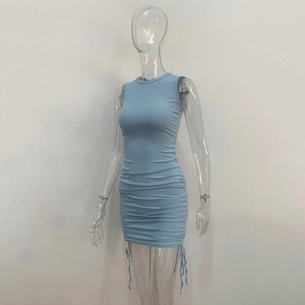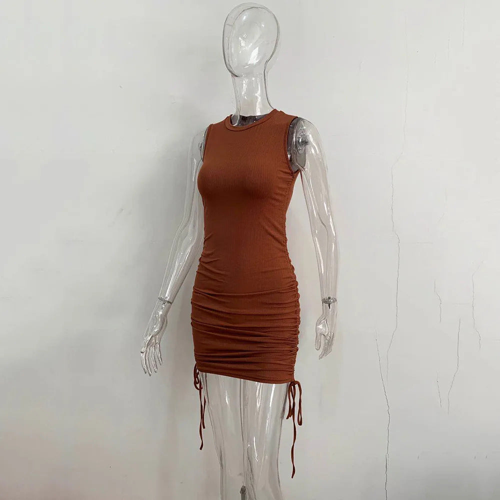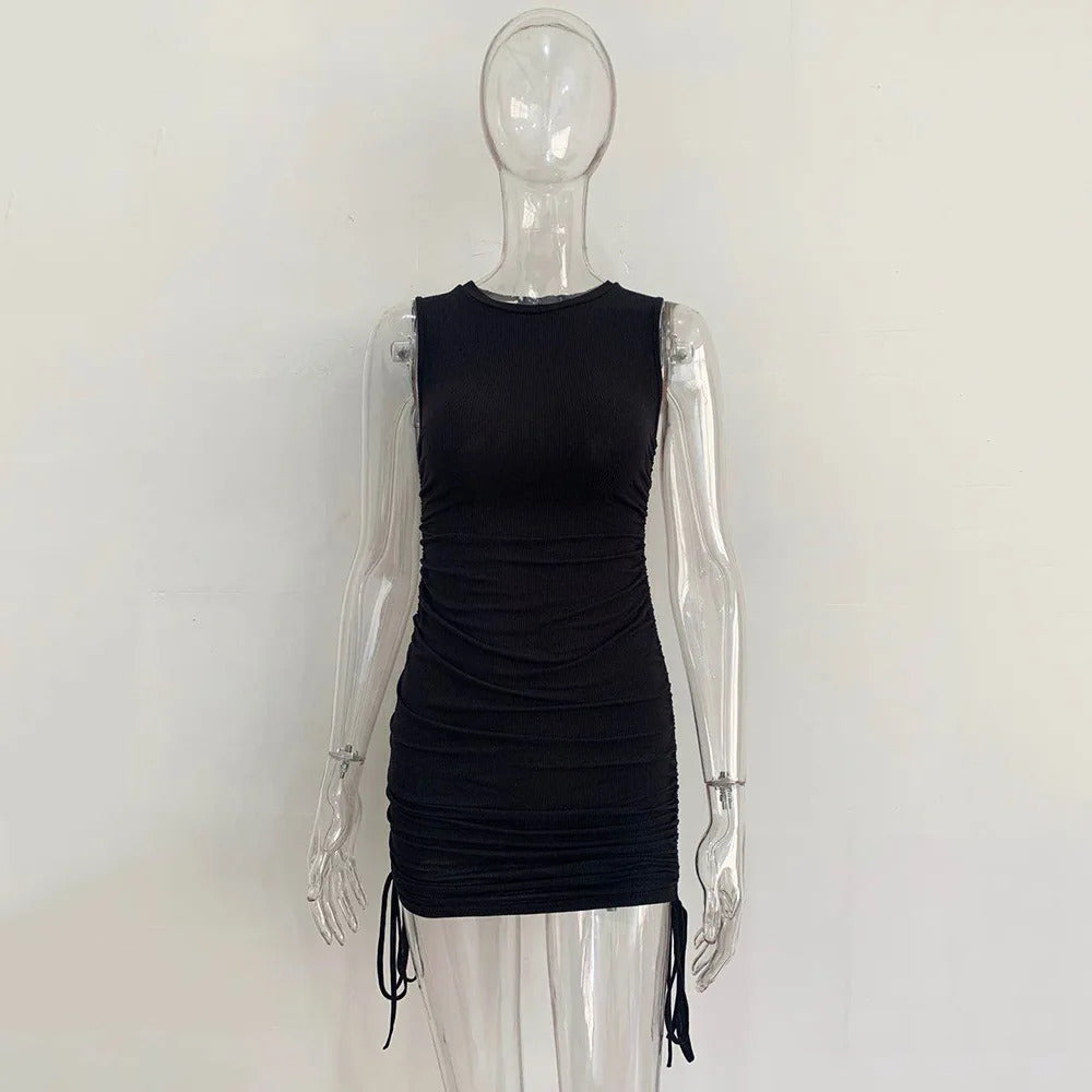 Getadme 섹시 레이스업 드로스트링 폴드 니트 슬림 바디콘 드레스 여성 민소매 솔리드 컬러 스키니 드레스 우아한 클럽 파티 베스디소