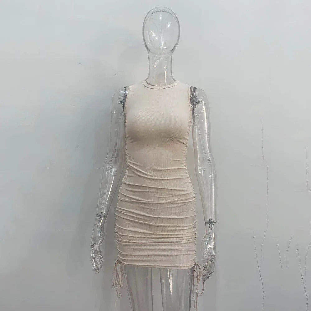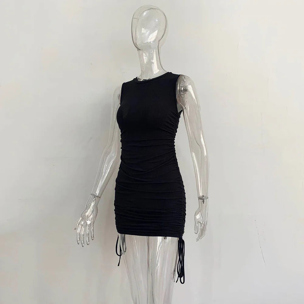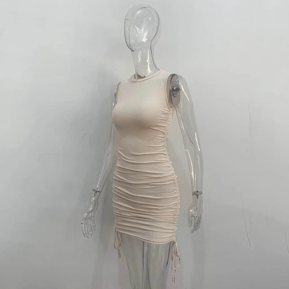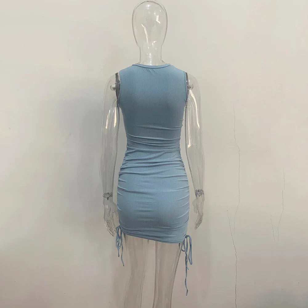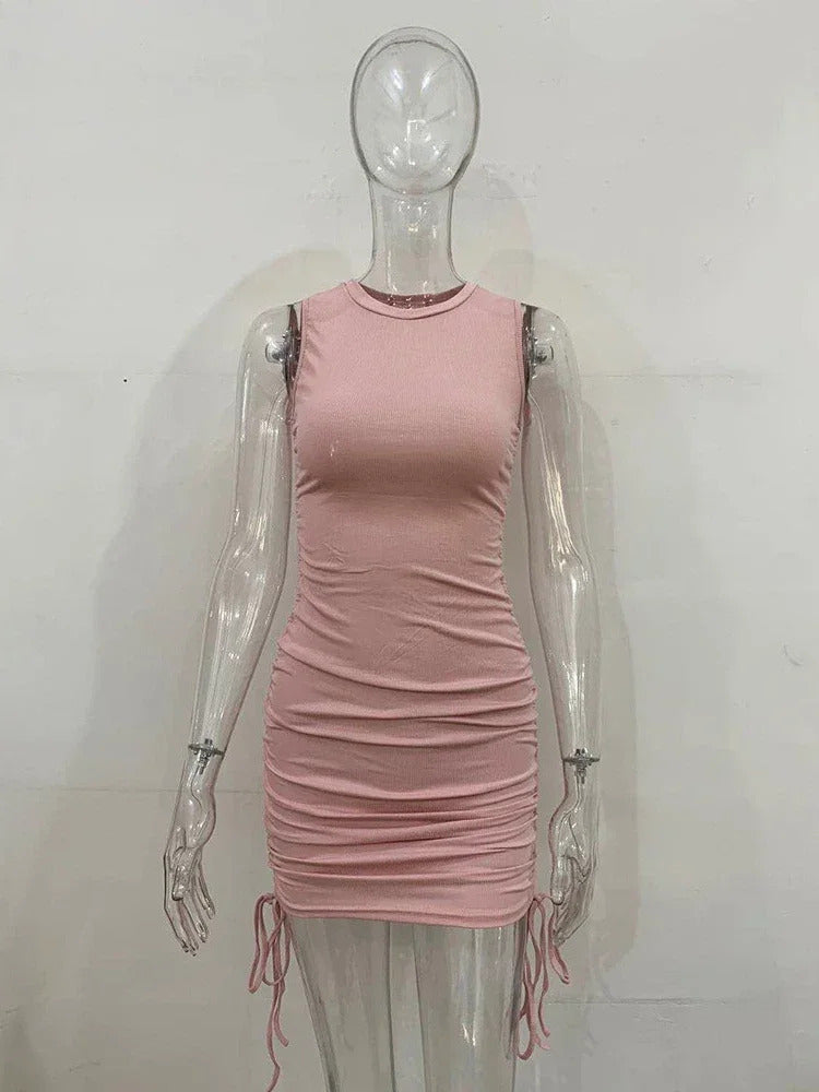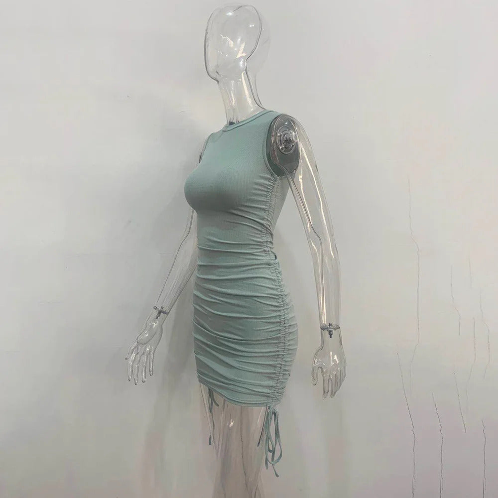 Getadme 섹시 레이스업 드로스트링 폴드 니트 슬림 바디콘 드레스 여성 민소매 솔리드 컬러 스키니 드레스 우아한 클럽 파티 베스디소