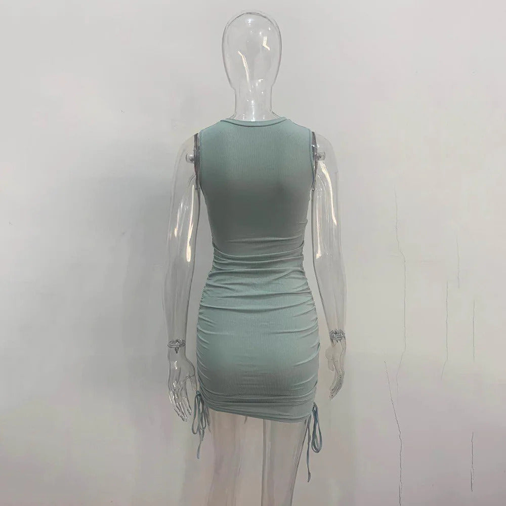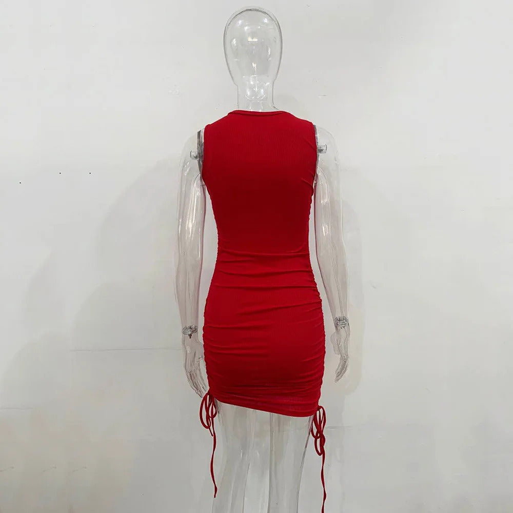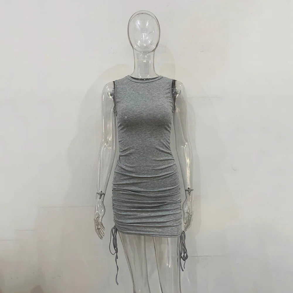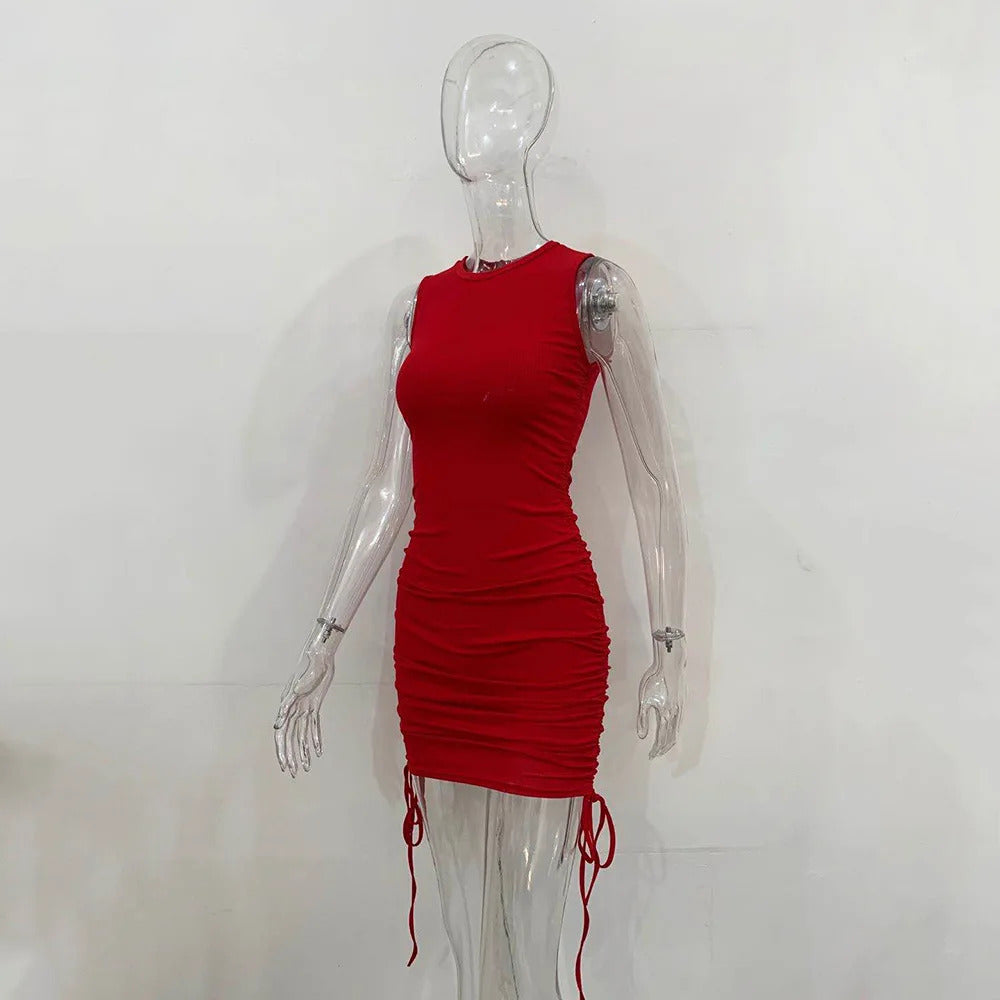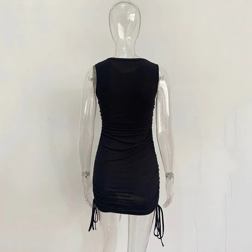 Getadme 섹시 레이스업 드로스트링 폴드 니트 슬림 바디콘 드레스 여성 민소매 솔리드 컬러 스키니 드레스 우아한 클럽 파티 베스디소