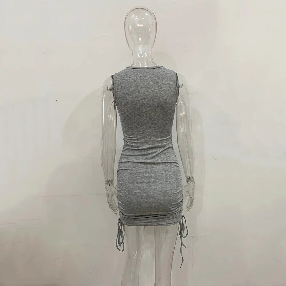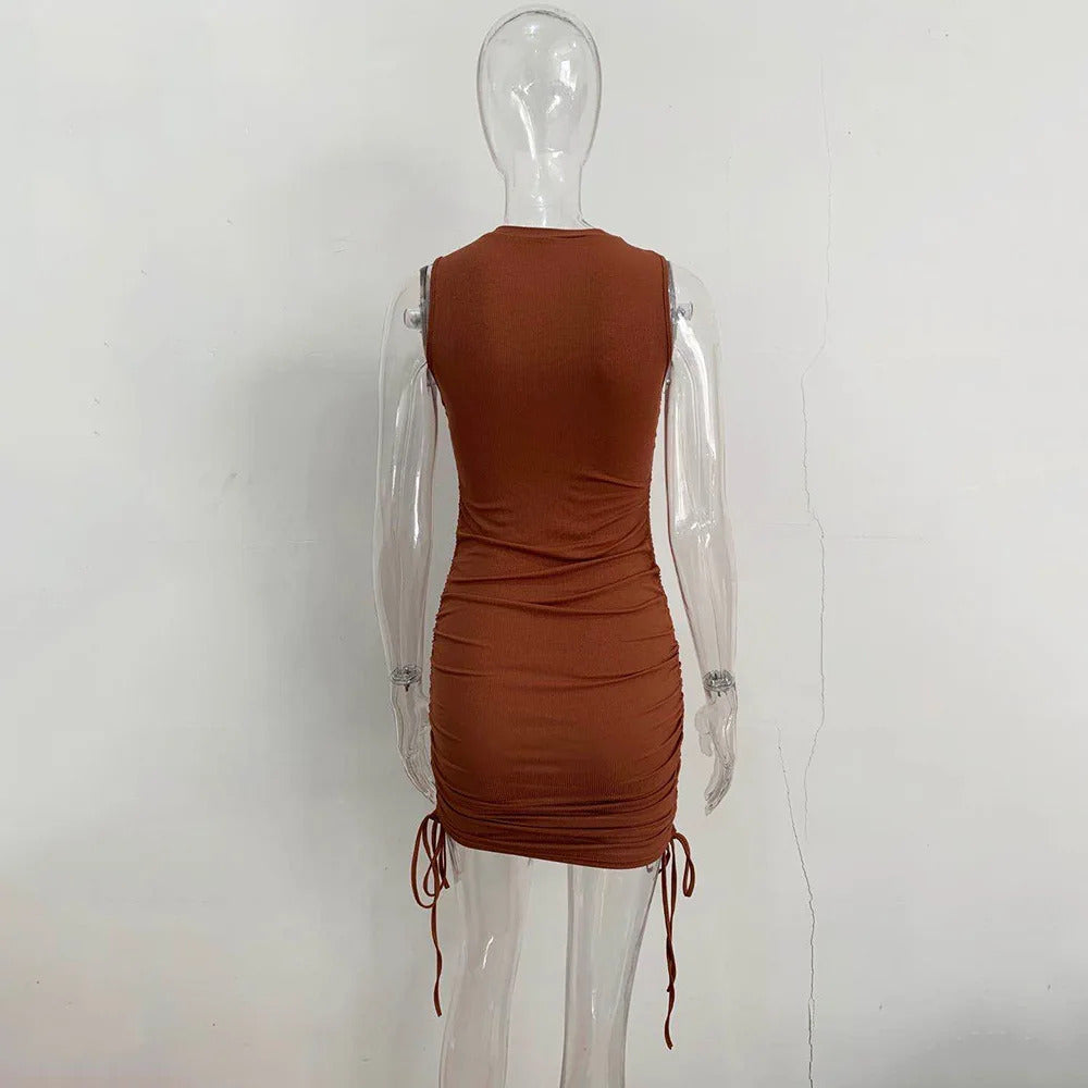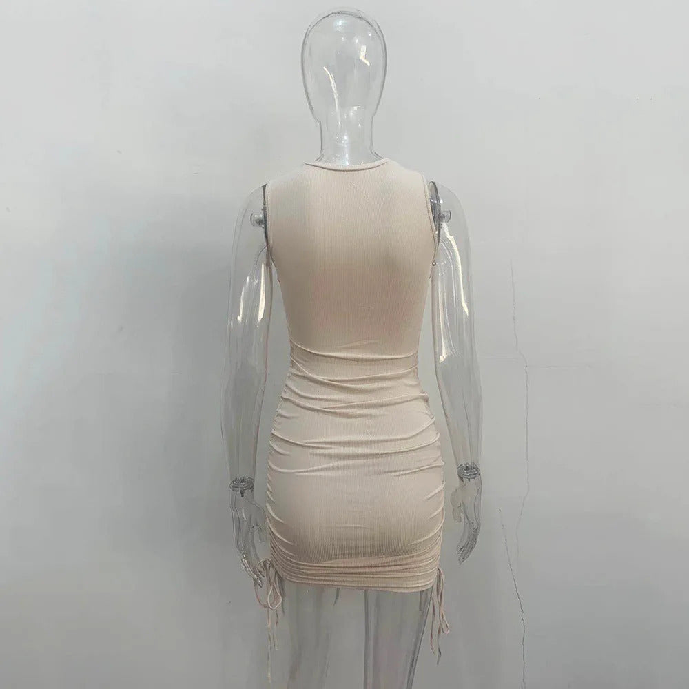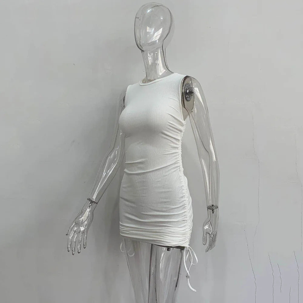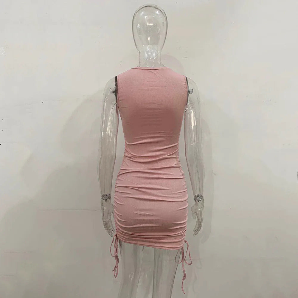 Getadme 섹시 레이스업 드로스트링 폴드 니트 슬림 바디콘 드레스 여성 민소매 솔리드 컬러 스키니 드레스 우아한 클럽 파티 베스디소