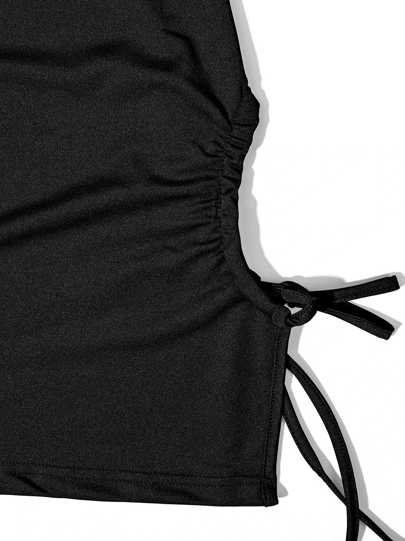 여성 봄 여름 솔리드 컬러 앞면 끈 옆선 슬릿 밑단 슬림핏 섹시 긴팔 드레스