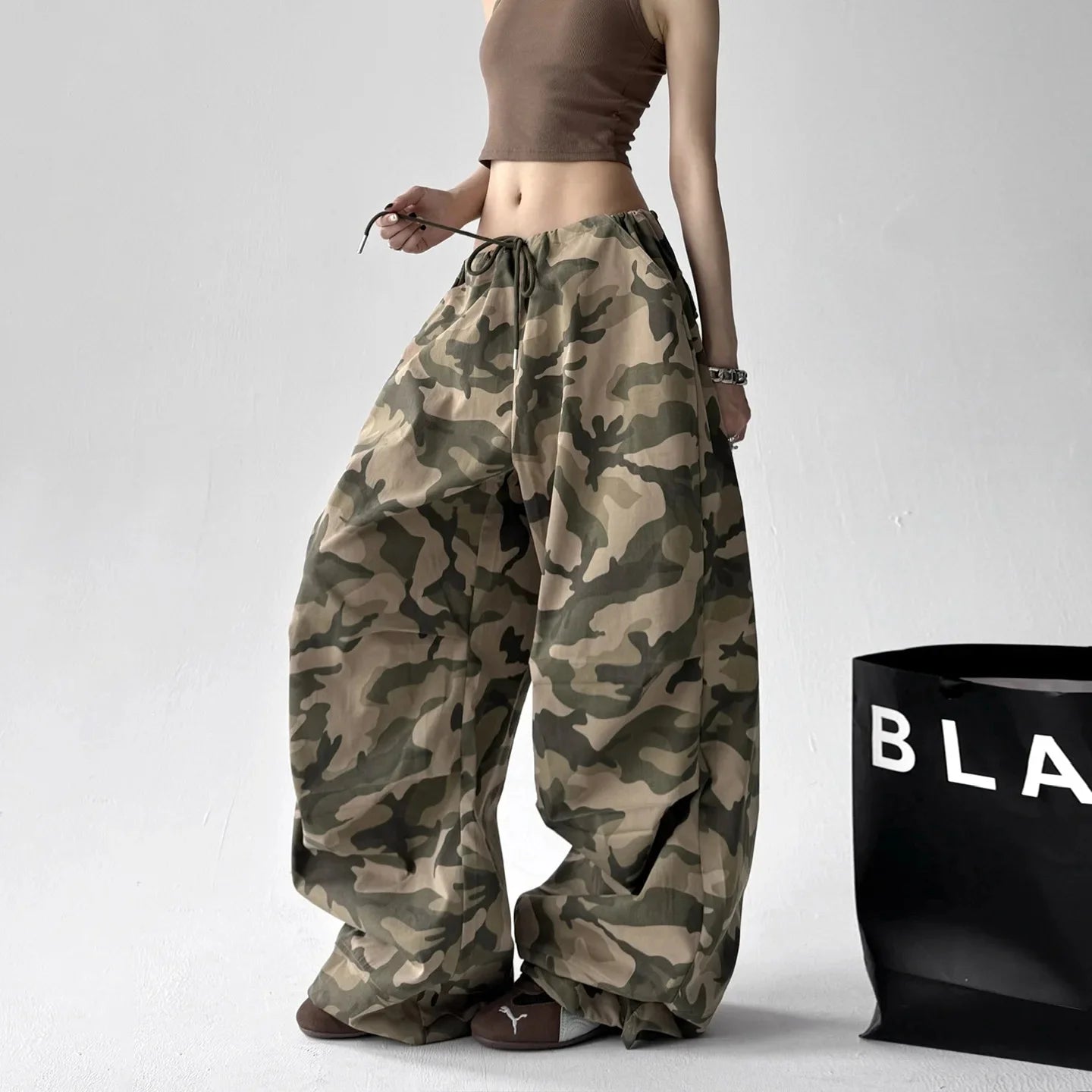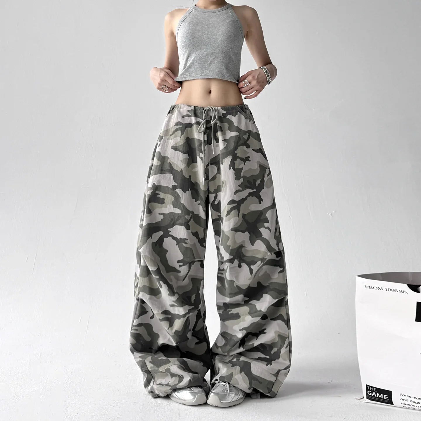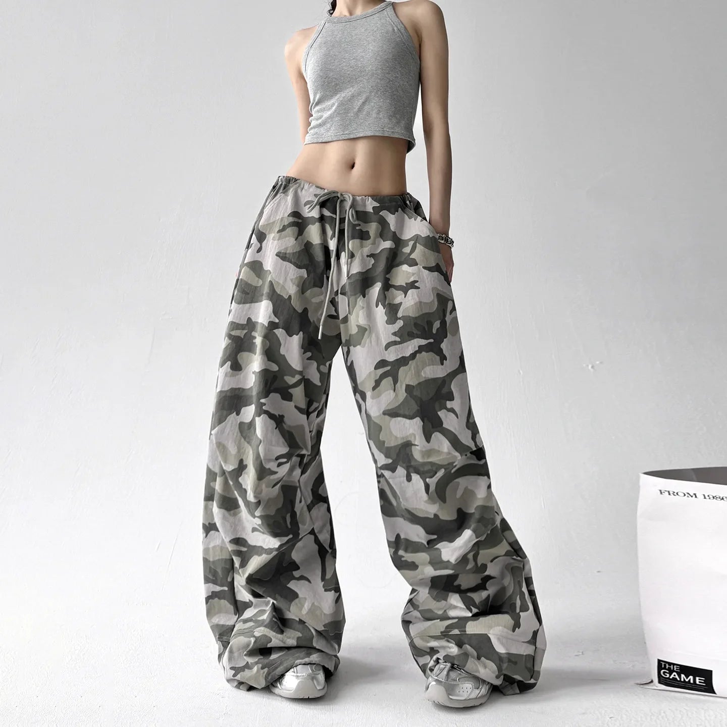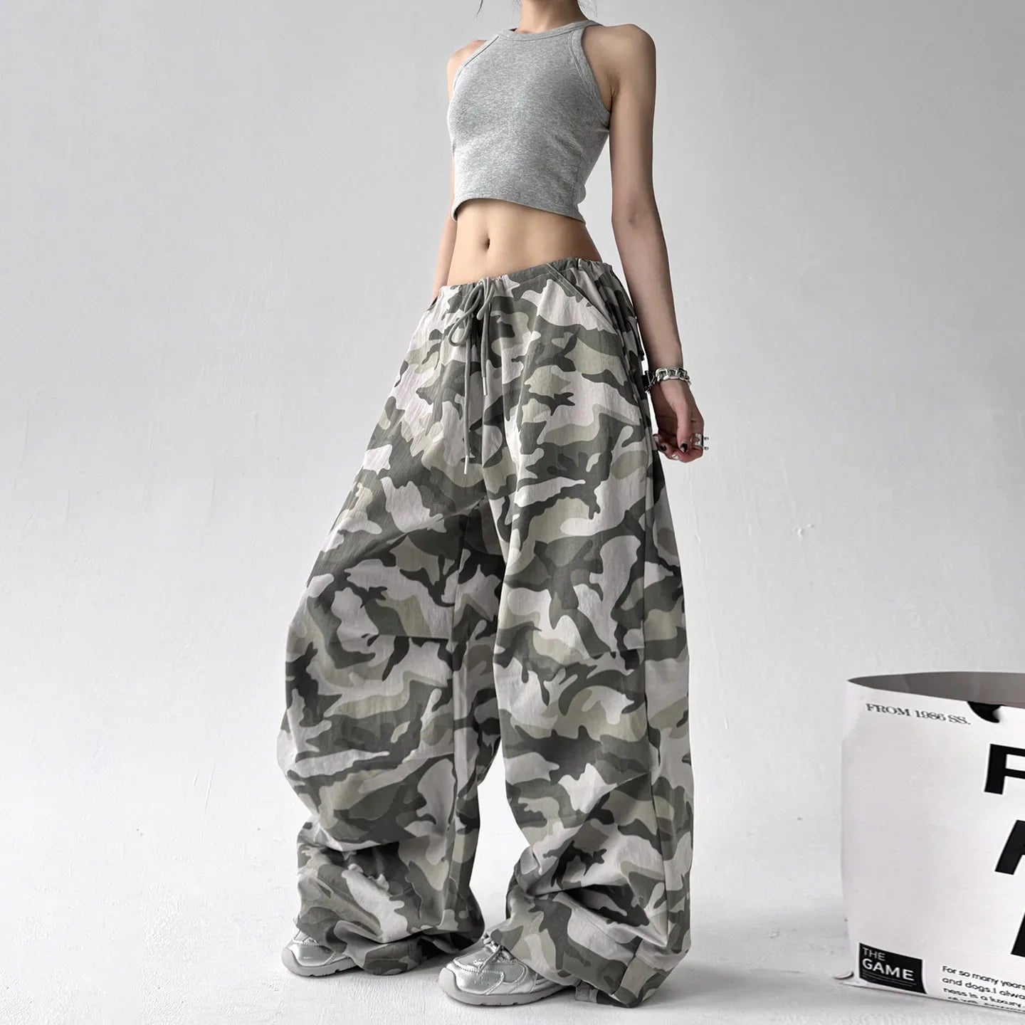 GETADME 아메리칸 레트로 카모플라주 와이드 레그 팬츠 여성 루즈 캐주얼 작업복 여름 신상 스타일 시크 캐주얼 루즈 팬츠