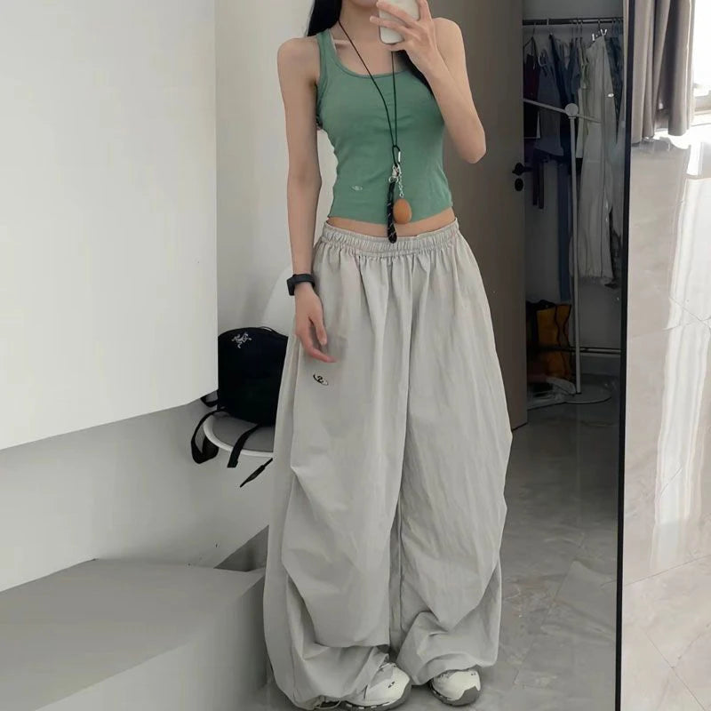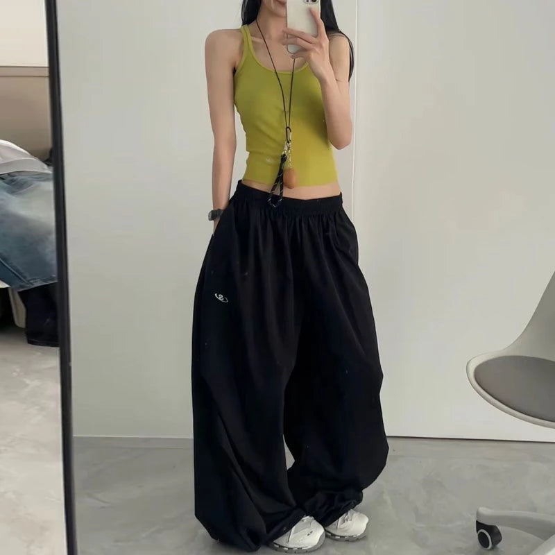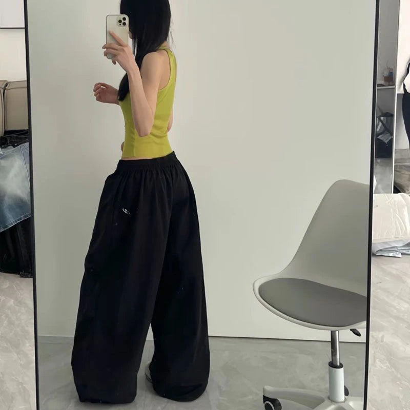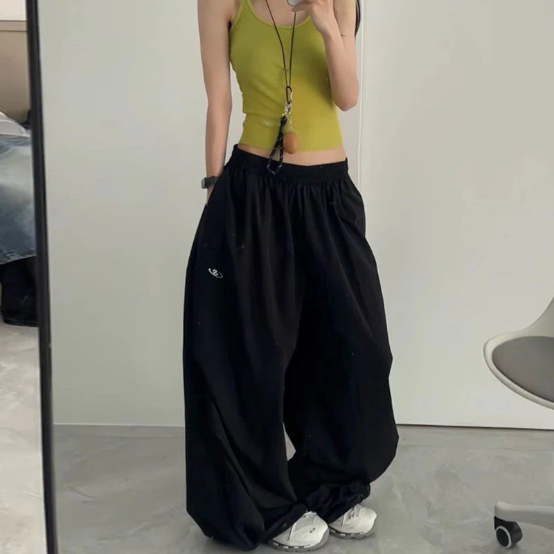 GETADME 오버사이즈 블랙 스웨트팬츠 여성 Y2K 하라주쿠 배기 조거 팬츠 여름 스트리트웨어 와이드 레그 팬츠 한국 패션 캐주얼 바지 신상품