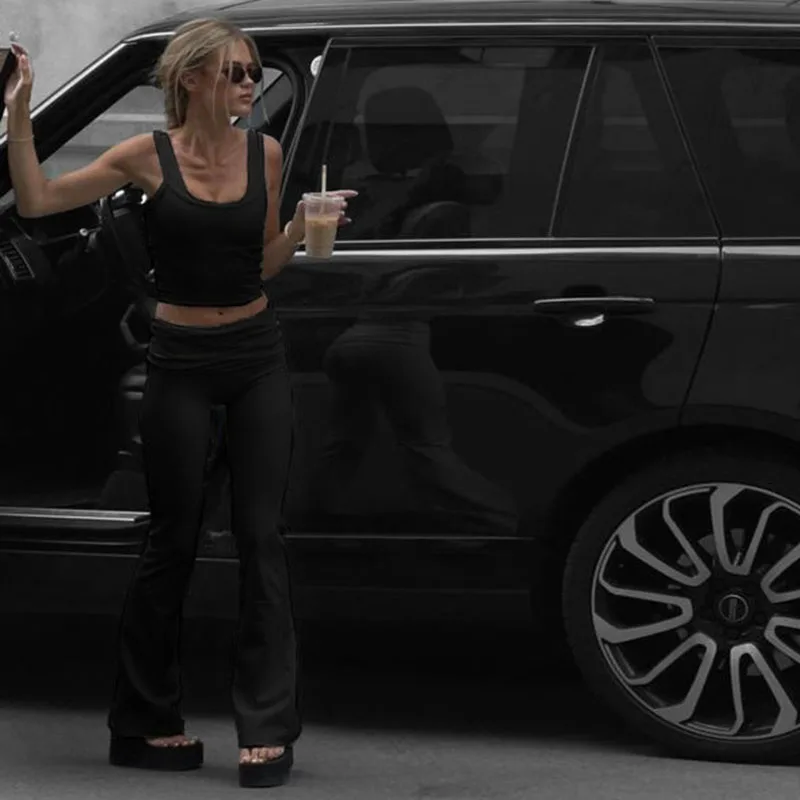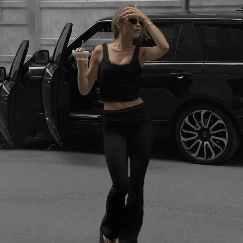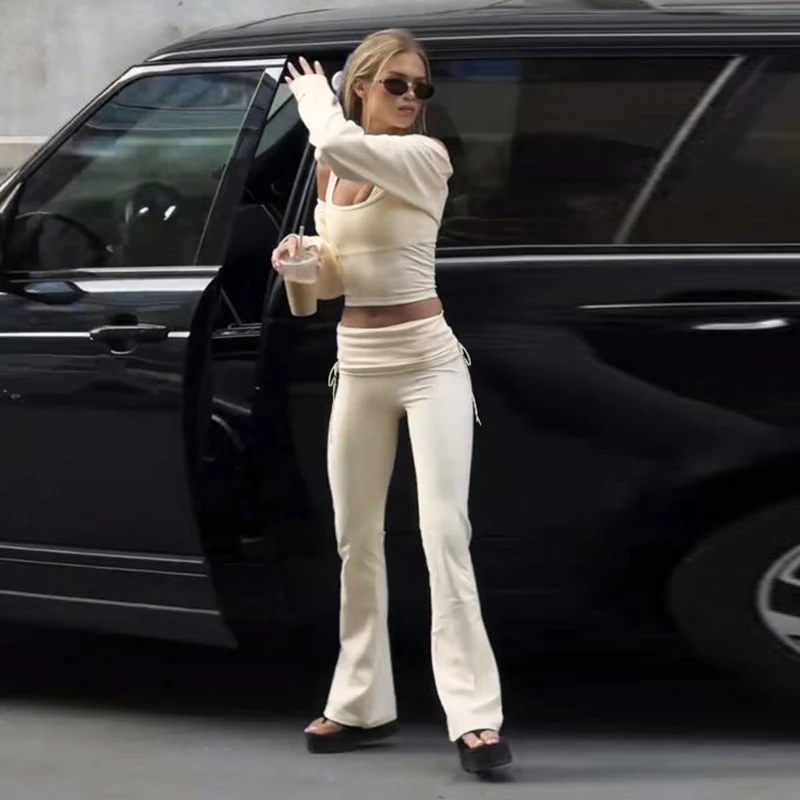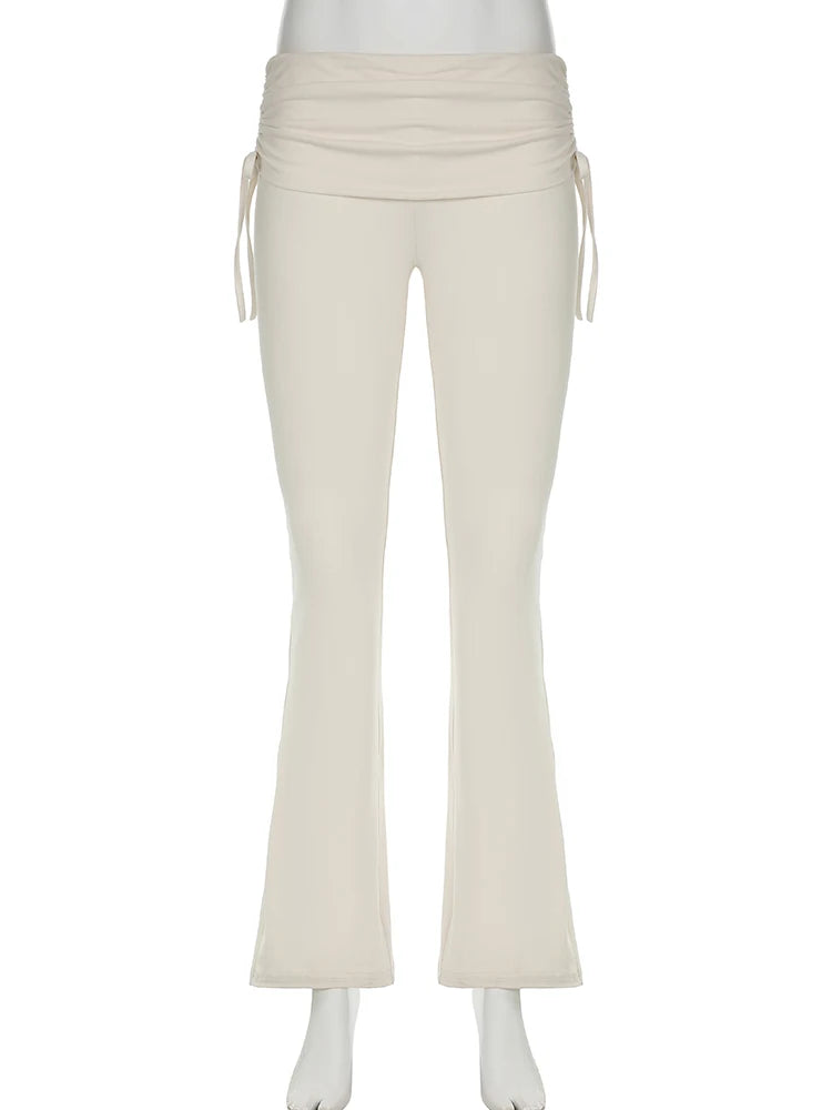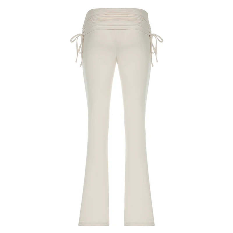 GETADME Rockmore 드로스트링 팬츠 로우웨이스트 여성 코켓 Y2K 에스테틱 와이드 레그 팬츠 패션 솔리드 스키니 플레어 팬츠 하라주쿠