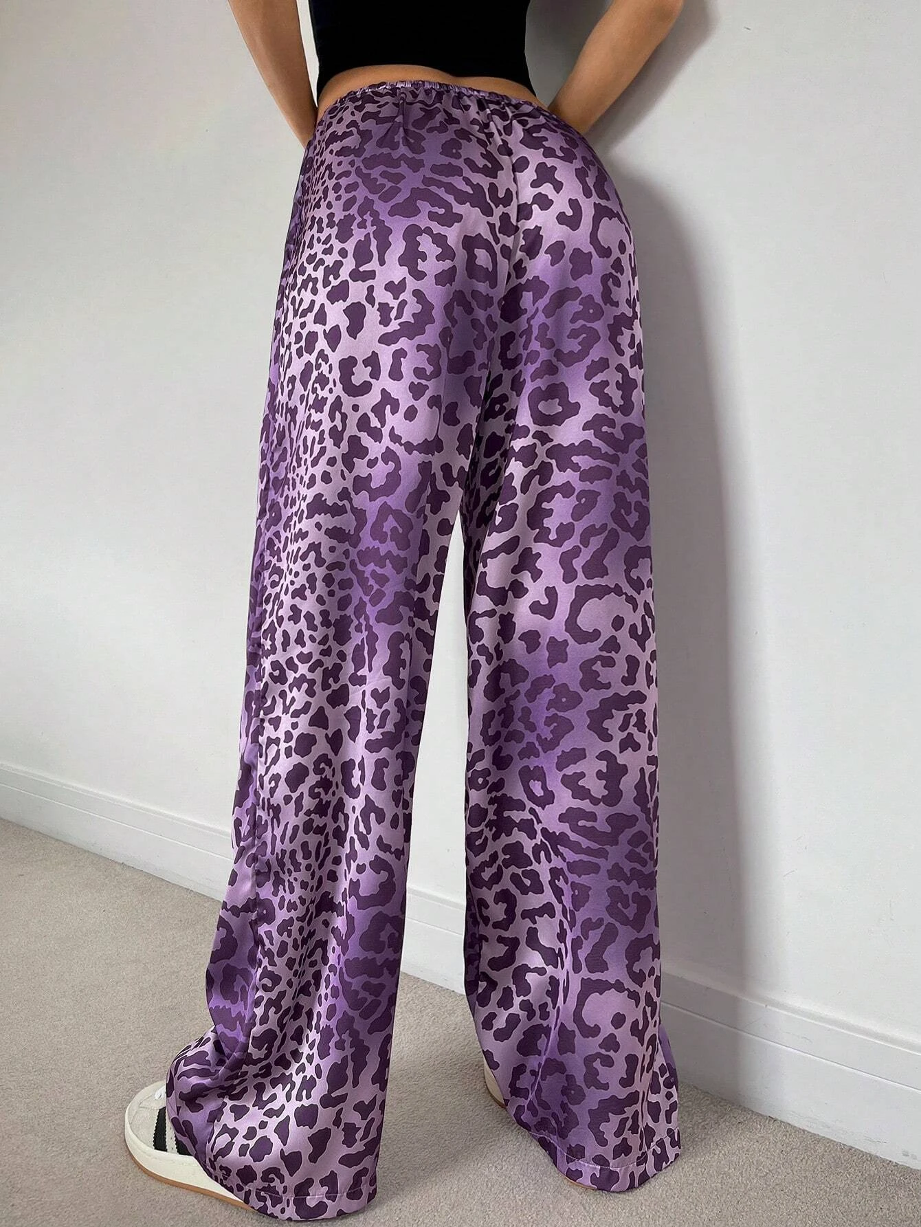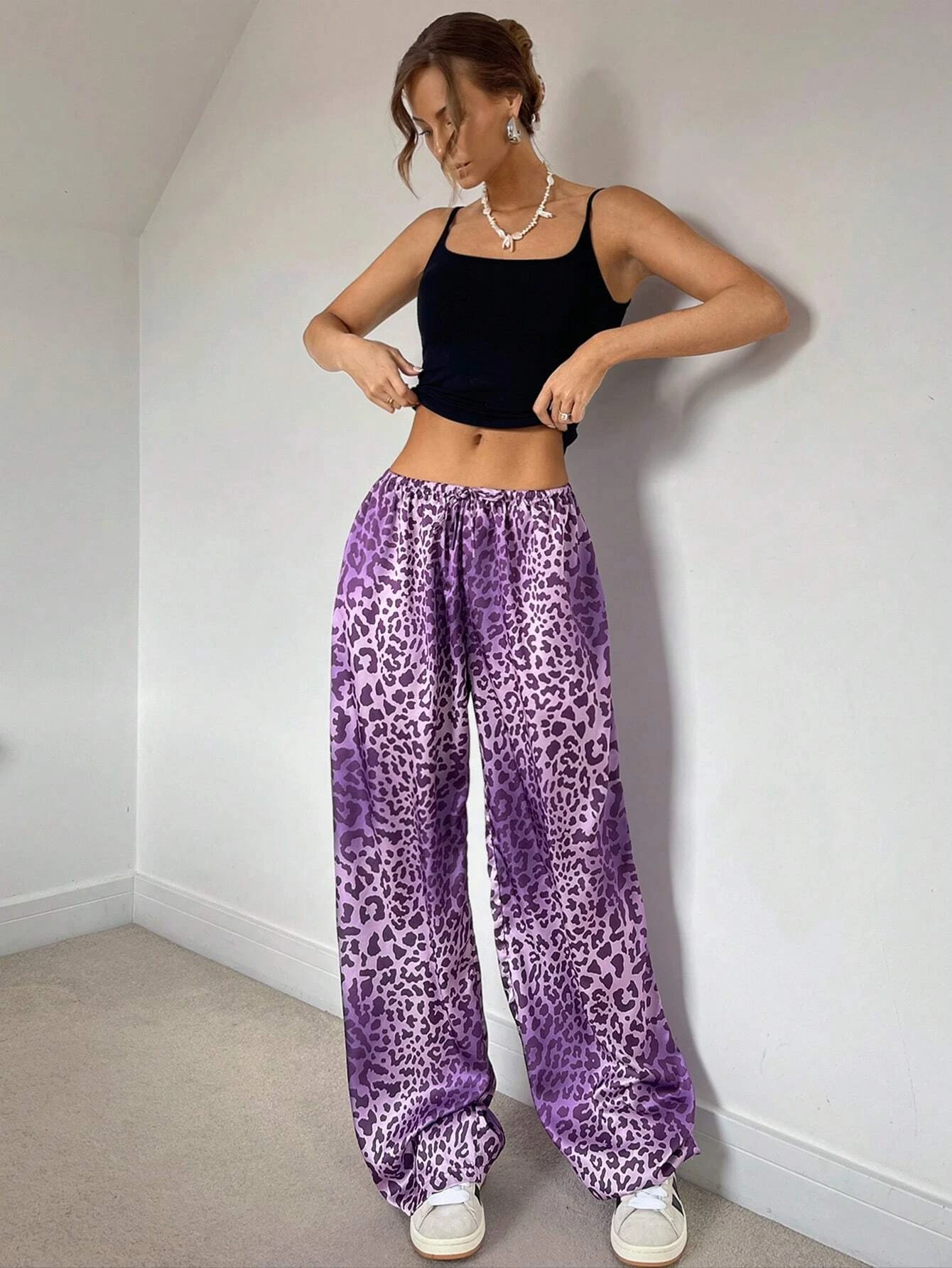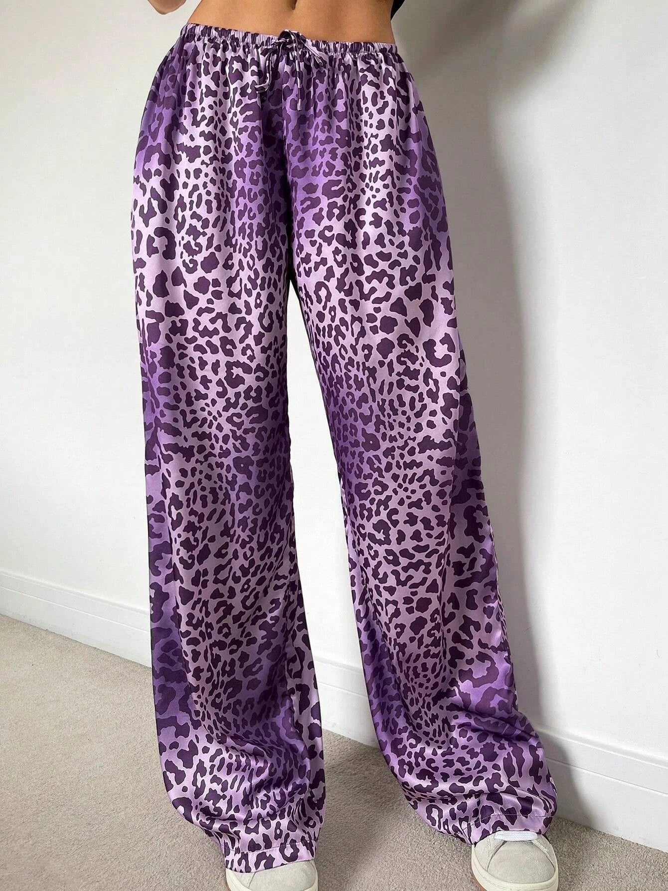 GETADME 여성용 파자마 바지 스트레이트 레그 퍼플 레오파드 슬리밍 루즈핏 컬러 블로킹 파자마 바지 여성 의류