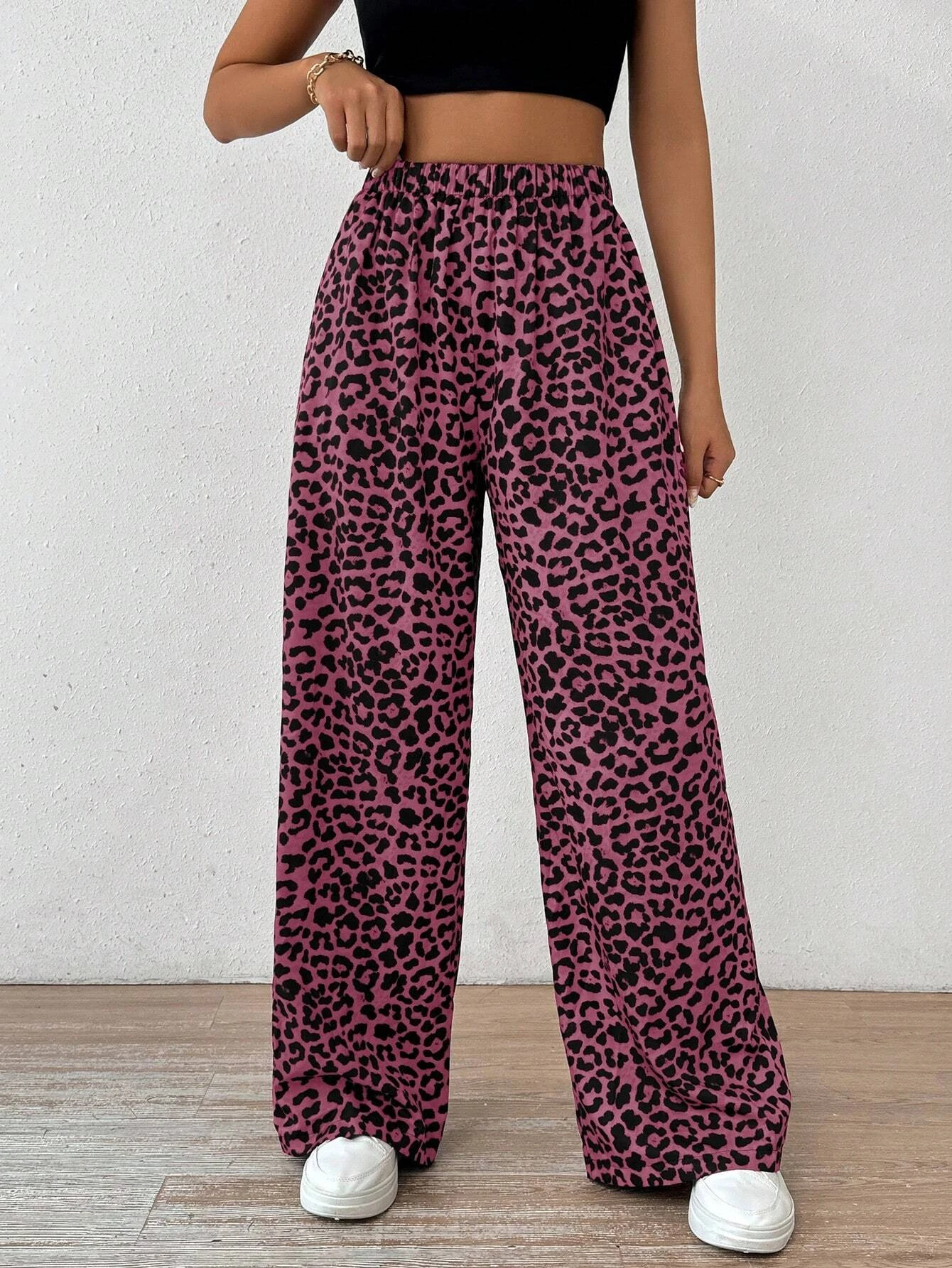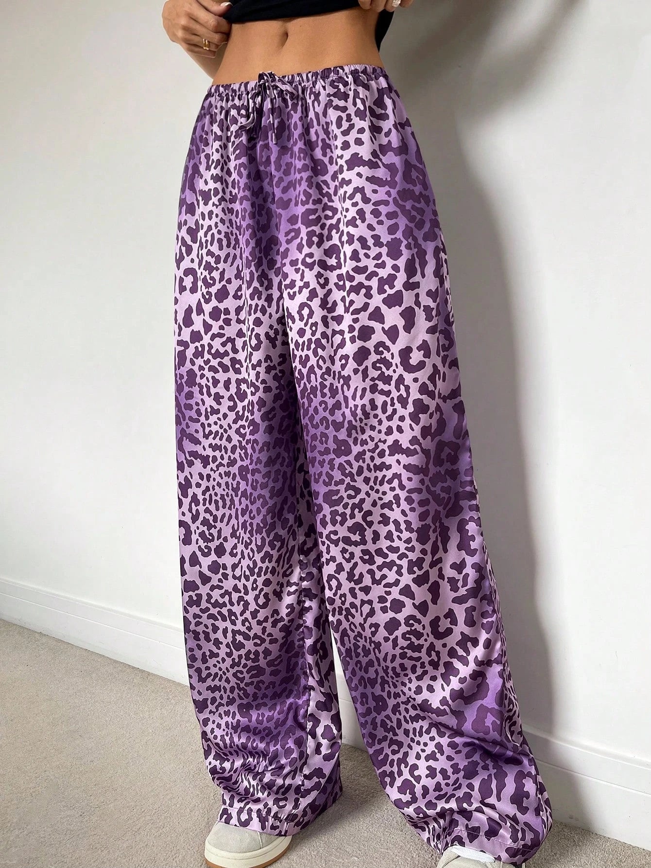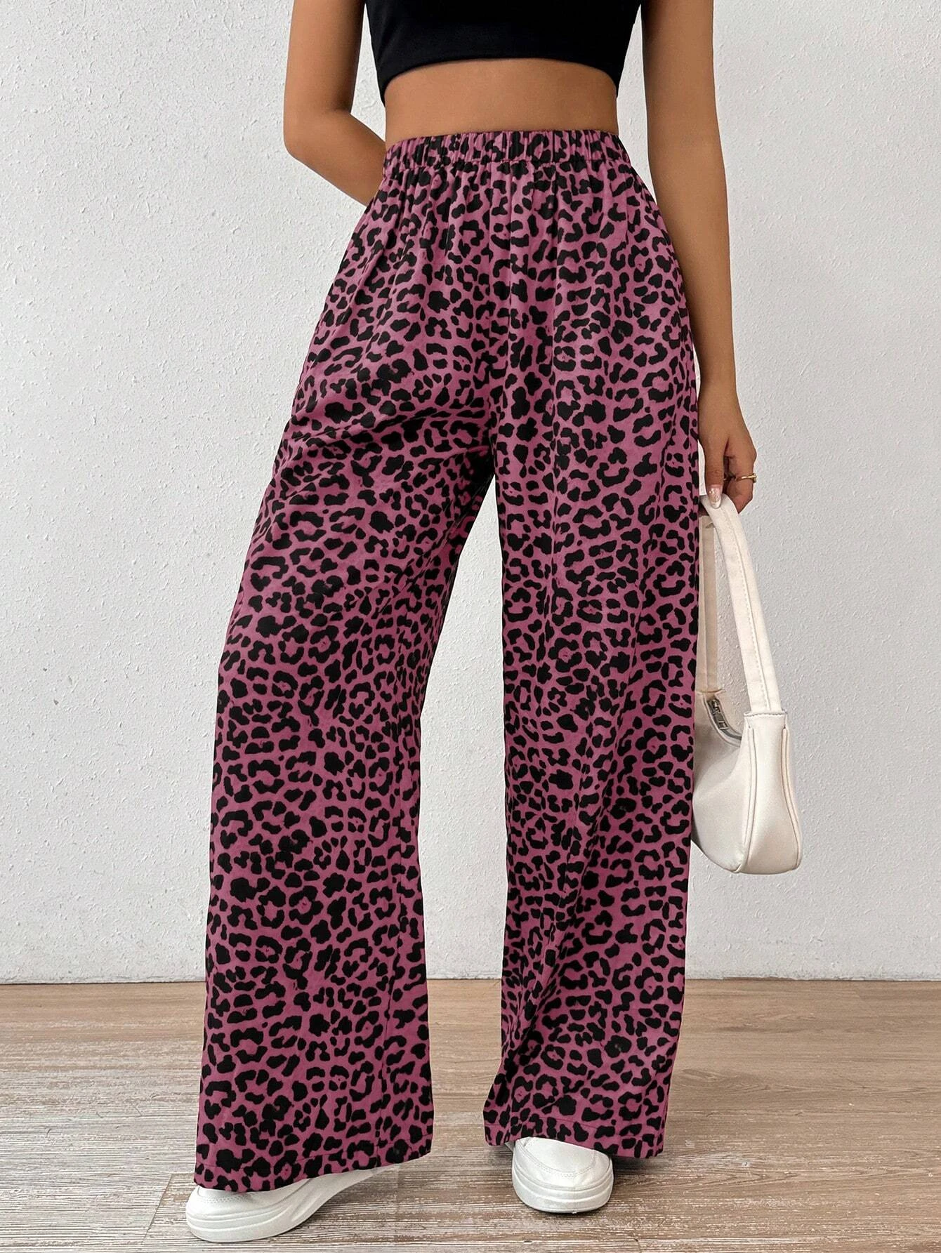 GETADME 여성용 파자마 바지 스트레이트 레그 퍼플 레오파드 슬리밍 루즈핏 컬러 블로킹 파자마 바지 여성 의류