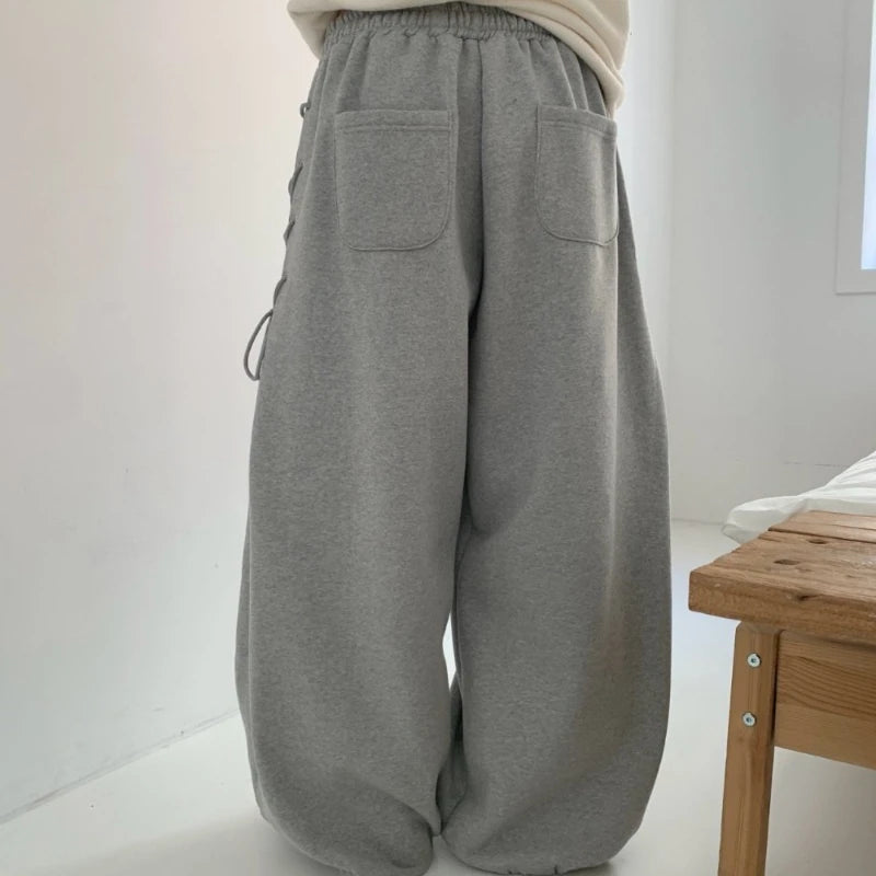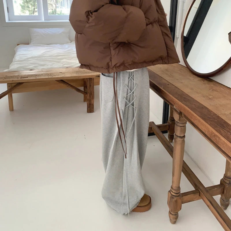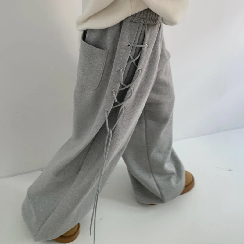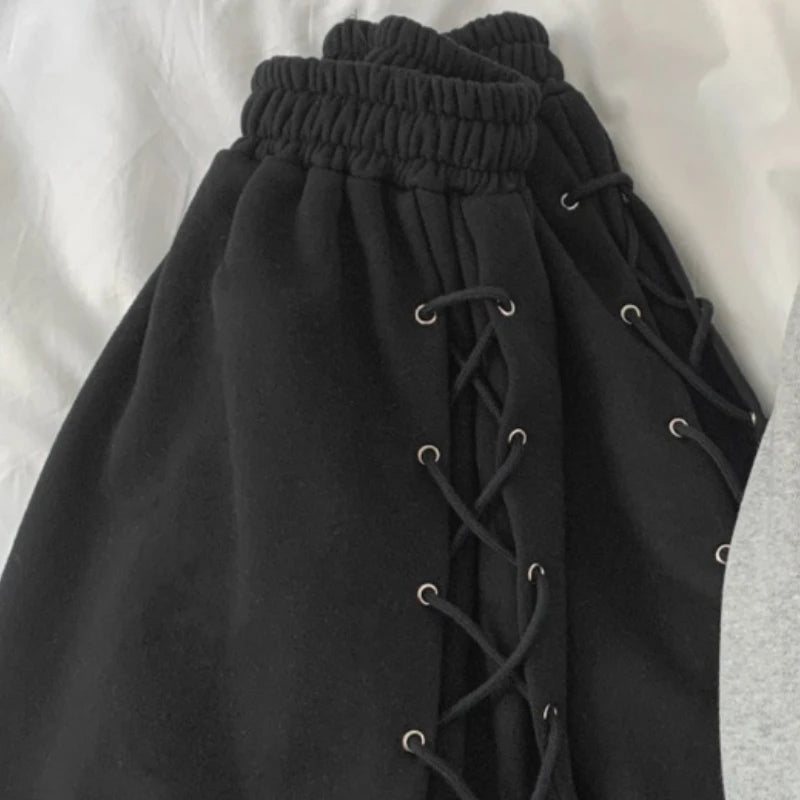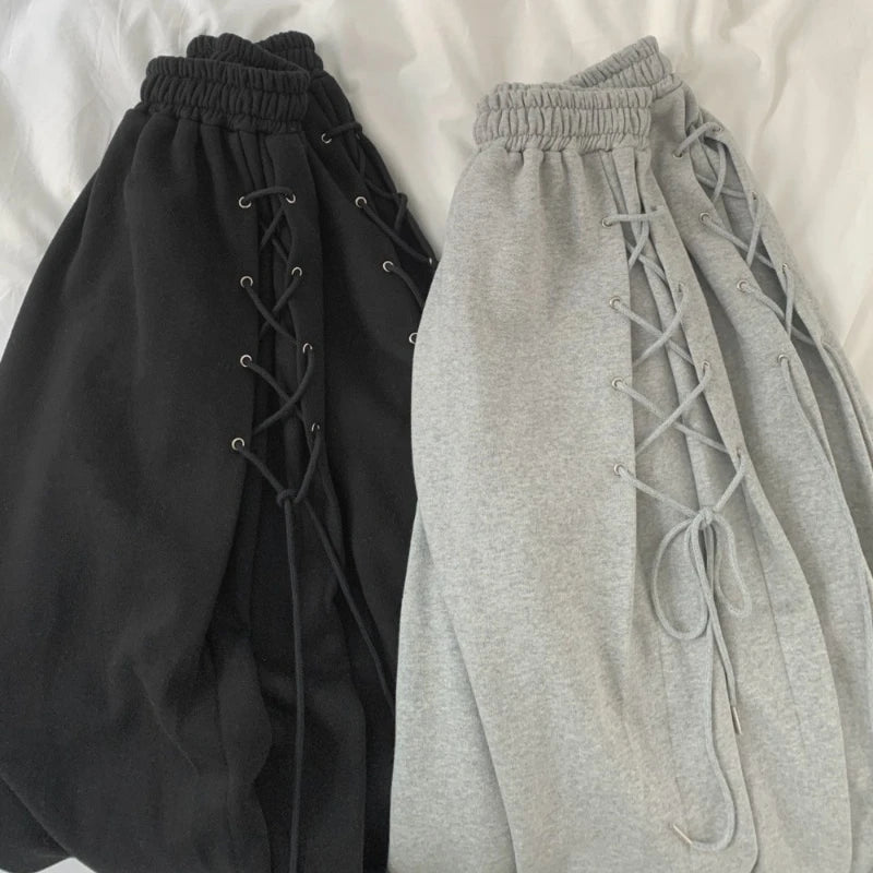Y2K 사이드 아이릿 스웨트 팬츠 레이스업 드로스트링 팬츠 스트리트웨어 여성 한국 팝 의류 트렌드 하라주쿠 클래식 배기 팬츠